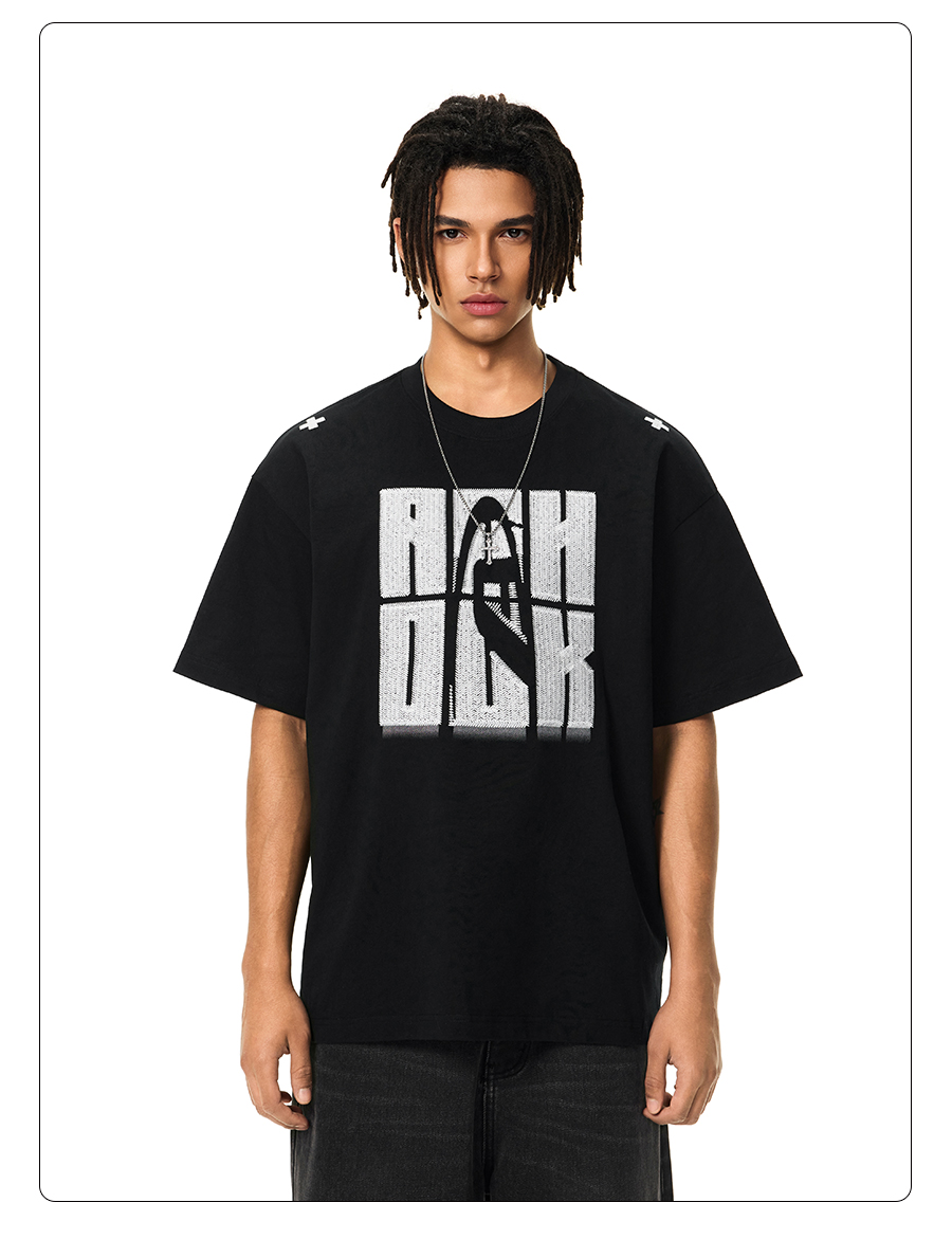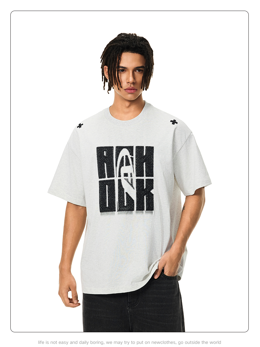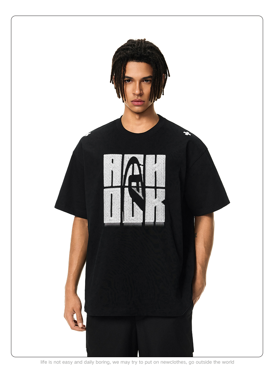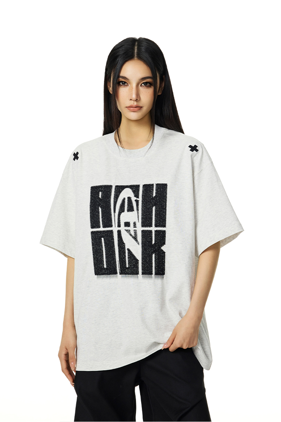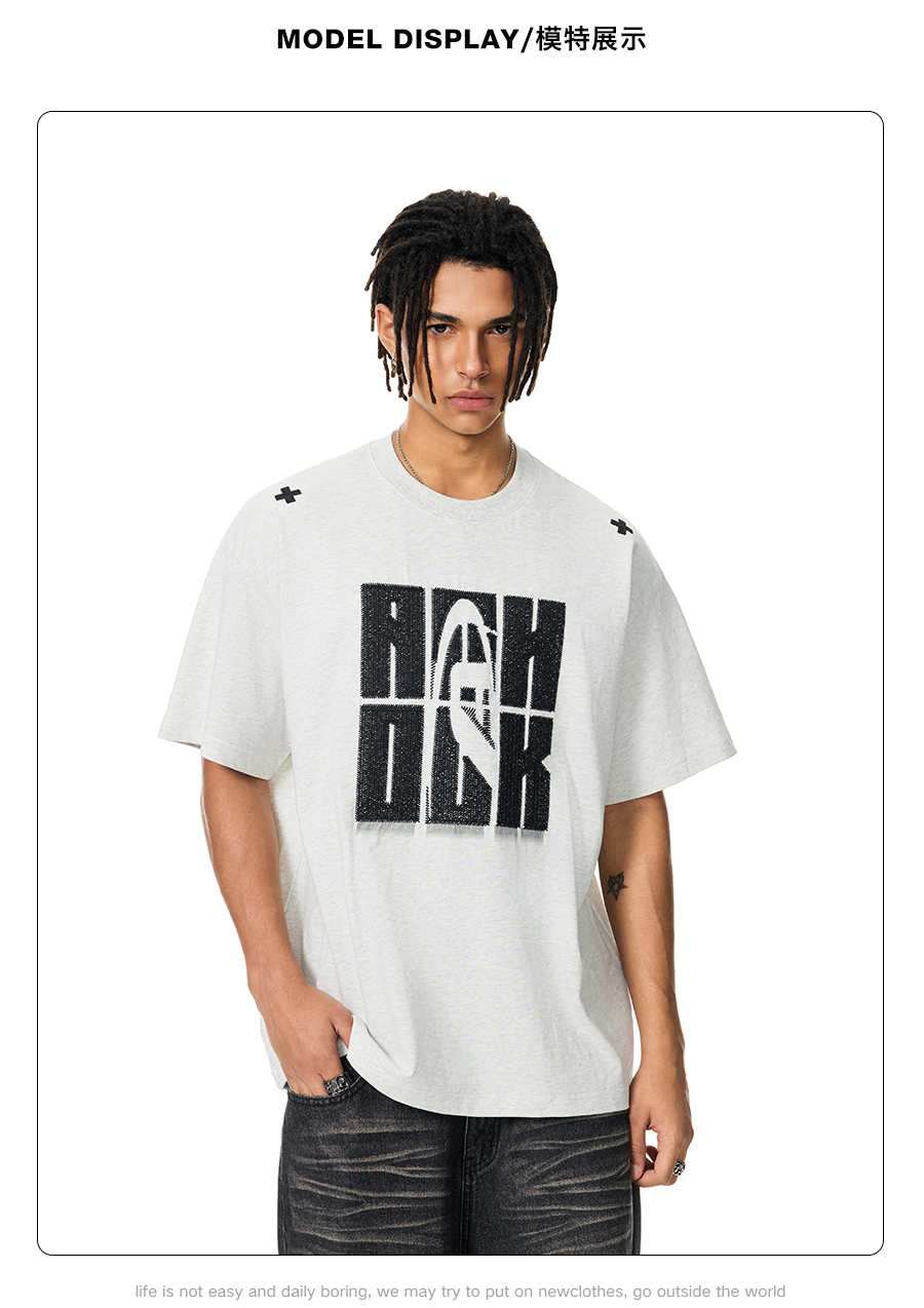 【Achock官方店】美式重工刺绣短袖T恤男女国潮新款宽松情侣上衣