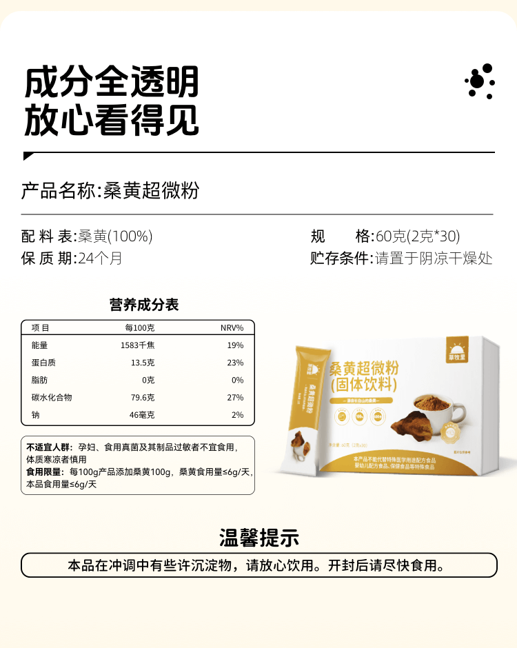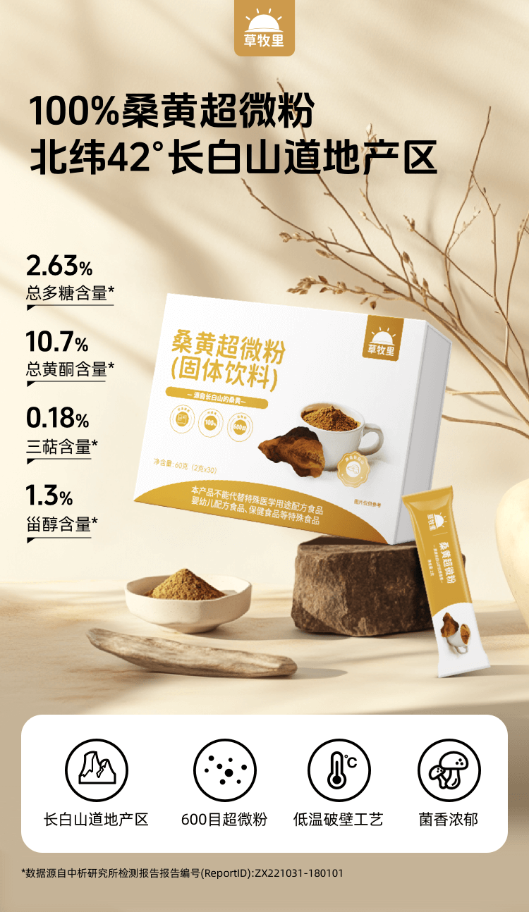 【临期清仓 有效期至2026/11/24】【森林黄金】草牧里 桑黄超微粉(固体饮料) 2g*30条/盒 甄选三年生桑黄