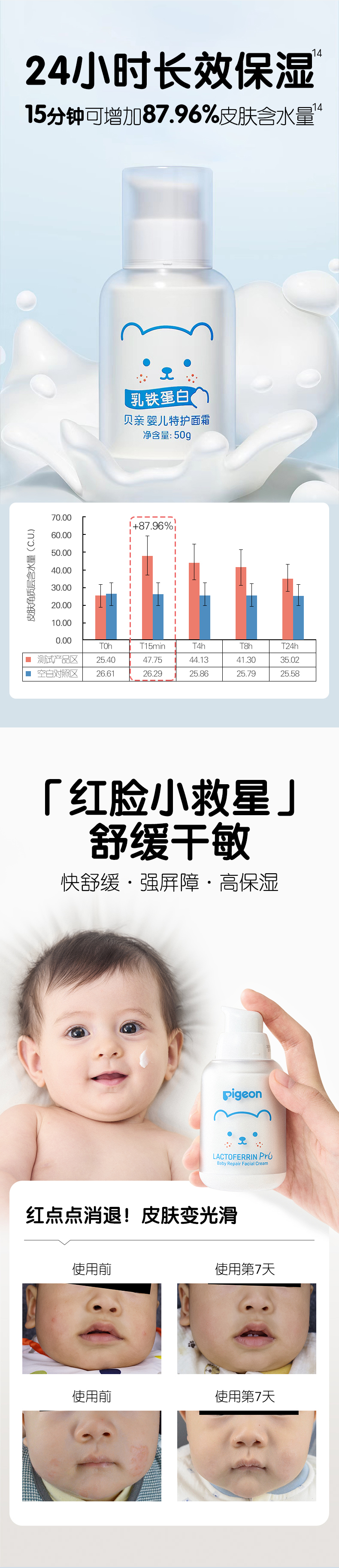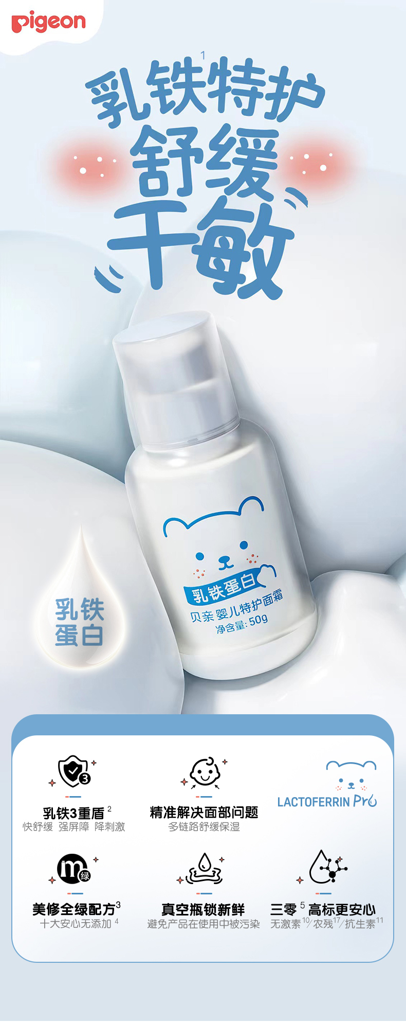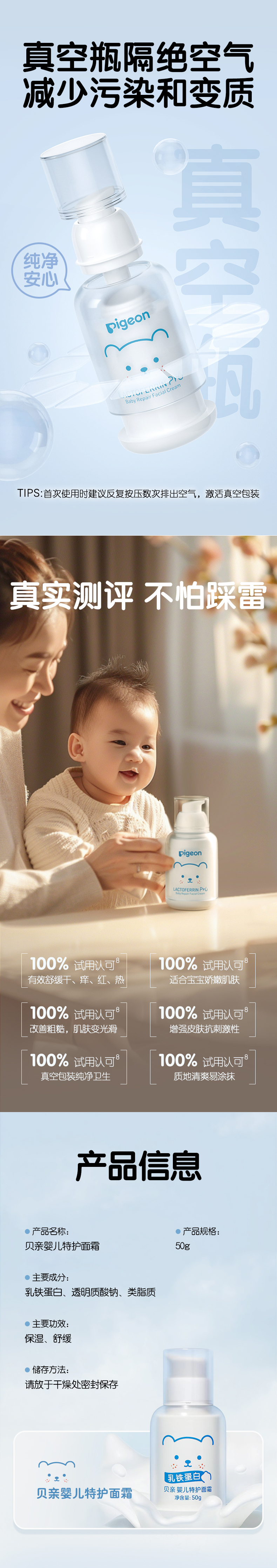 【官方自营】奚梦瑶推荐!PIGEON/贝亲婴儿特护面霜润肤凝膏宝宝霜保湿全身护肤50g