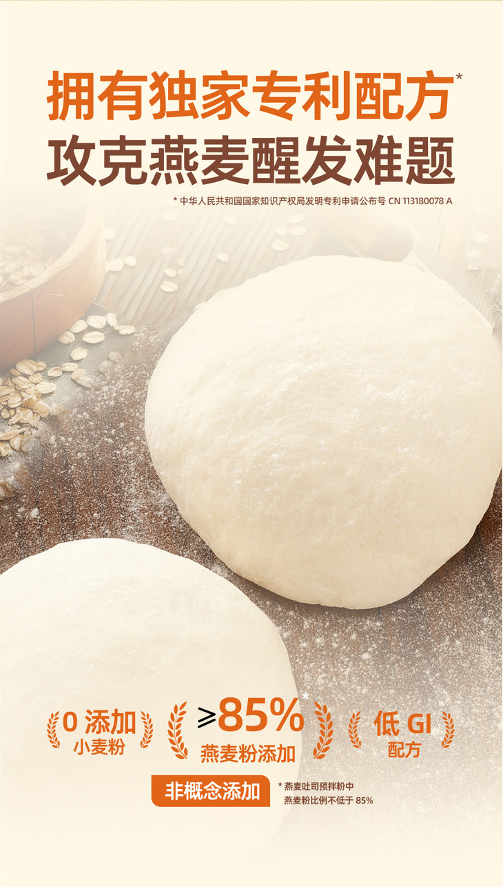 技术流底气!专利 + 检测双重背书❗ 专利燕麦烘焙粉技术 让燕麦也能发酵出「面包级」蓬松感 别家模仿不来的口感壁垒