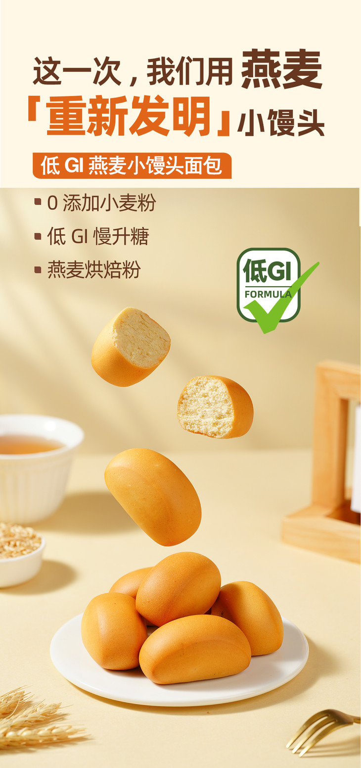 【燕麦革命】食简零·低GI燕麦小馒头面包 用专利燕麦烘焙粉100%替代小麦粉,攻克燕麦发酵难题 √ 真正权威检测低GI(≤55)| 0小麦粉0蔗糖0反式脂肪酸 √ 新西兰乳粉+鲜奶揉面 | 专利锁水技术打破传统燕麦"干涩糙"口感 √ 独立小包装设计 | 母婴级原料 | 常温锁鲜60天