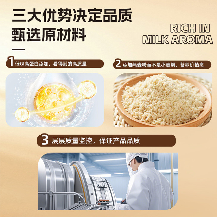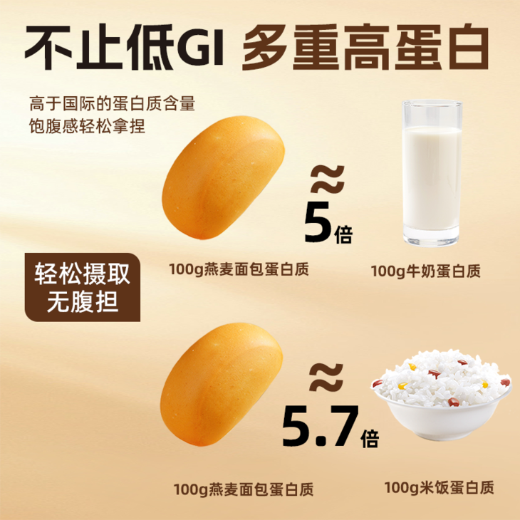 ▪️ 每 100g 含 12.3g 膳食纤维(≈6 倍西蓝花),肠道每天做 SPA; ▪️ 9.8g 优质蛋白(≈2 倍普通面包),抗饿续航 4 小时 +; ▪️ GI 值≤55(国际低 GI 认证),血糖波动比初恋还平缓; ▪️ 钙含量 165mg(≈1.5 倍牛奶),一口吃进燕麦 β- 葡聚糖 + B 族维生素 + 钙铁锌,营养直接拉满!