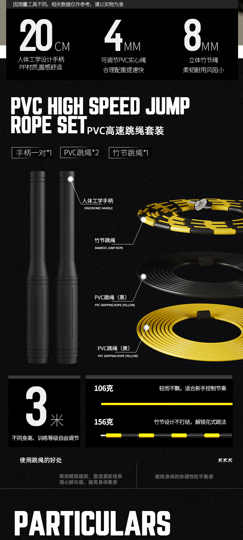 【执炼FitterGear】健身竹节跳绳减肥中考生专用成人儿童FGGST