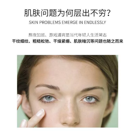 皱纹,面部衰老,皮肤过敏,暗沉粗糙,皮肤问题就跟地鼠一样一个一个往外冒!护肤叠加太多导致毛孔堵塞,成分过于劣质导致色斑横生,选择一个成分有效安全,易于吸收的产品真的很重要!