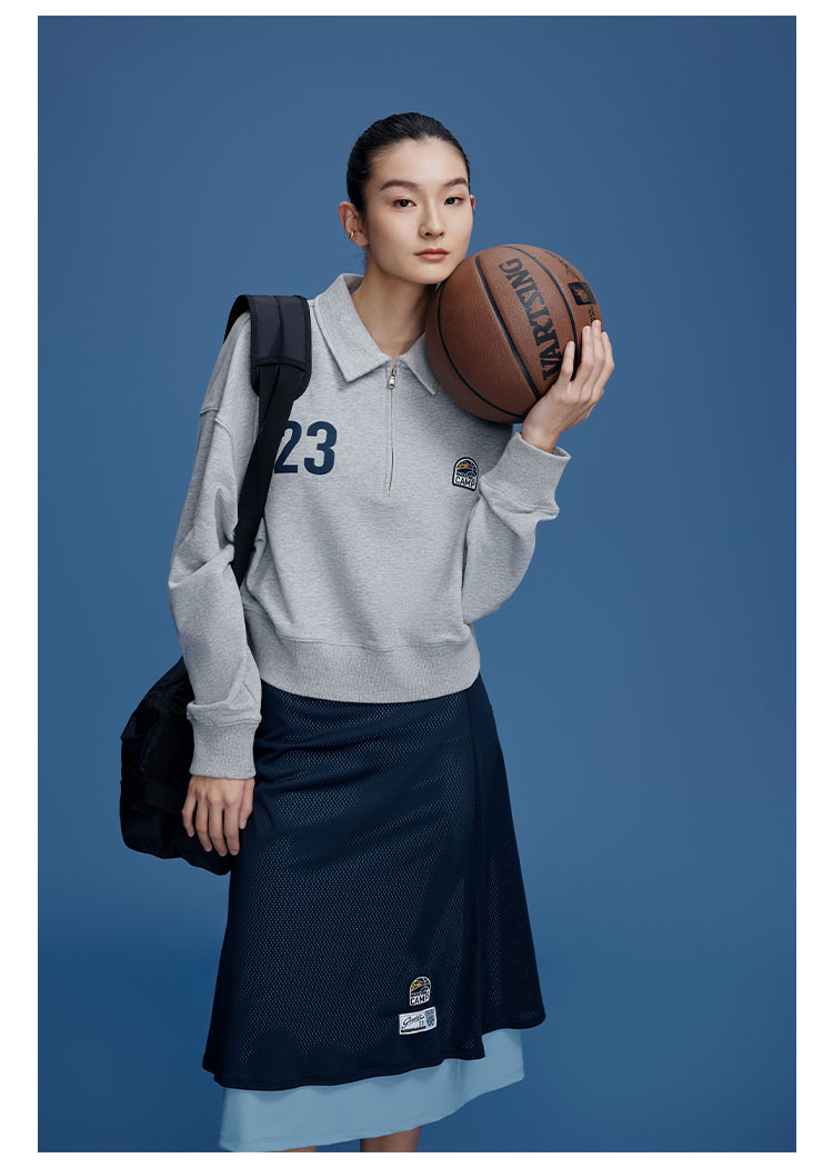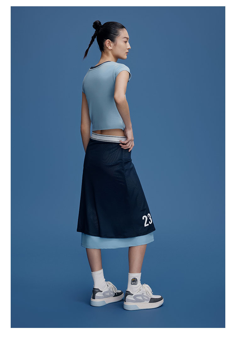 GOODBAI logo印花网眼双层中长半裙