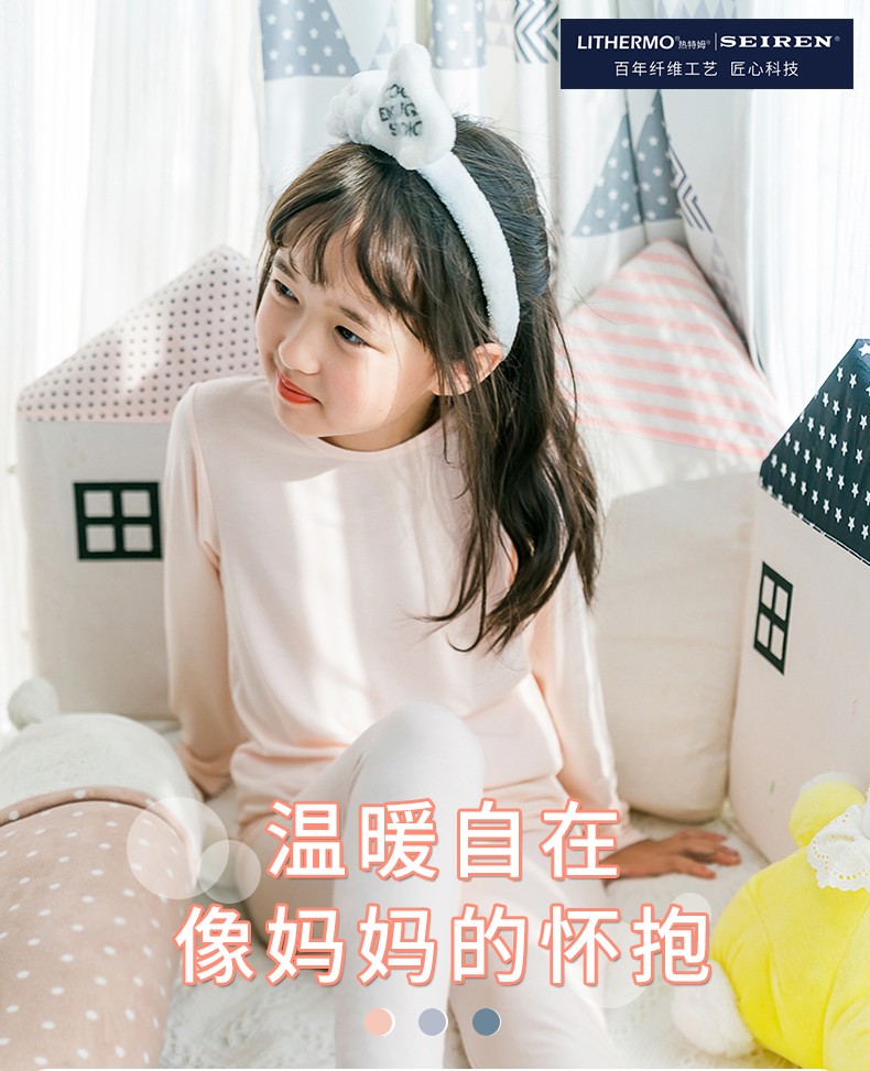 热特姆黑科技发热儿童保暖内衣套装(女童/男童轻暖)_sl