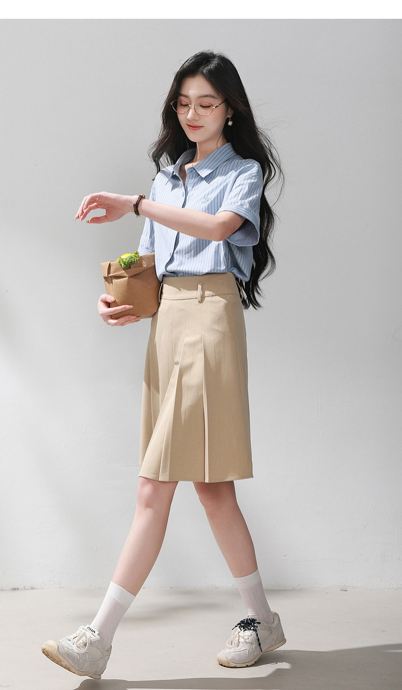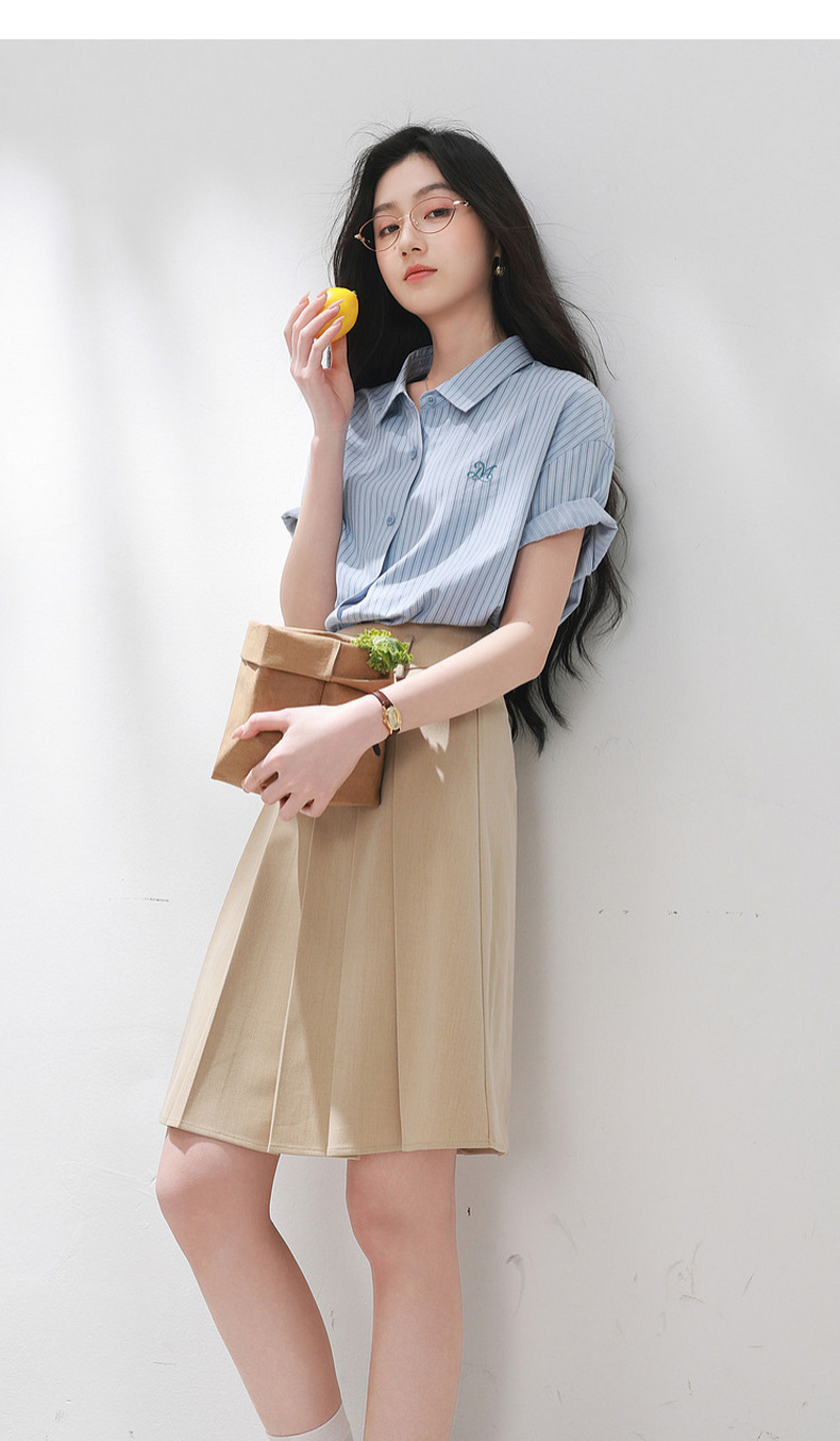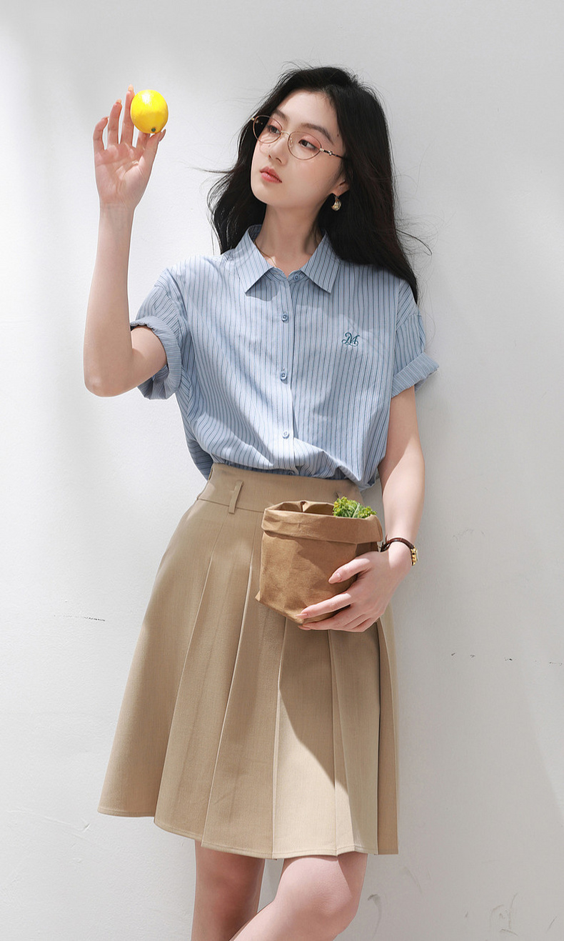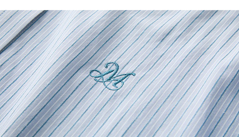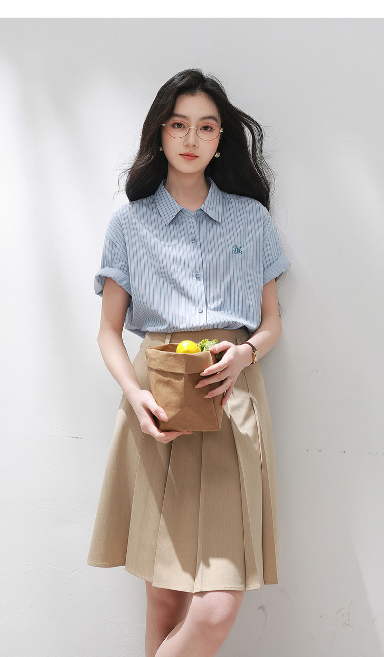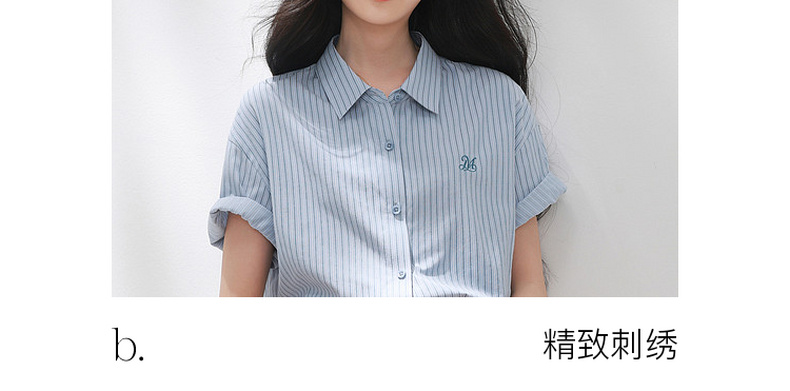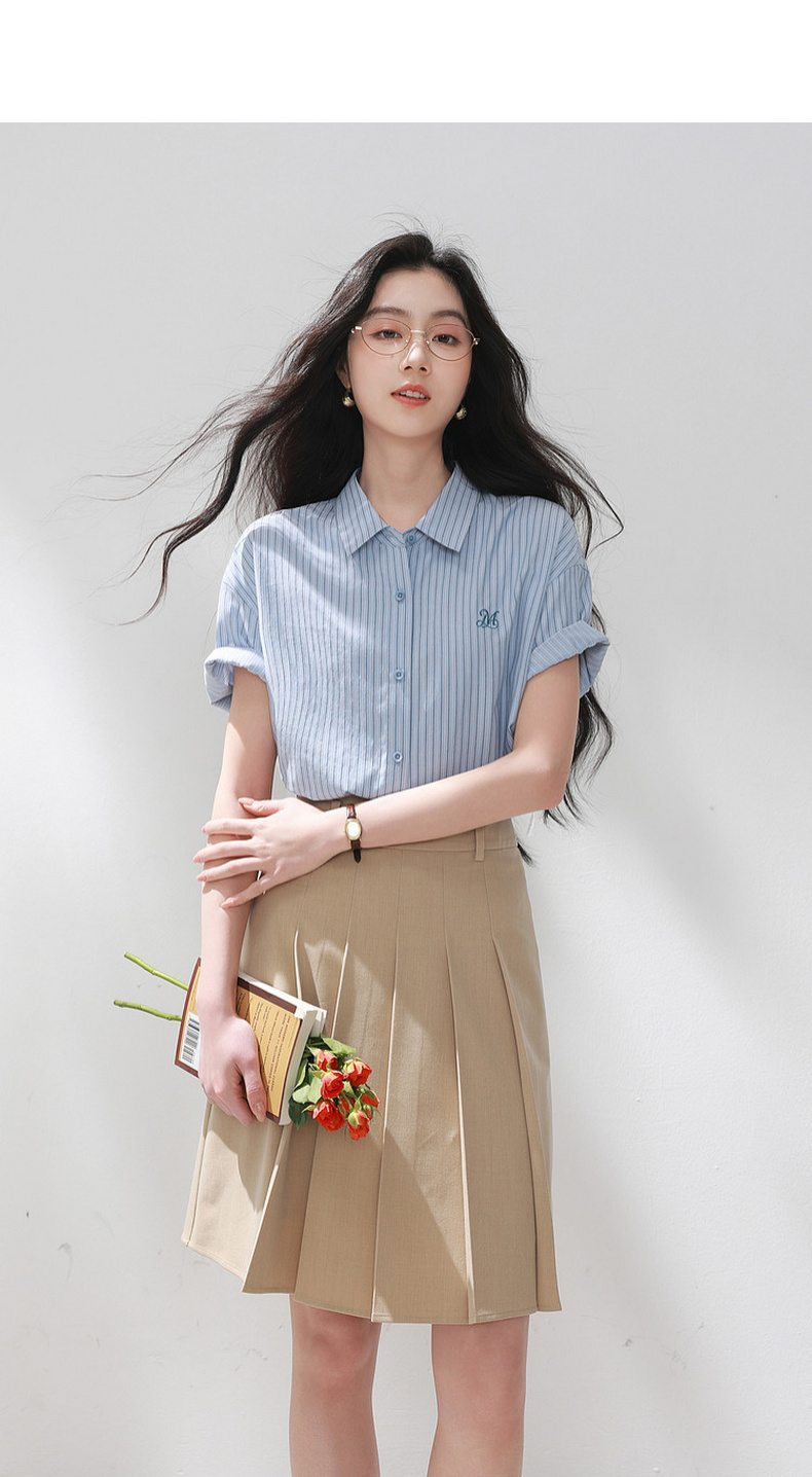 三彩2026夏季新款条纹衬衫刺绣宽松翻领休闲衬衣简约M