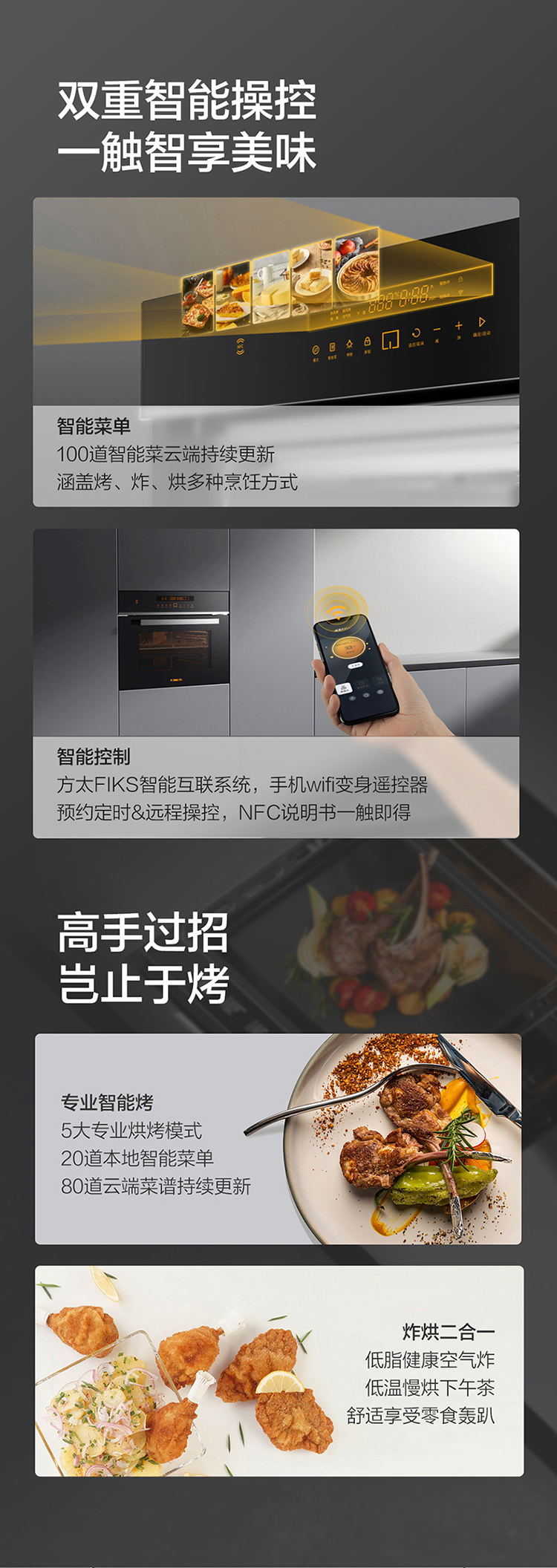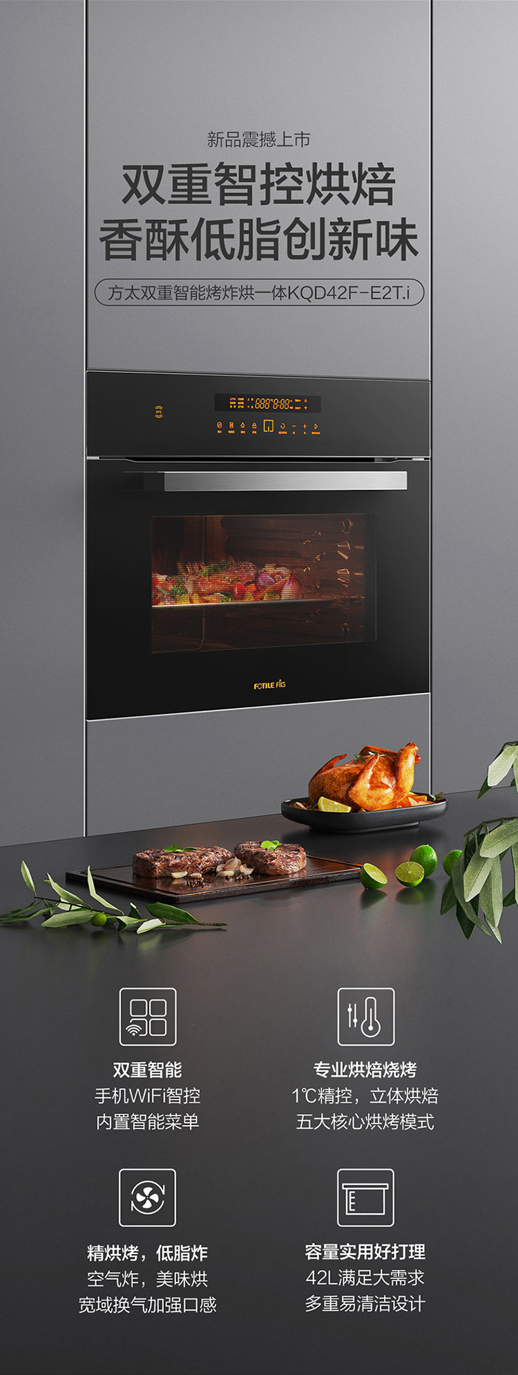 方太(FOTILE)电烤箱家用嵌入式烤箱42升大容量烤箱智能烘烤空气炸三合一烘烤炸一体 42L烘烤炸一体机KQD42F-E2T.i