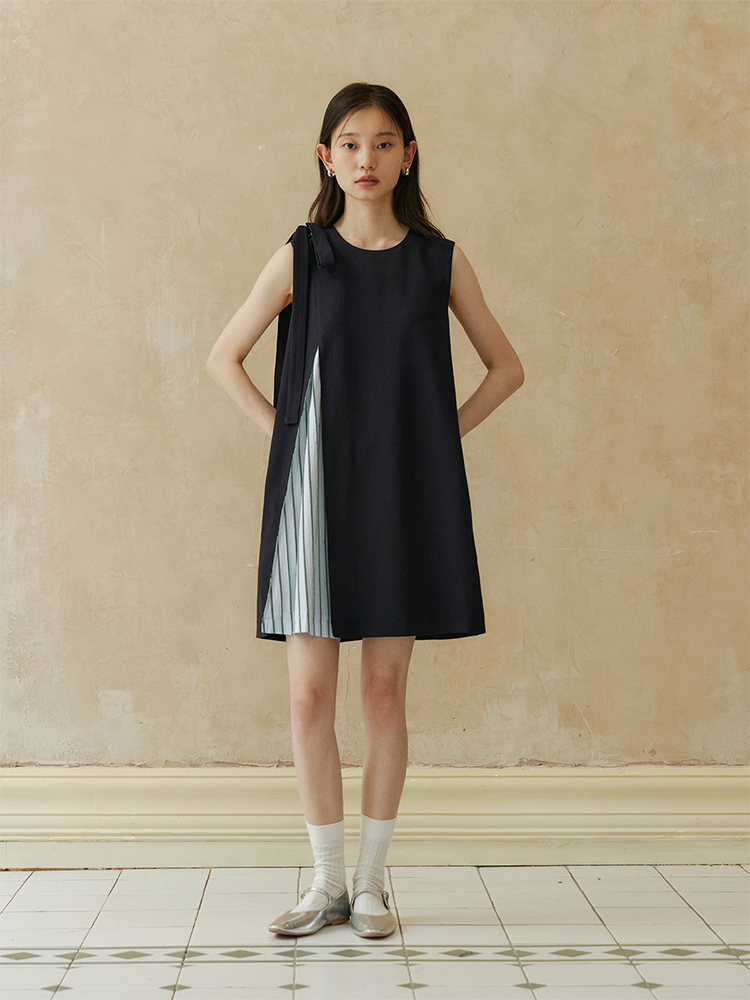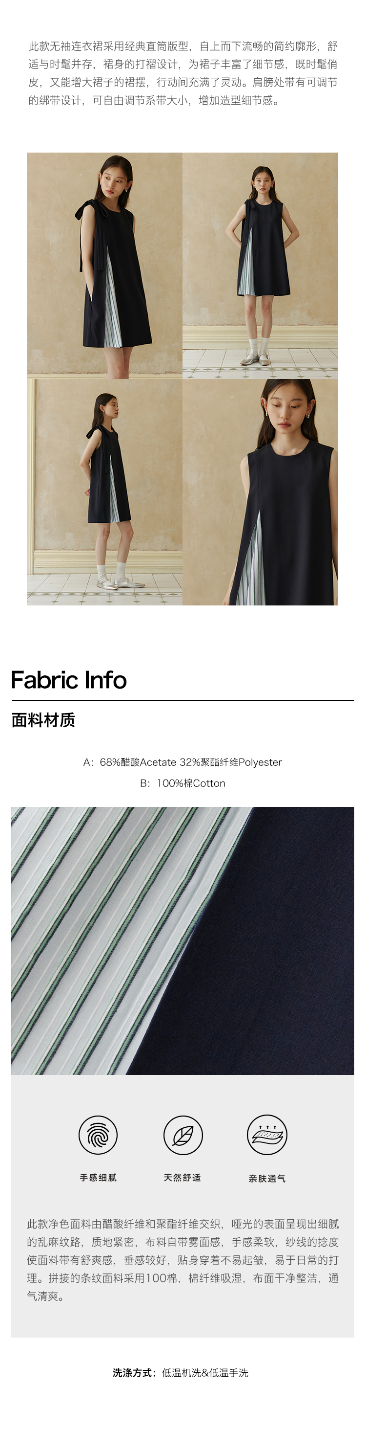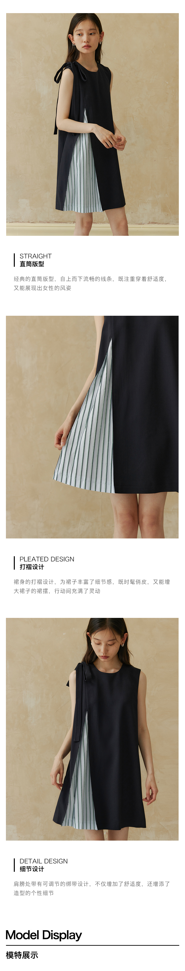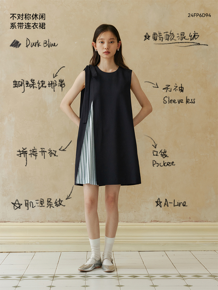 ForPoem 现货 24/SS原创设计醋酸条纹褶不对称微A字系结连衣裙