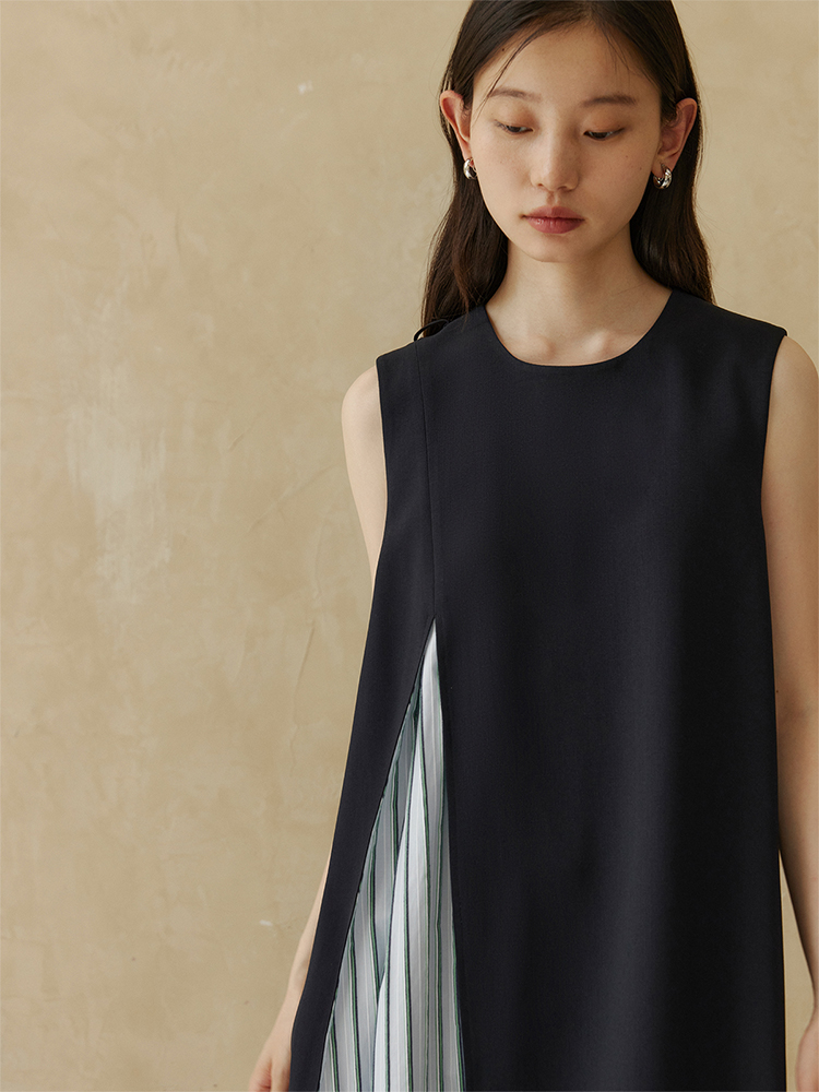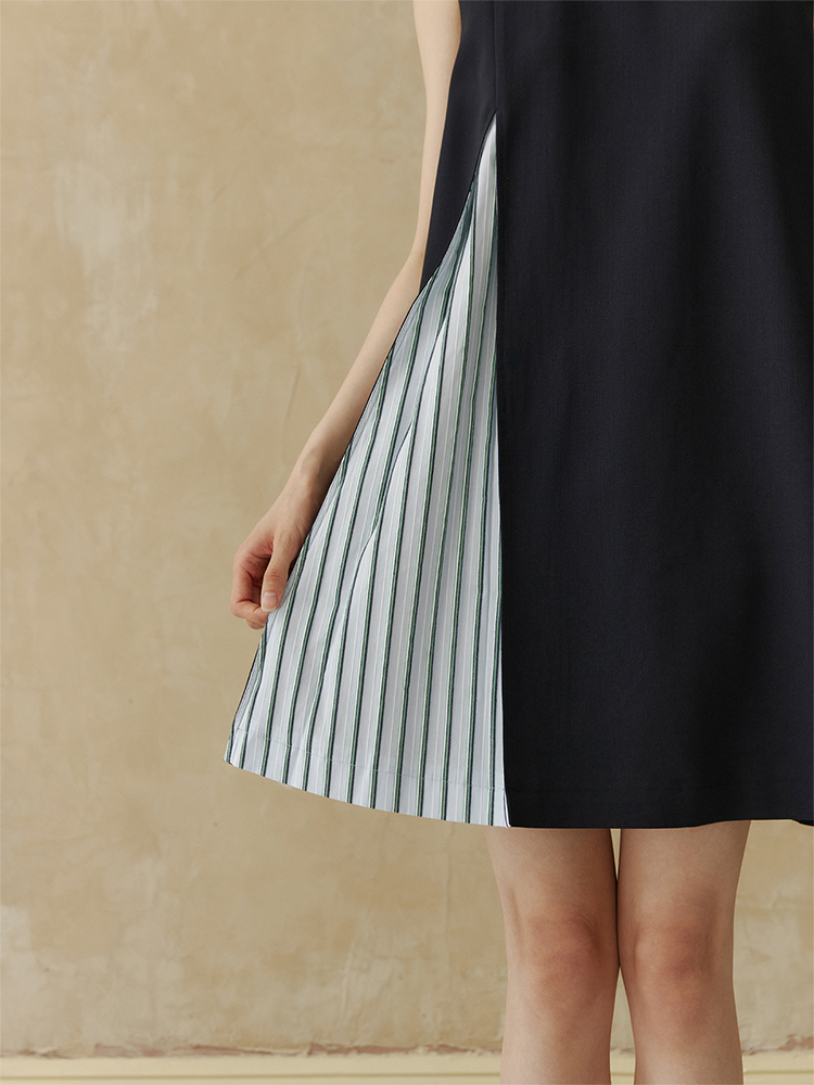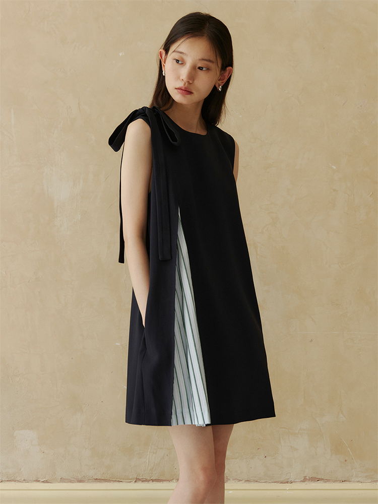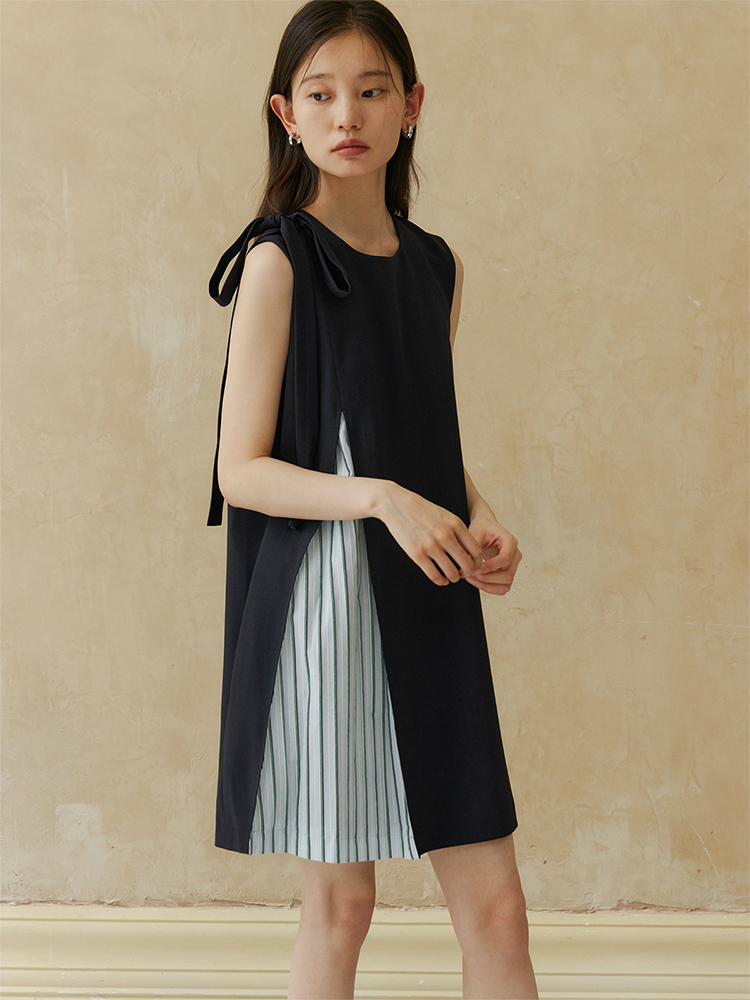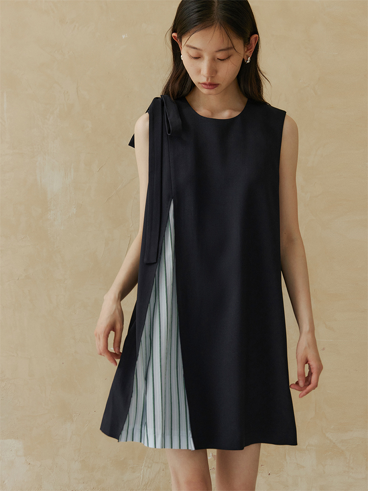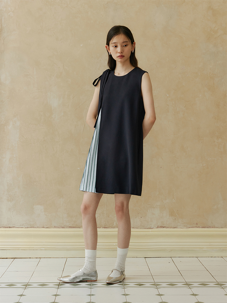 ForPoem 现货 24/SS原创设计醋酸条纹褶不对称微A字系结连衣裙