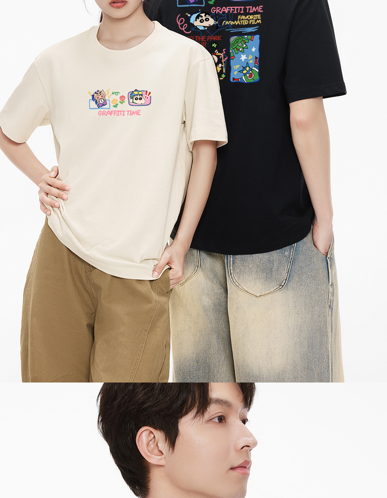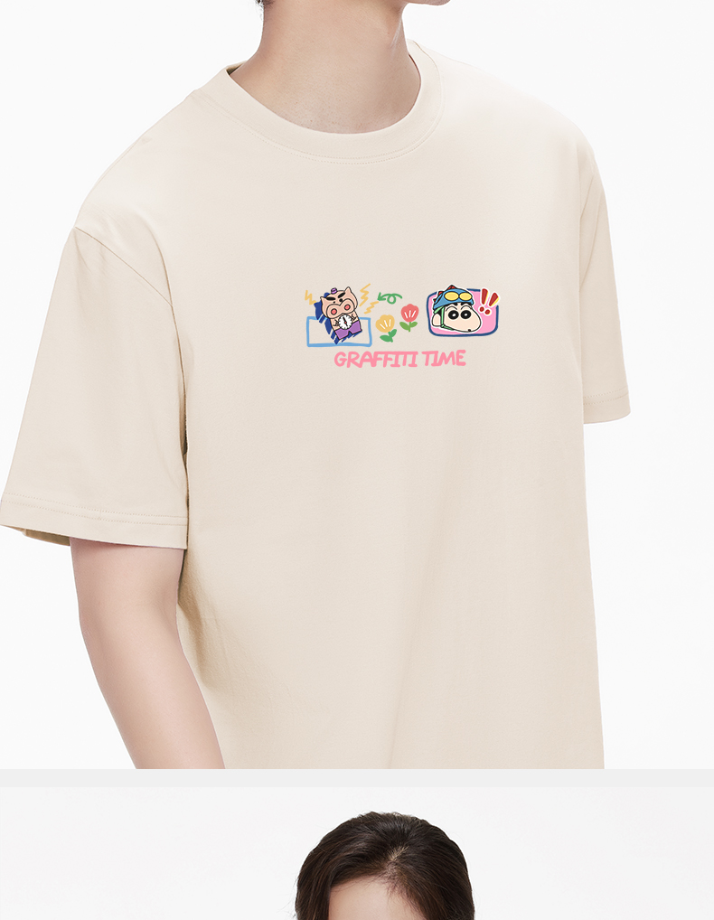 「棉的美学」童趣蜡笔小新印花短袖T恤宽松休闲百搭男女同款上衣