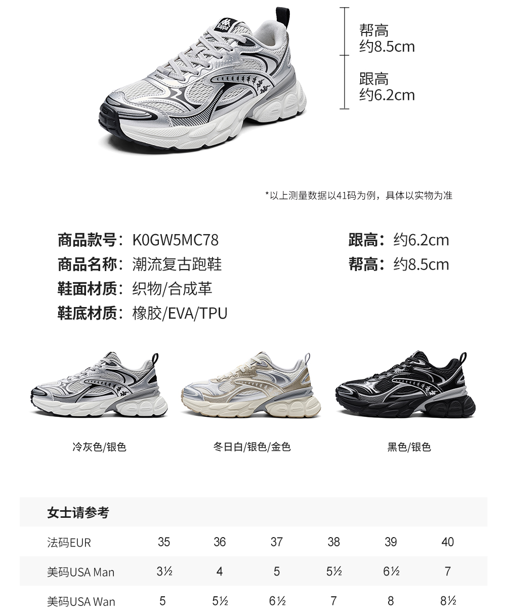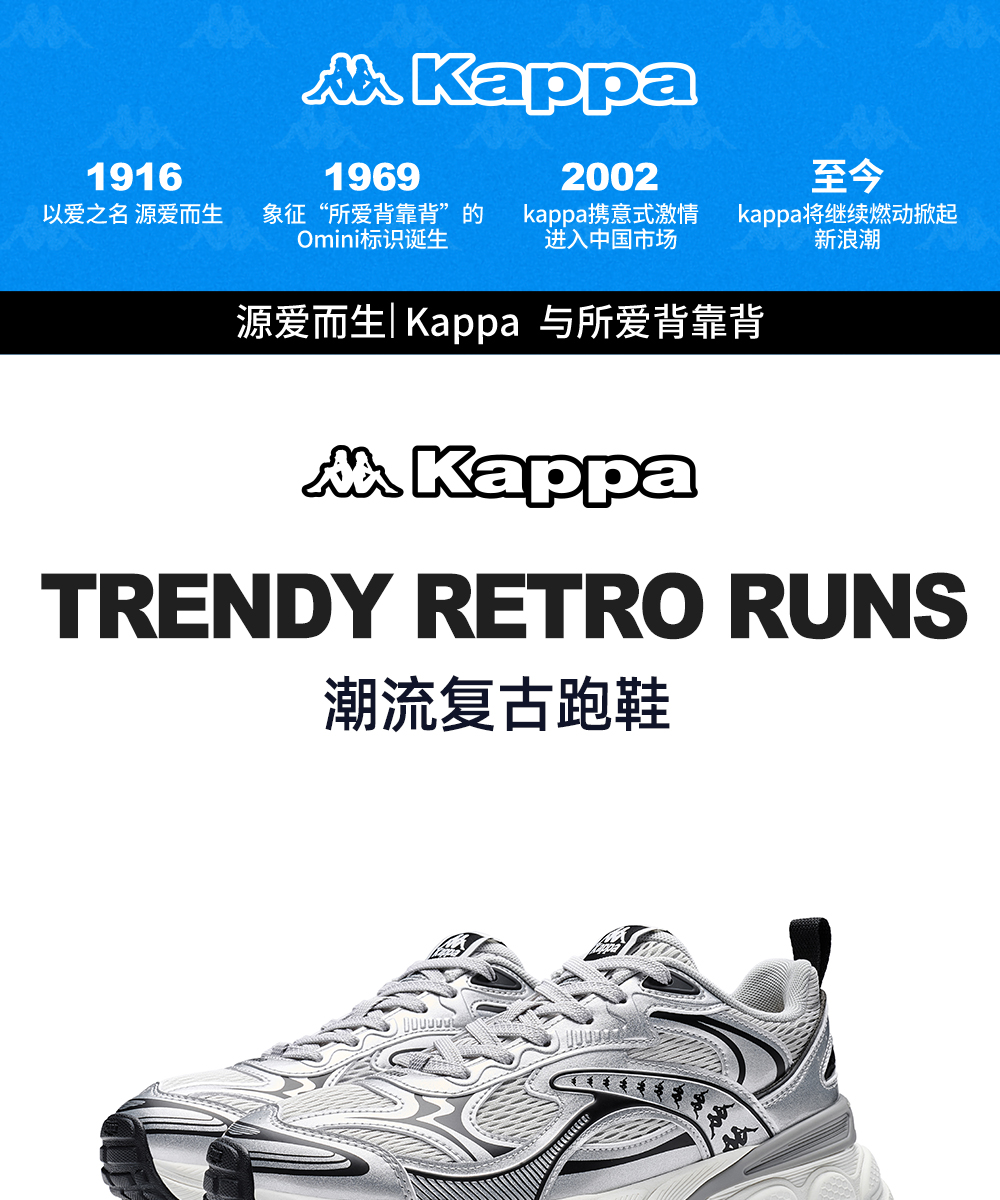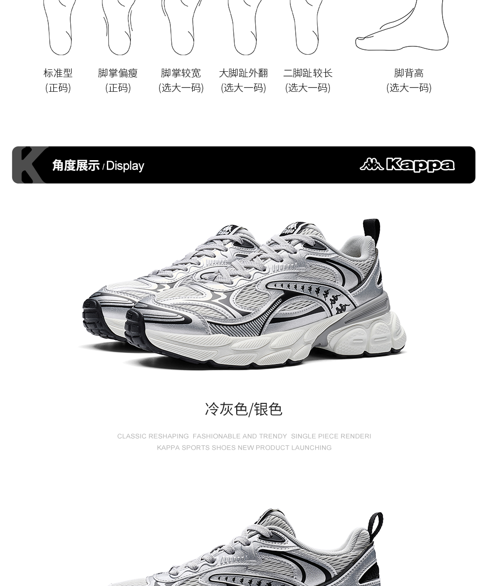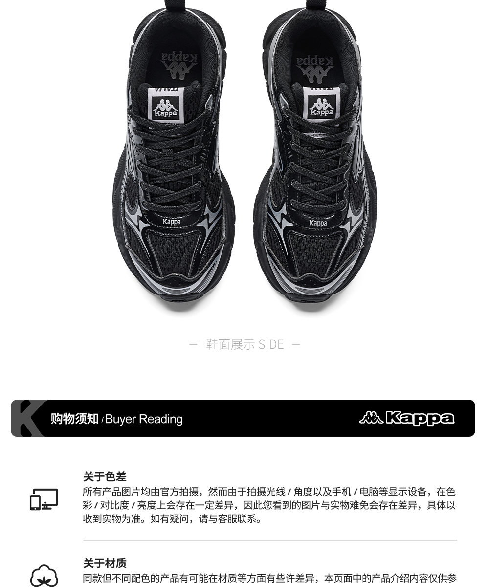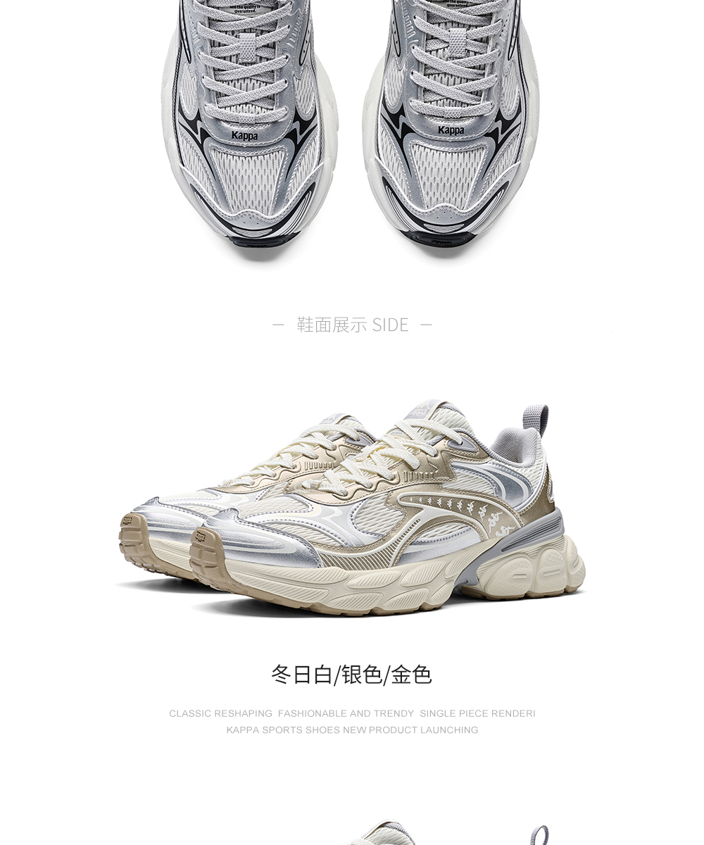 Kappa 男女新款老爹鞋厚底运动鞋潮流百搭网面跑步鞋子K0GW5MC78