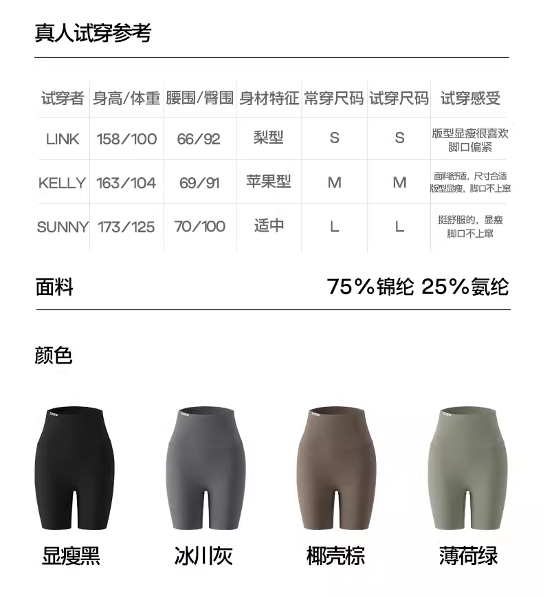 SIINSIIN三分凉感鲨鱼裤女外穿收腹提臀瑜伽打底安全骑行裤
