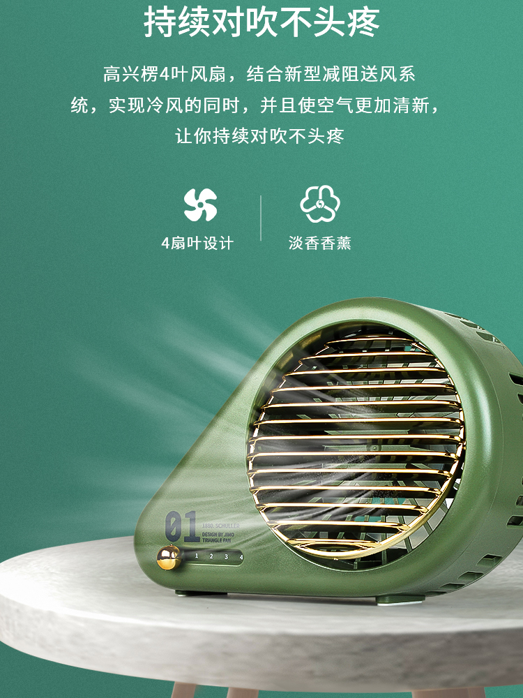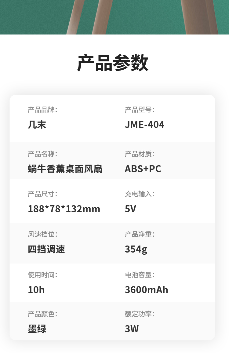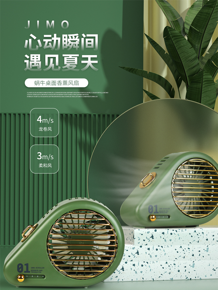 高端制造 几末 蜗牛造型 桌面风扇 带香薰造型 内置电池JME-404