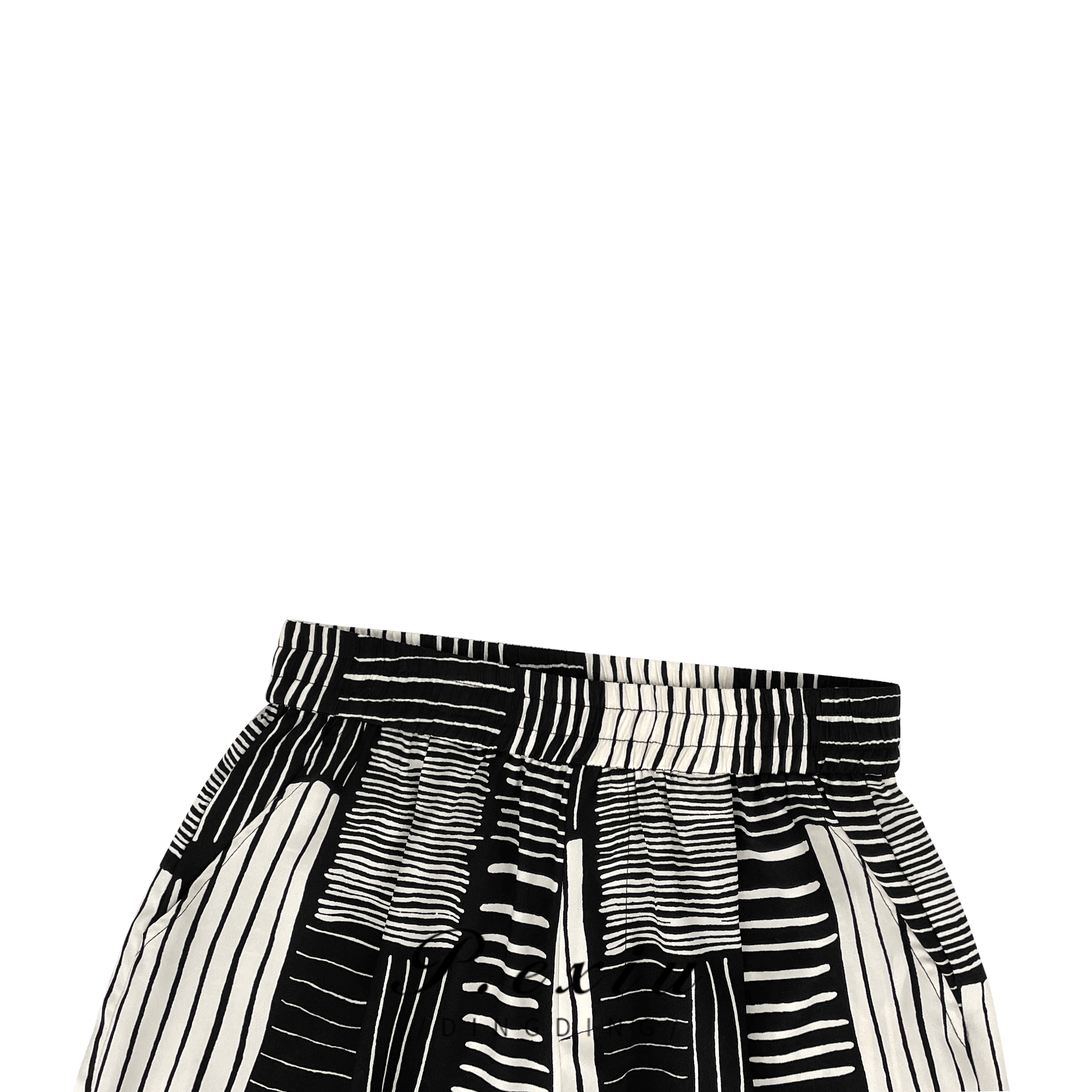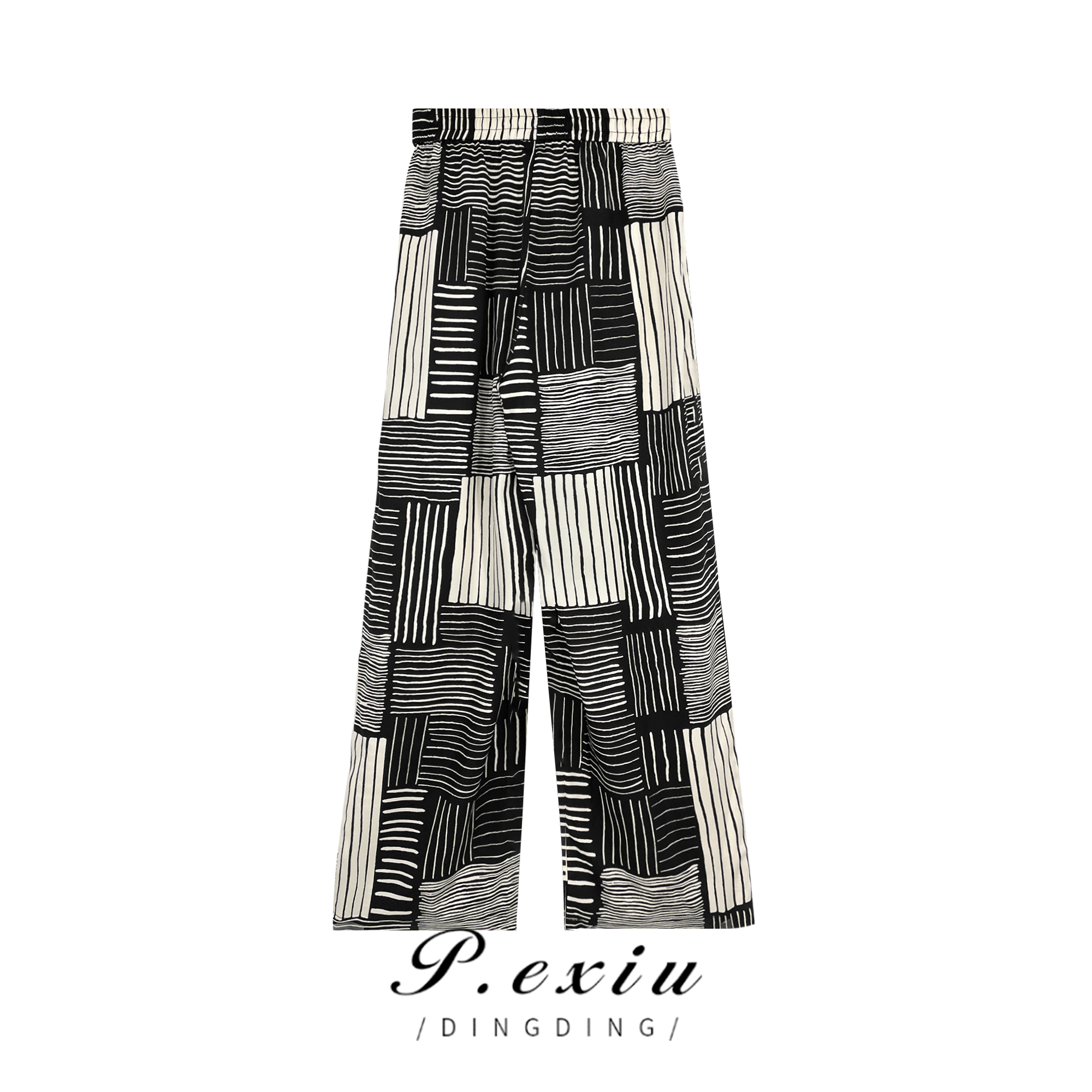 04-1潘依绣丁丁宠粉夏季宽松复古松紧腰条纹印花直筒休闲裤 WH23060