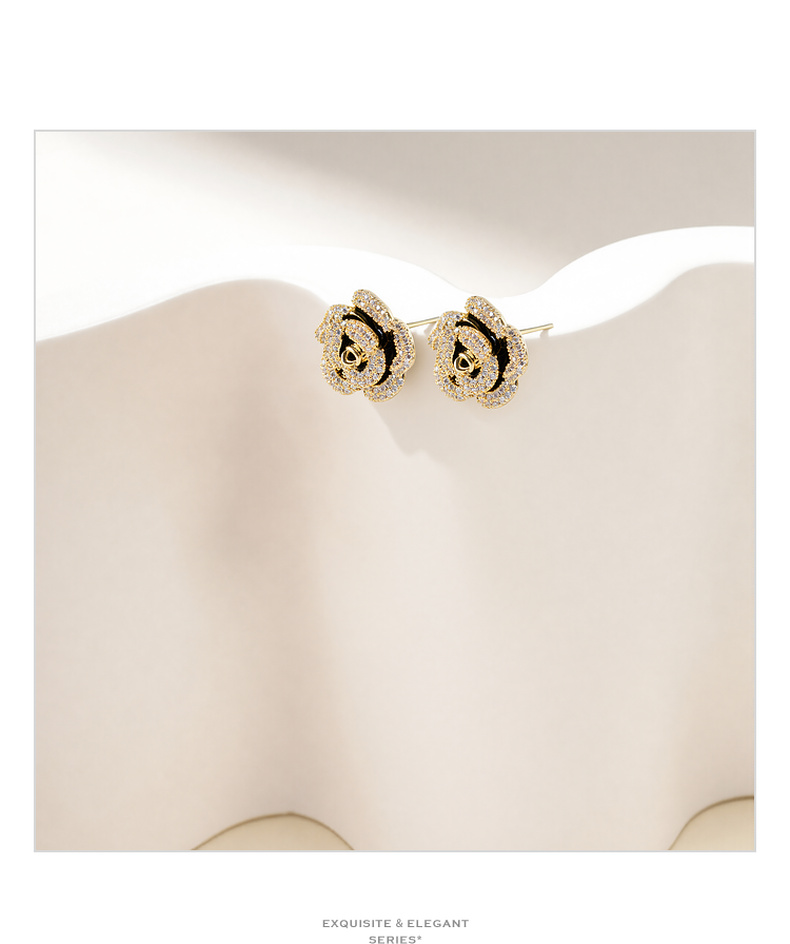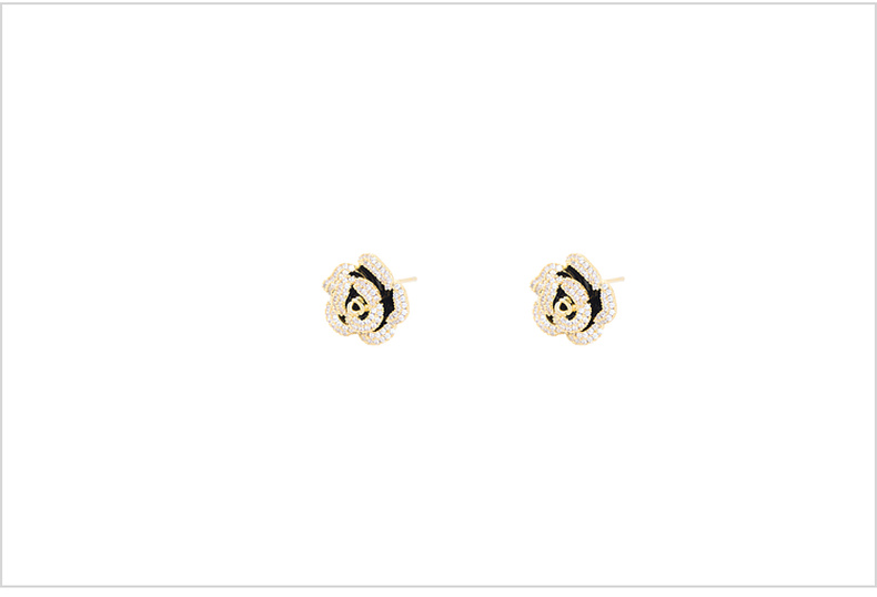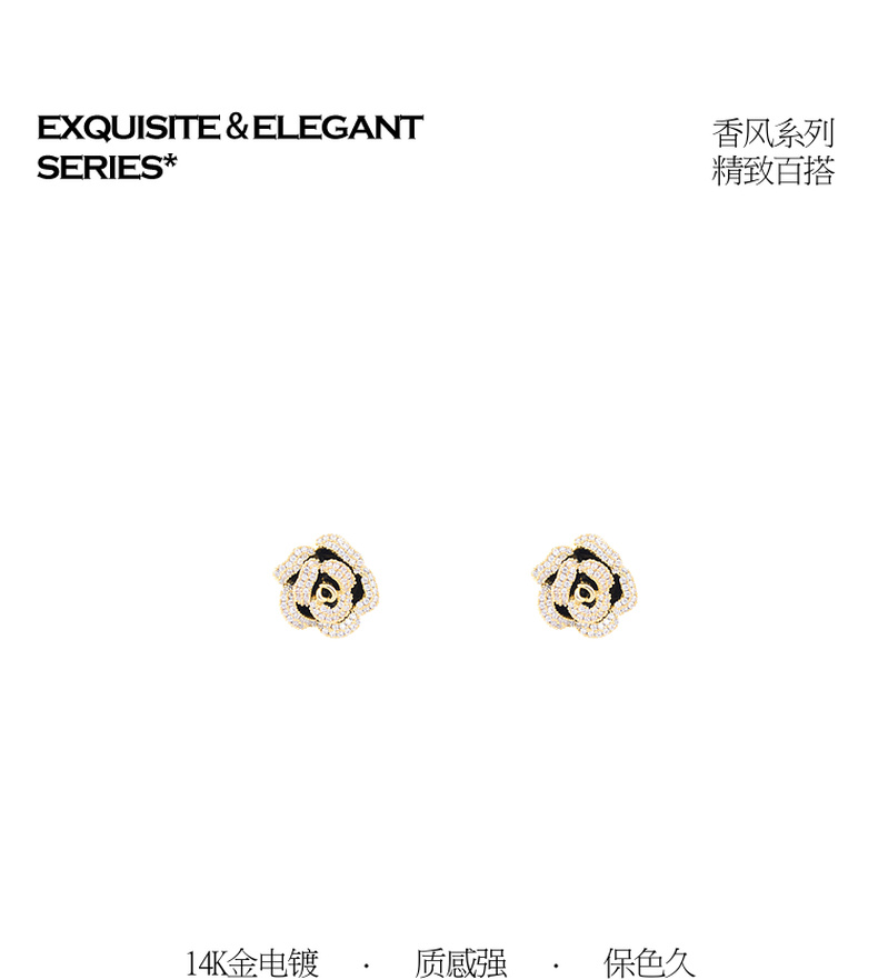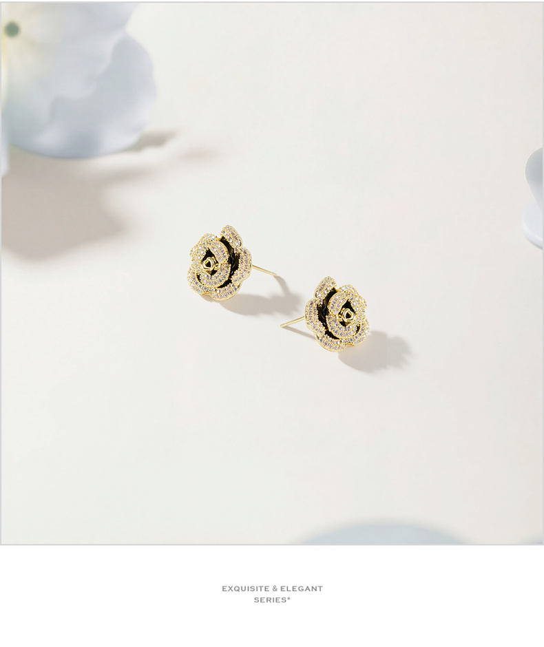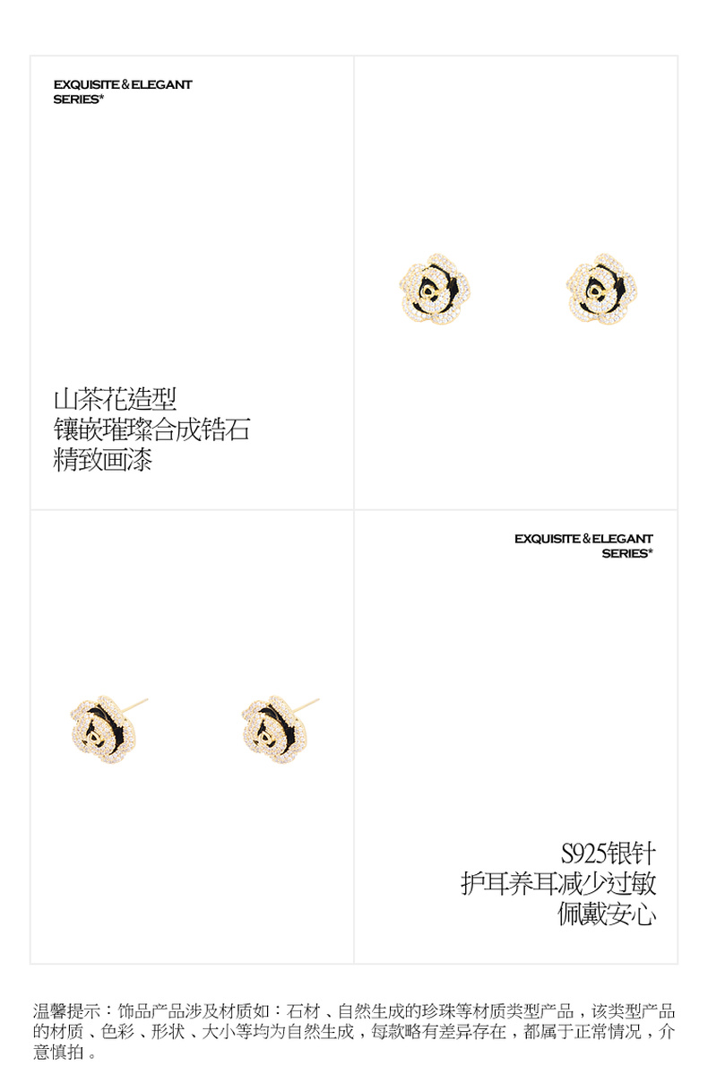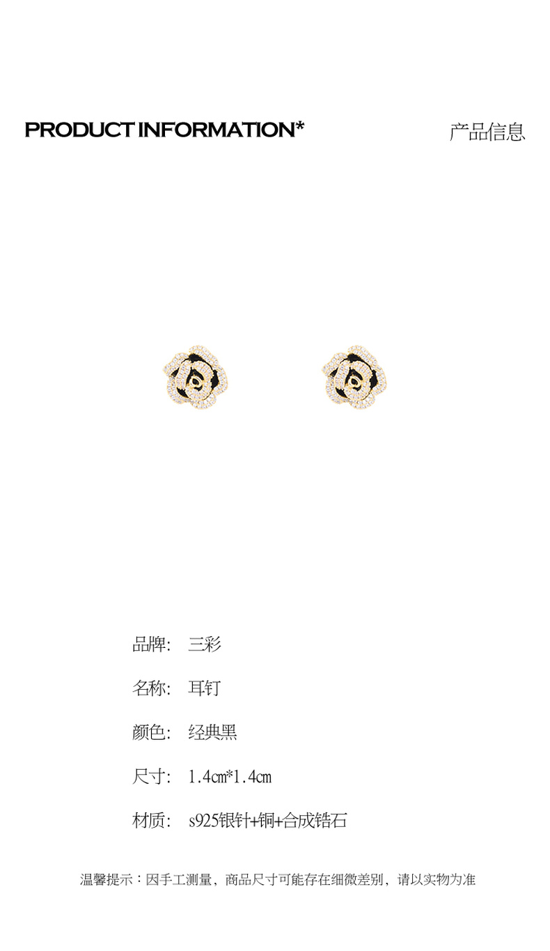 三彩2026新款山茶花锆石画漆耳钉S925银针复古小香风派对约会法式