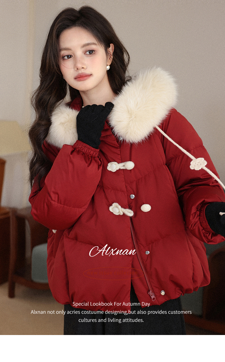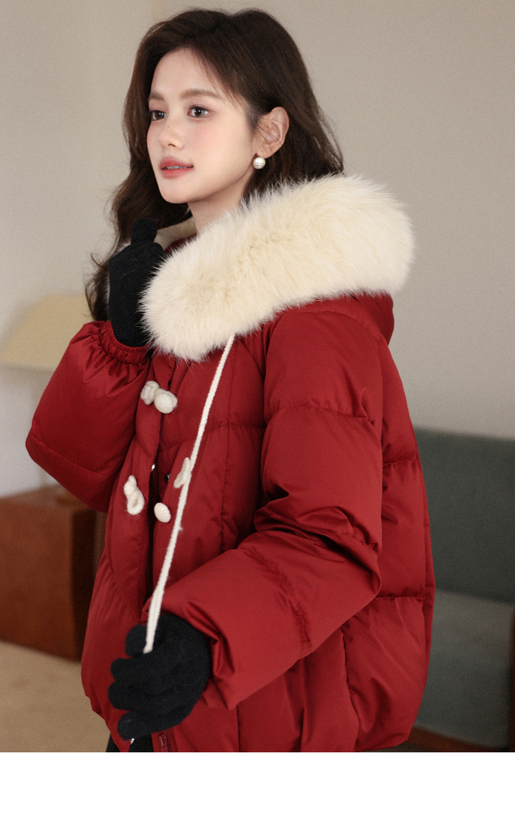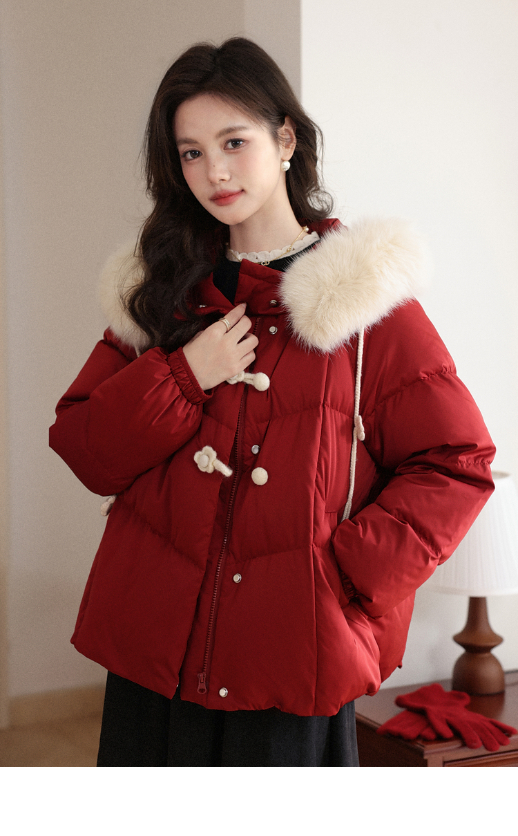 鹿向南「红枫叶」90白鸭绒羽绒服女装冬季可拆卸狐狸毛领保暖外套