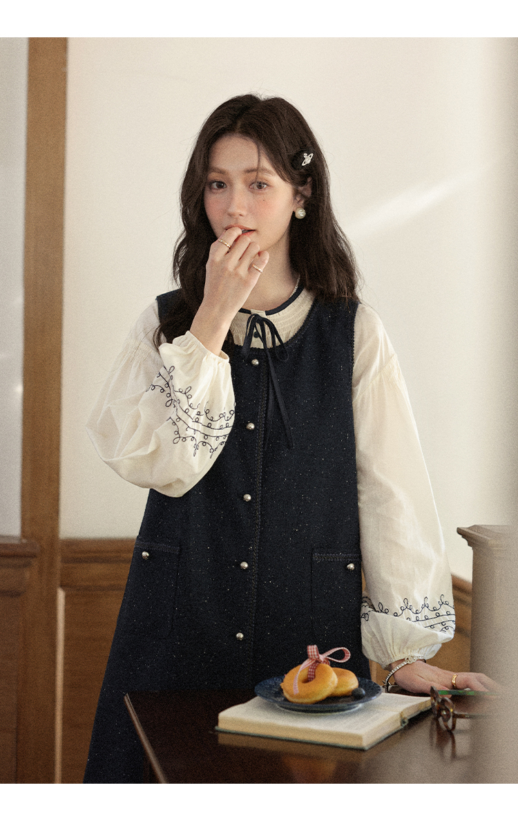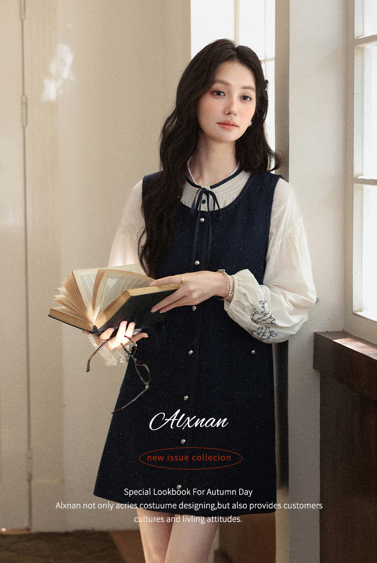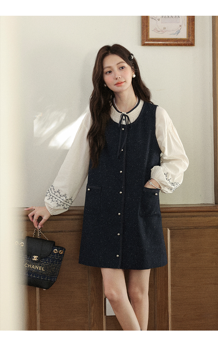 鹿向南「斯妮温小姐」法式藏青色背心连衣裙女秋气质宽松显瘦裙子