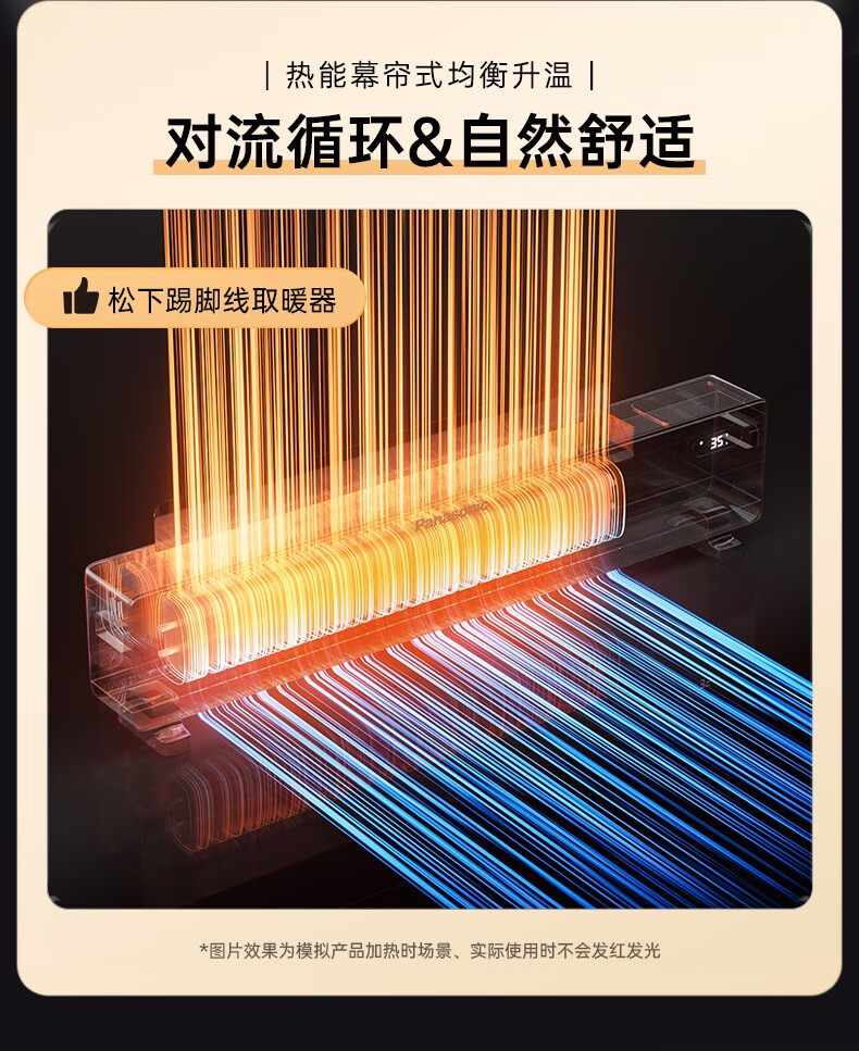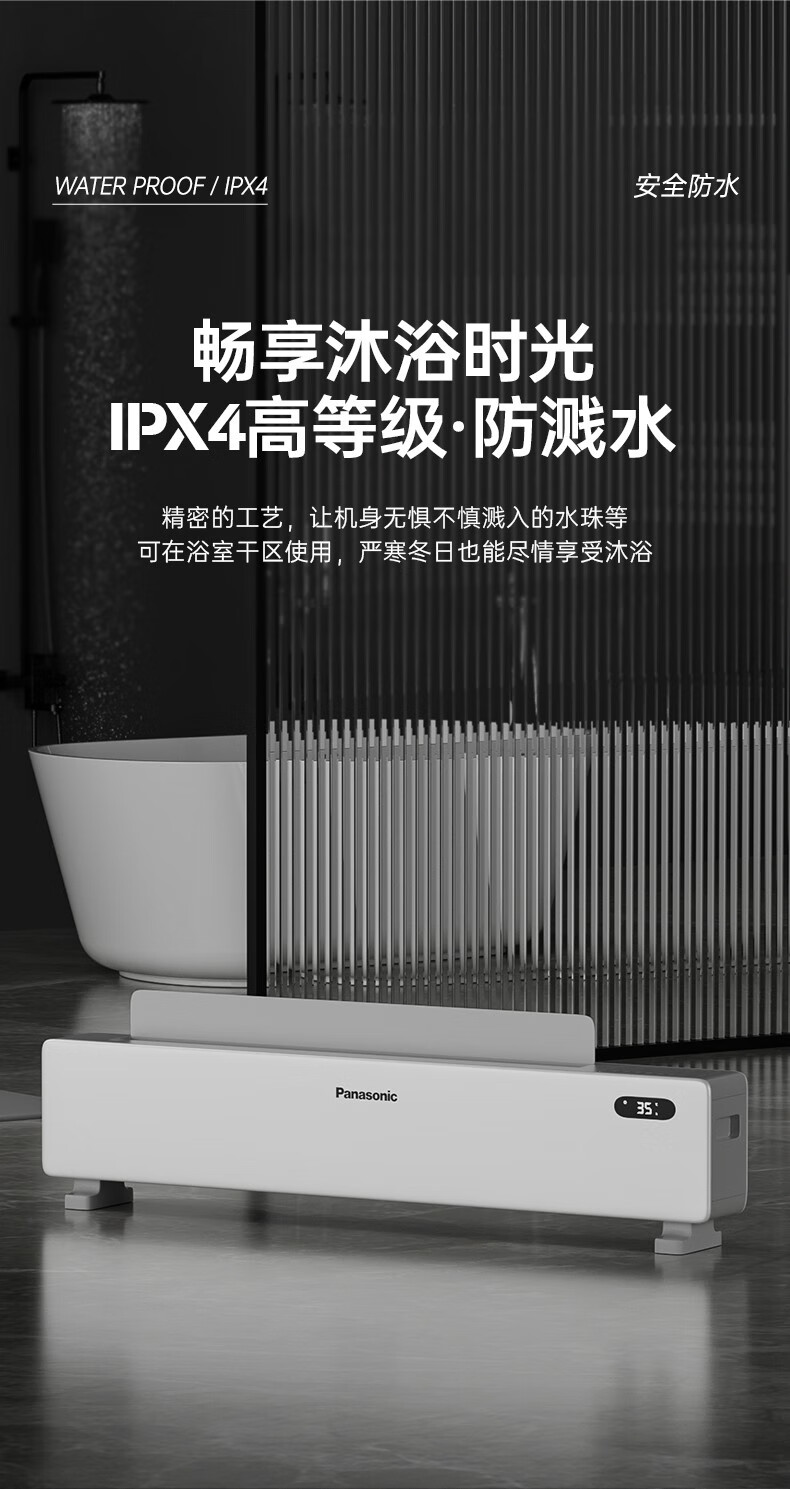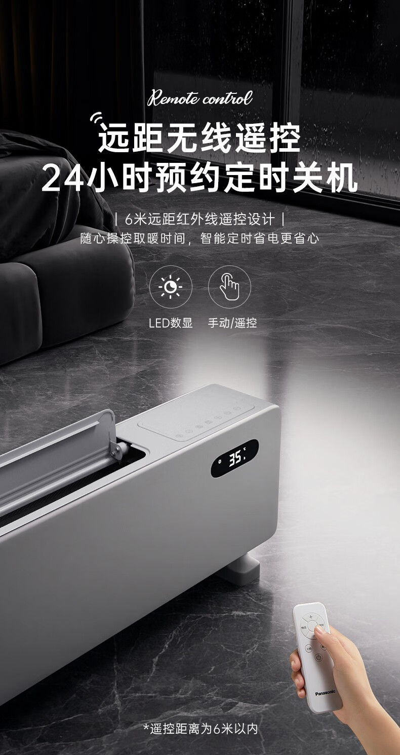 松下(Panasonic) 踢脚线取暖器石墨烯加热电暖器家用节能电暖气片电暖器家用客厅浴室大面积供暖 防尘自动翻盖款DS-AK2237CW