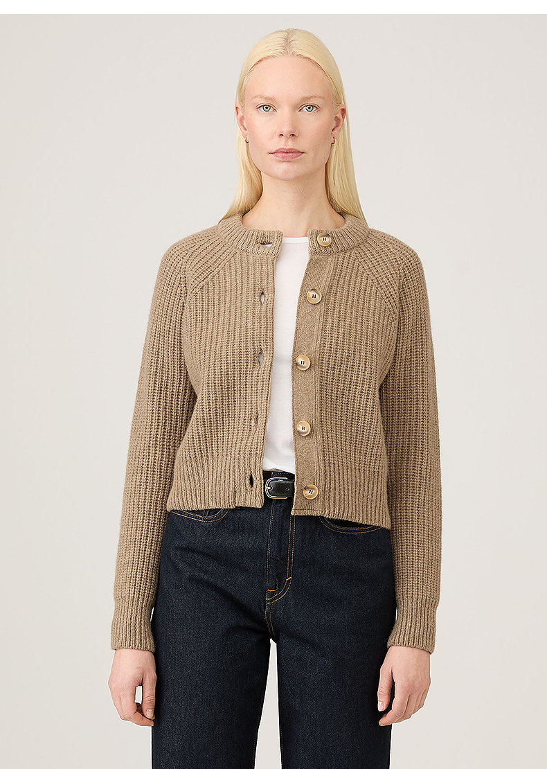 【秋冬新品】SUNSPEL女士秋冬羊毛圆领罗纹针织开衫