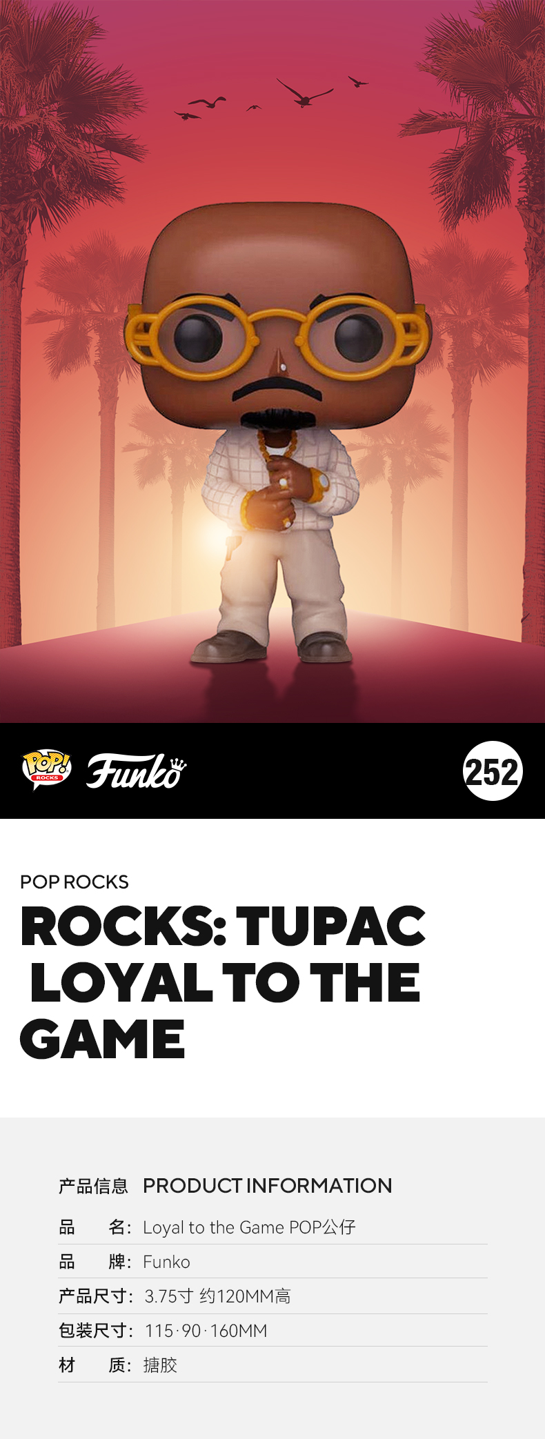 Funko POP! Rocks Tupac Loyal to the Game 音乐摇滚明星 图派克·夏库尔公仔手办摆件 56738