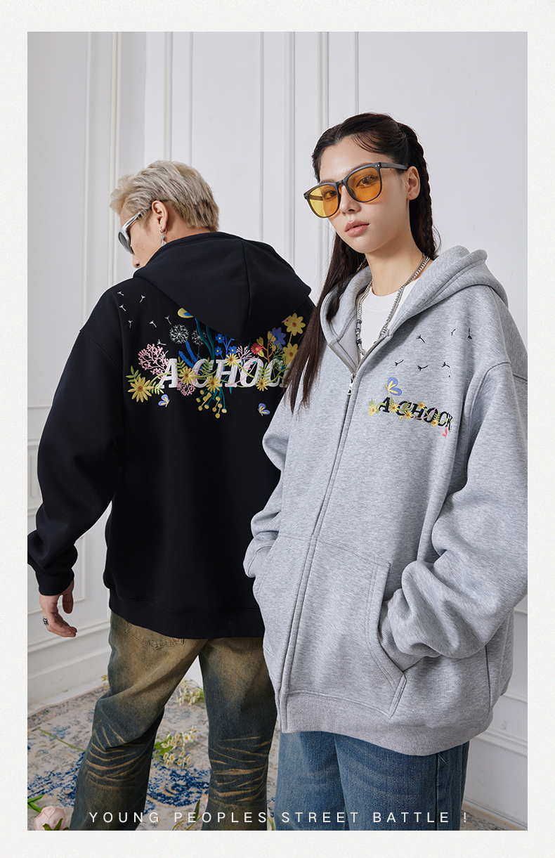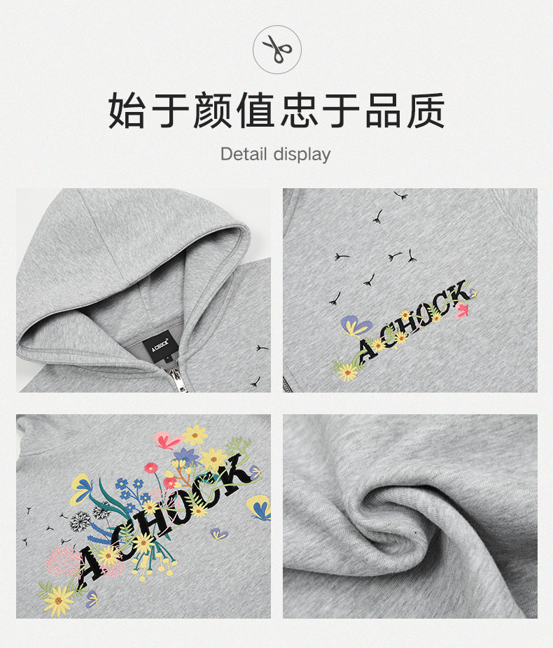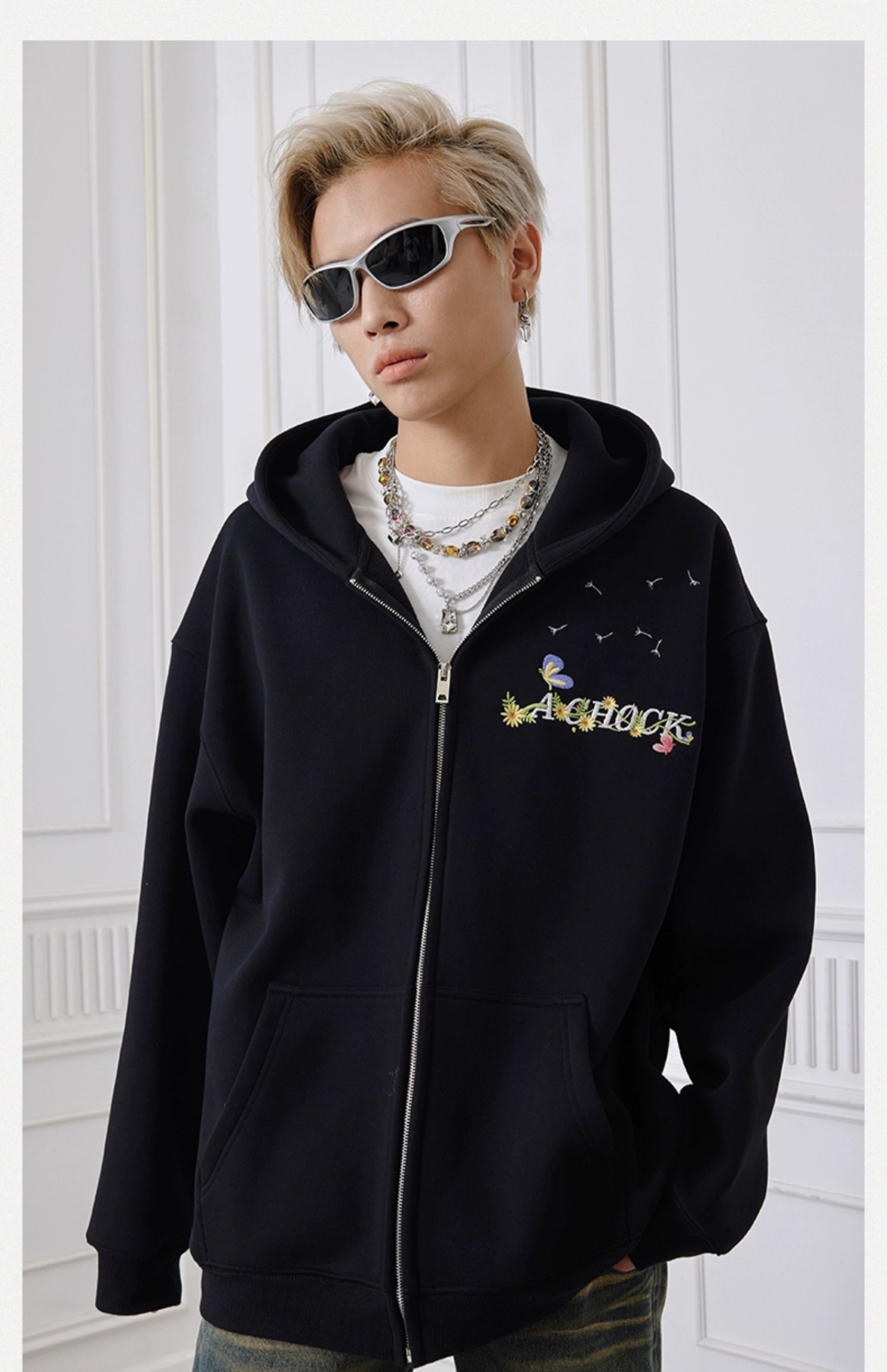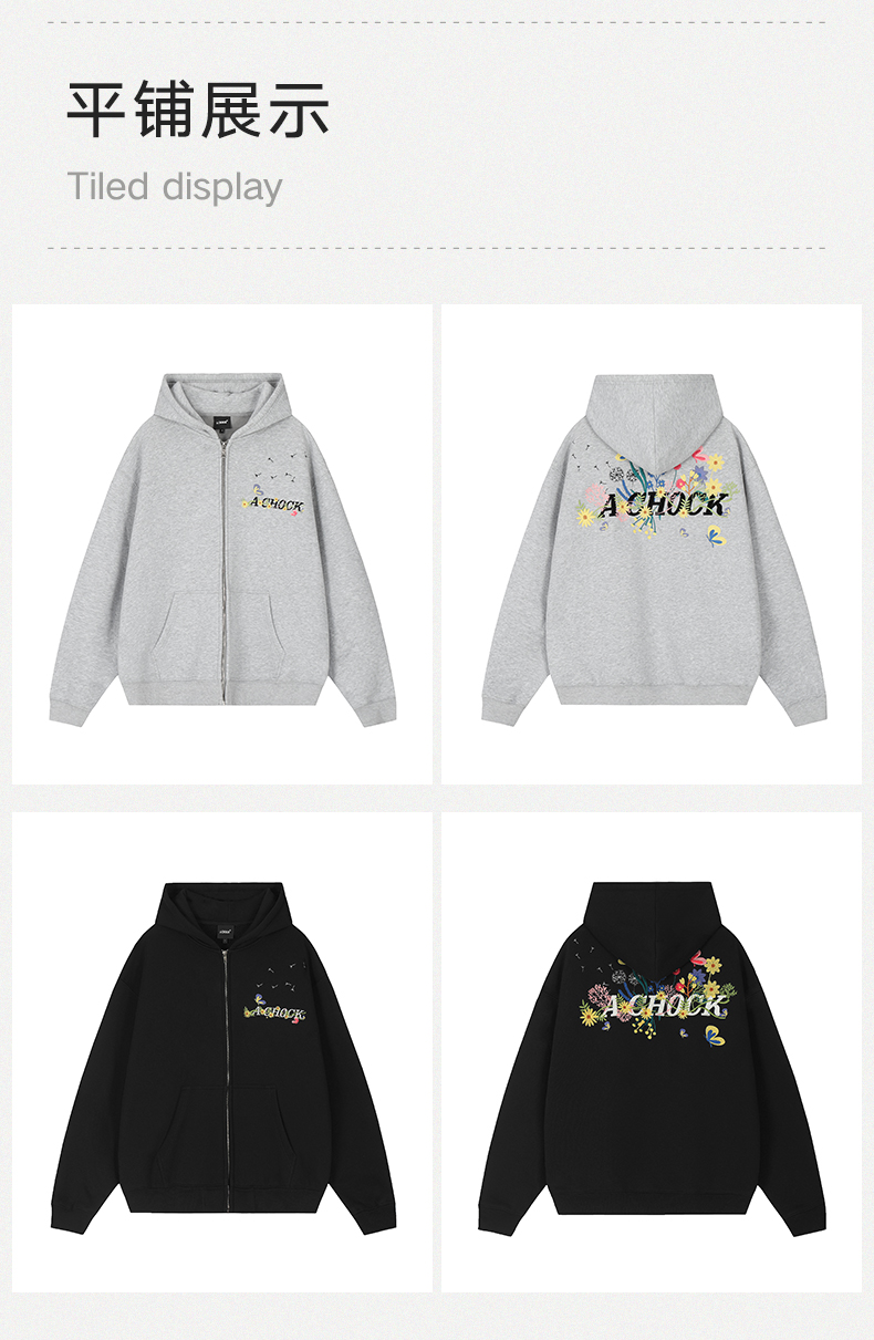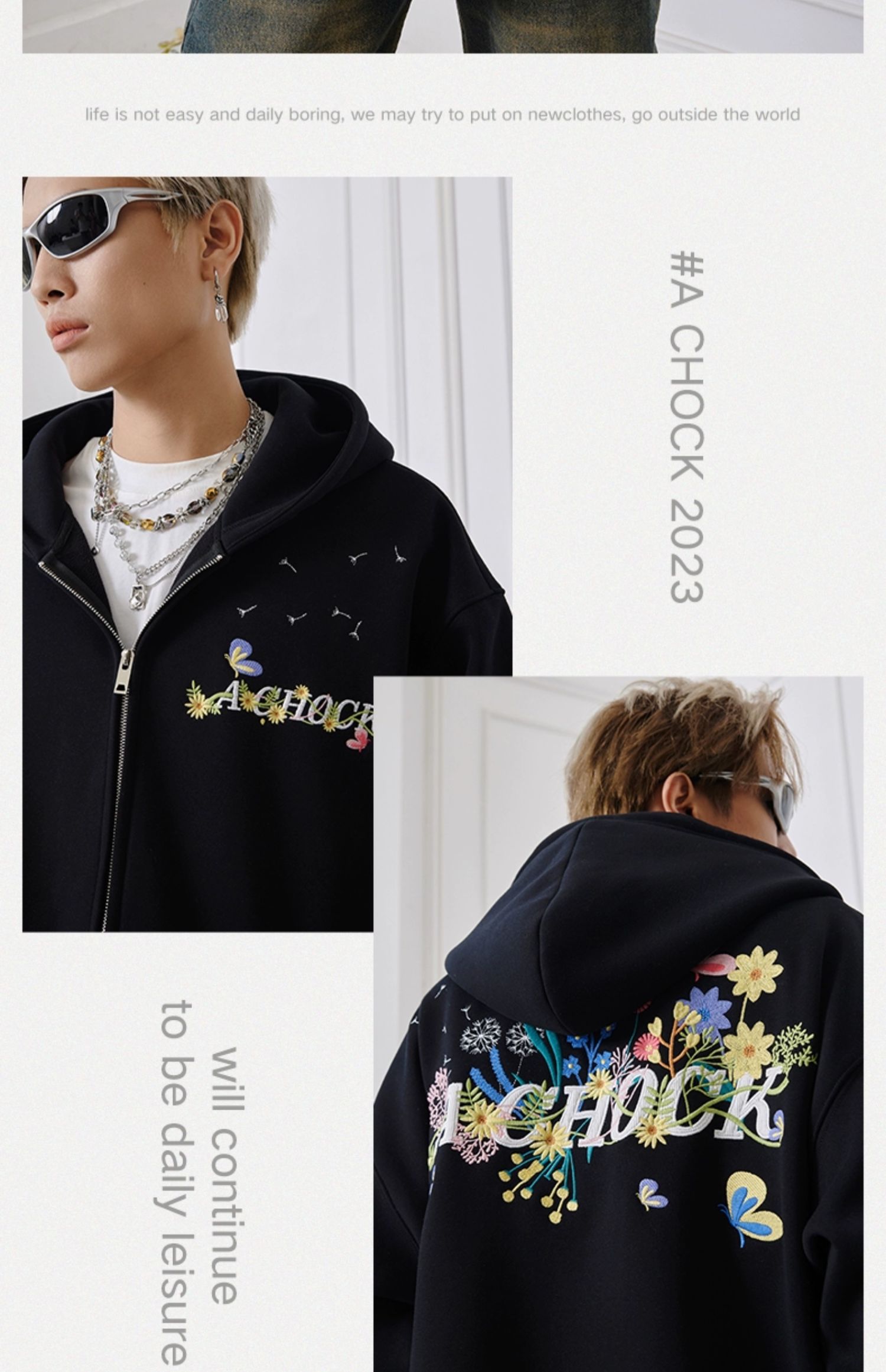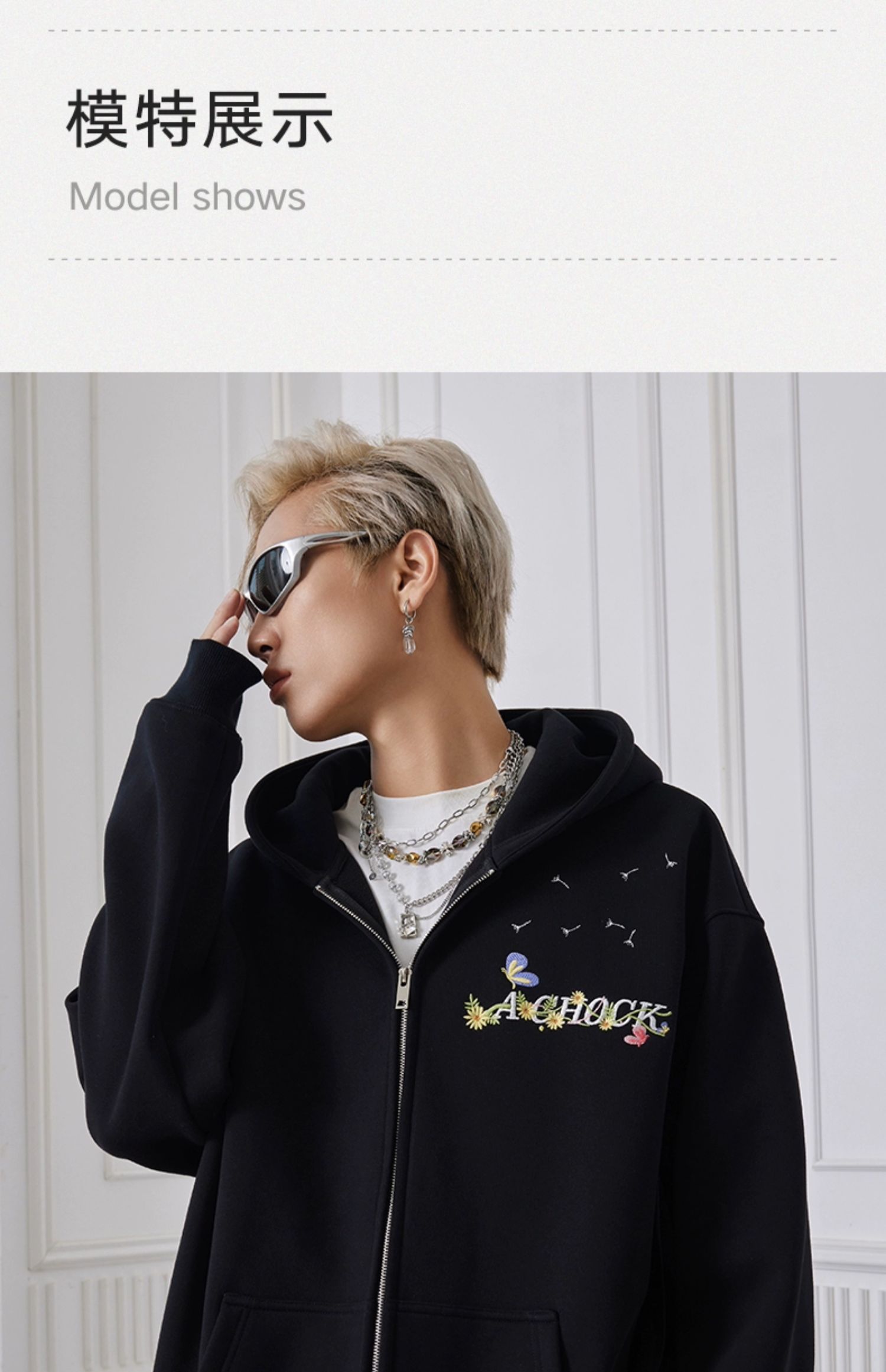 【Achock官方店】潮牌拉链开衫运动休闲美式花卉刺绣重磅开衫卫衣