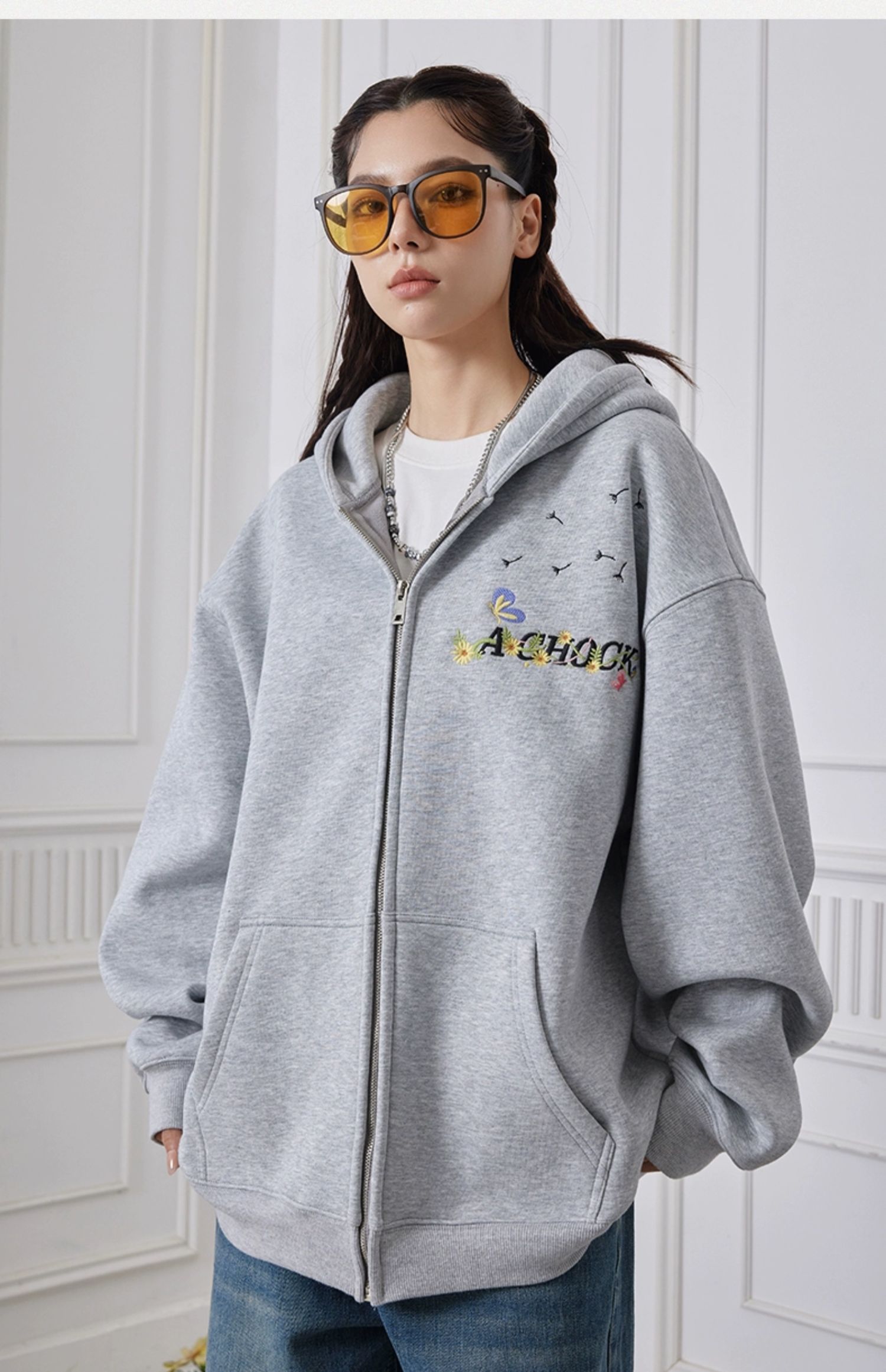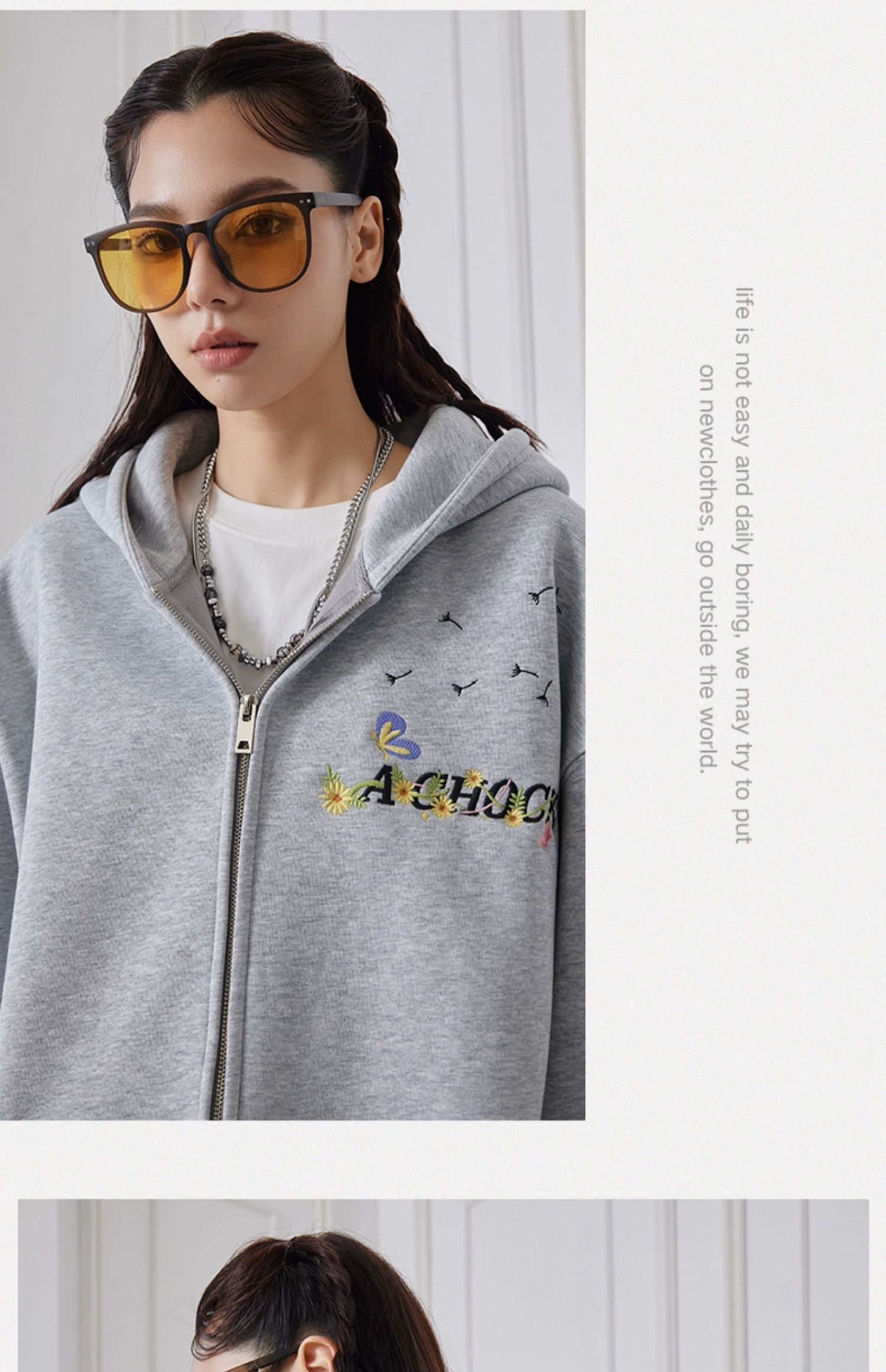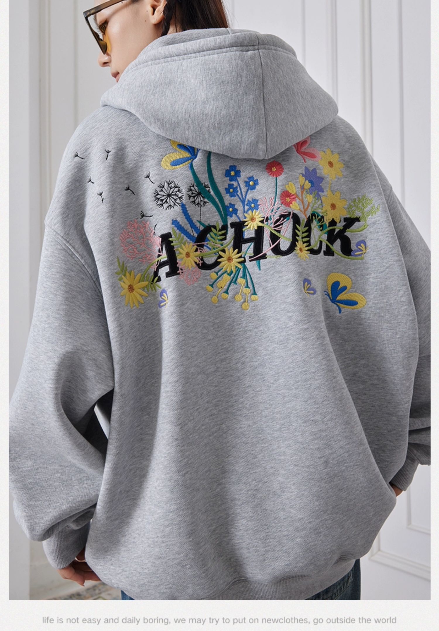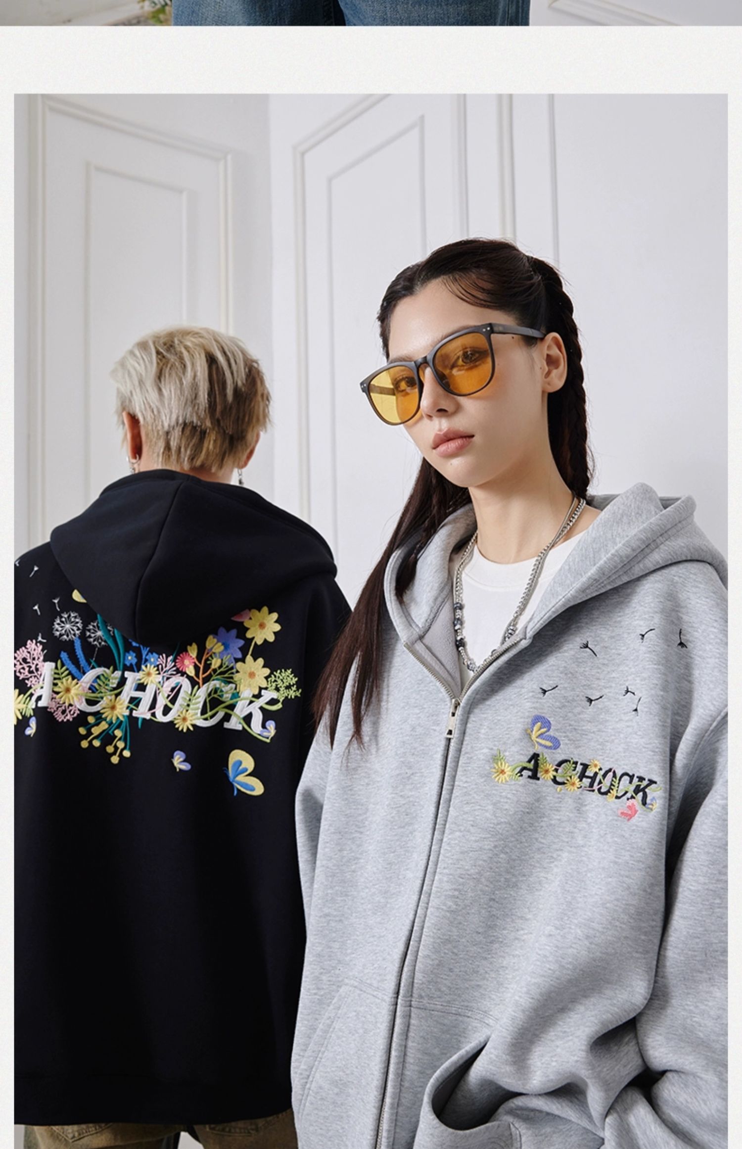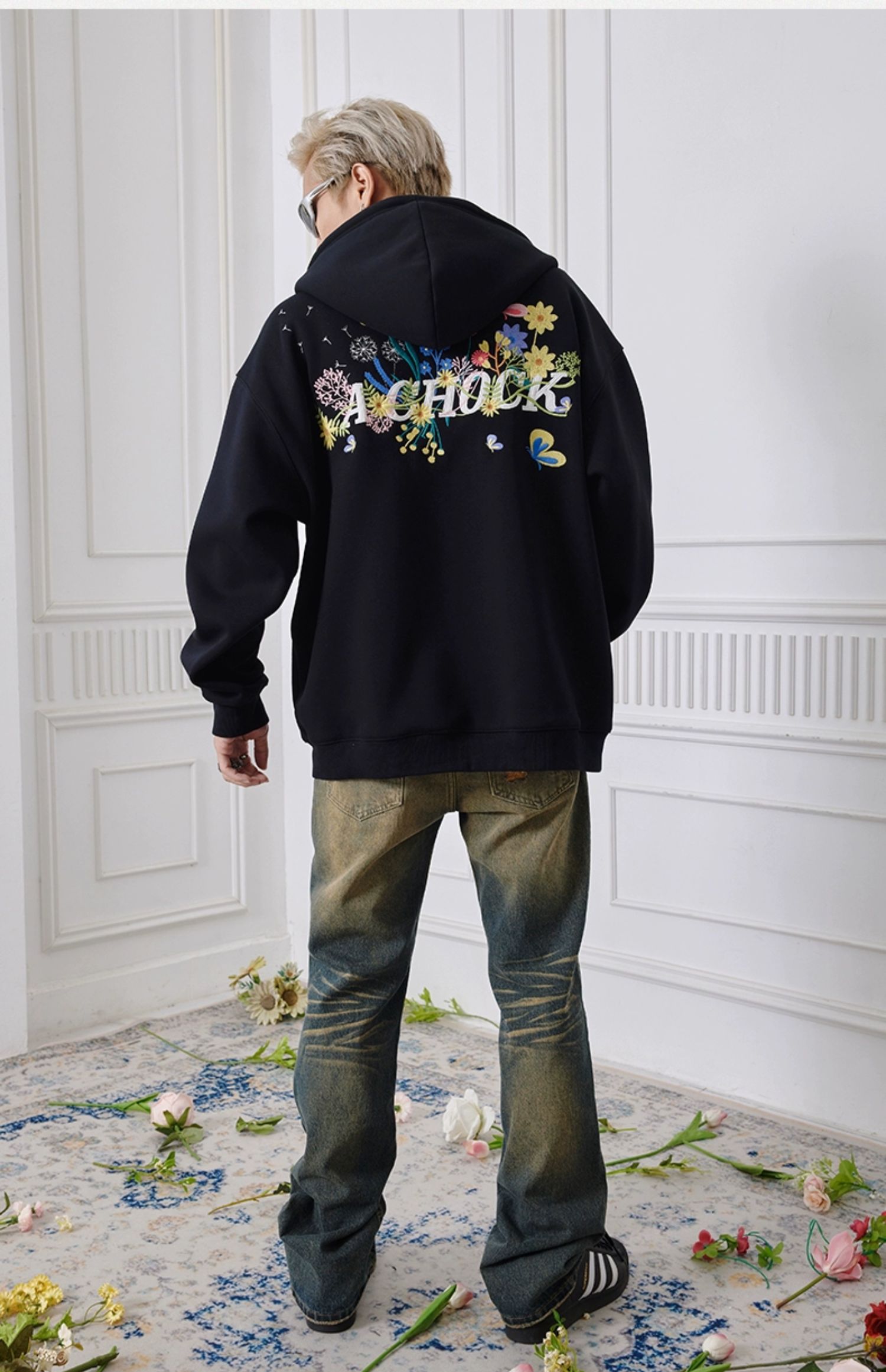 【Achock官方店】潮牌拉链开衫运动休闲美式花卉刺绣重磅开衫卫衣