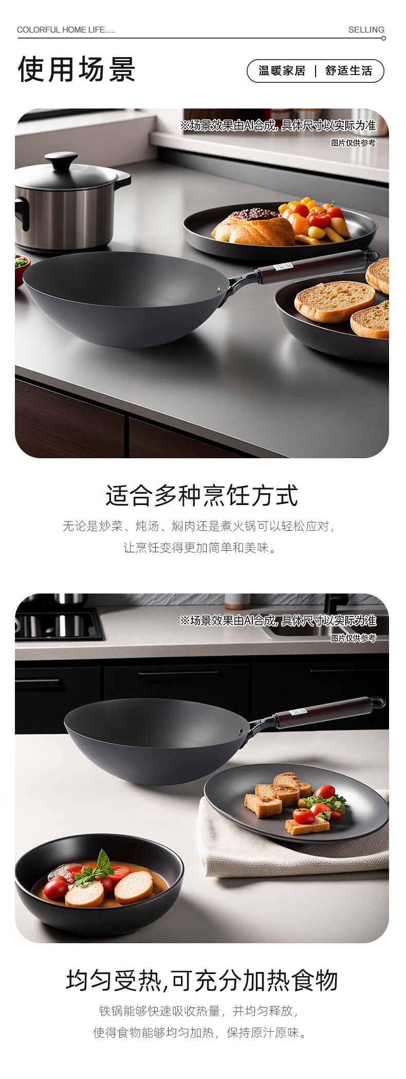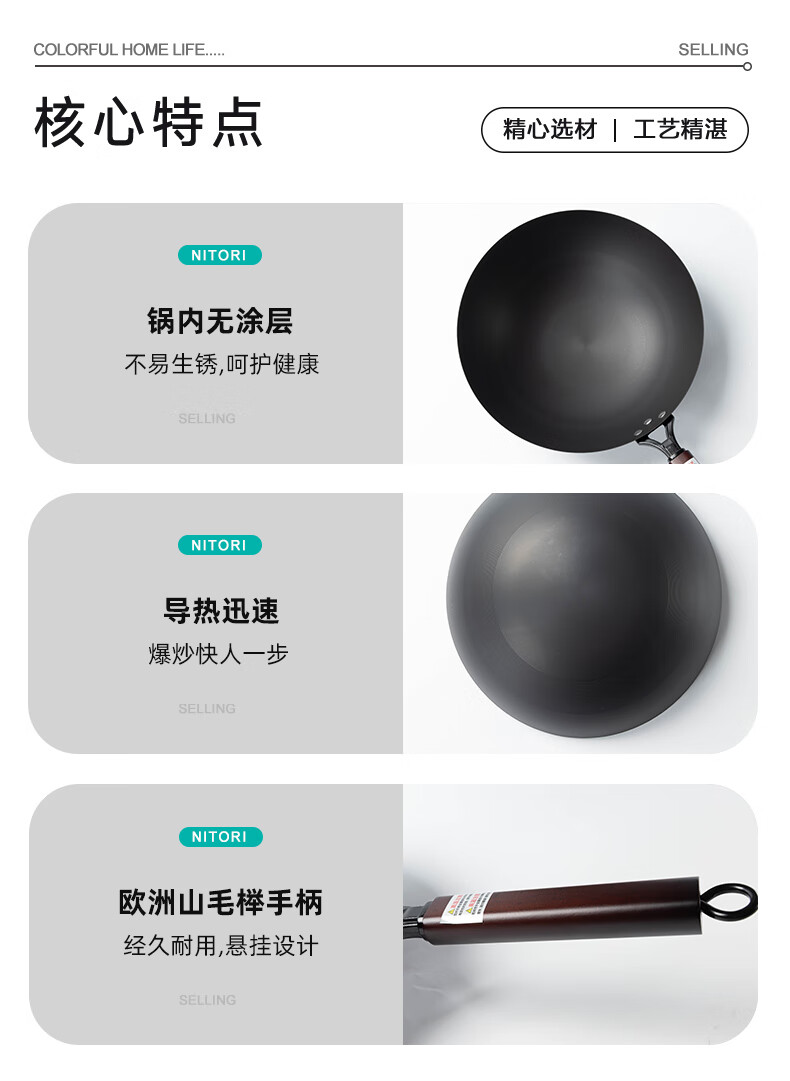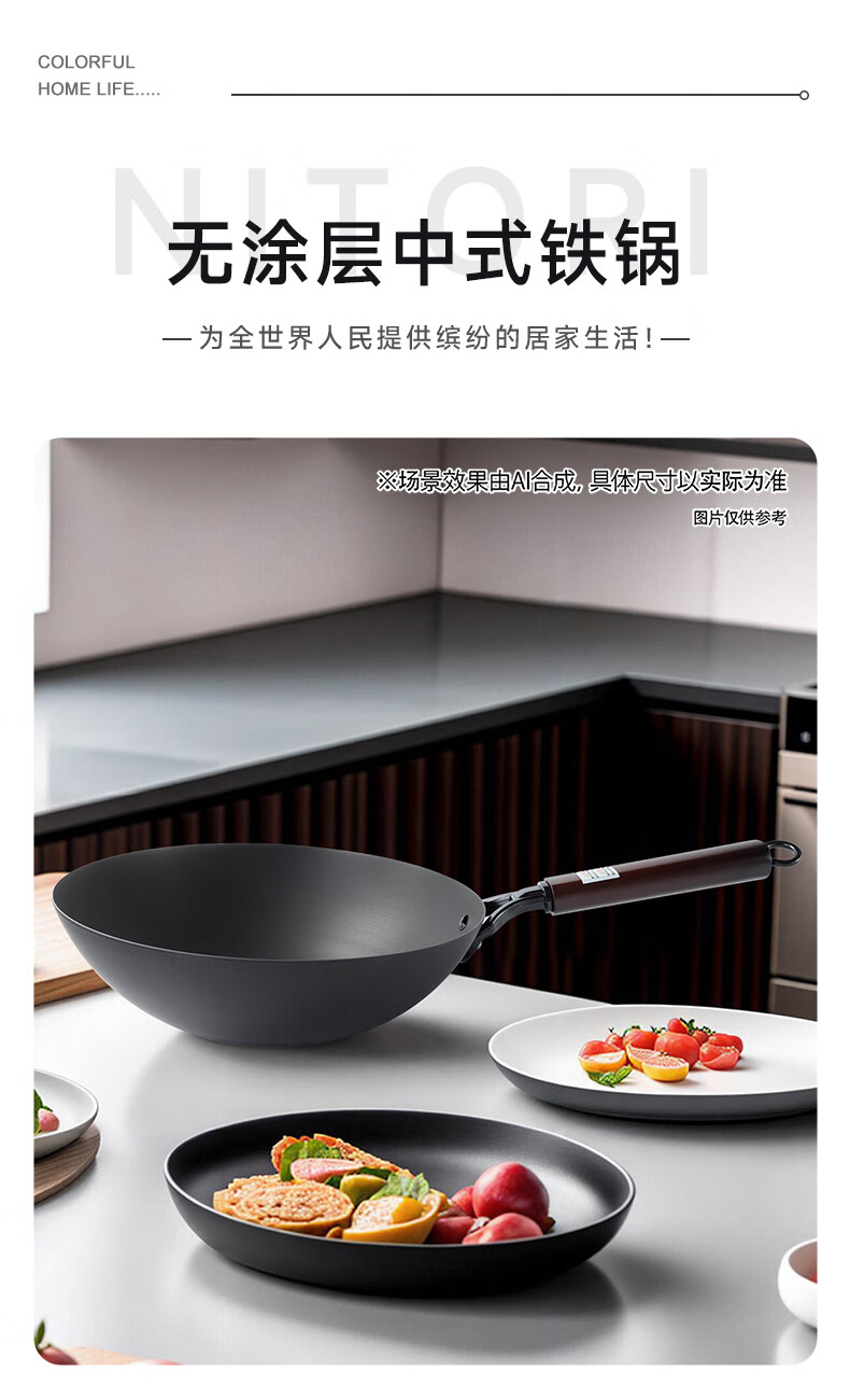 NITORI宜得利 家居 家用厨房炒菜锅不易粘燃气灶适用无涂层中式铁锅