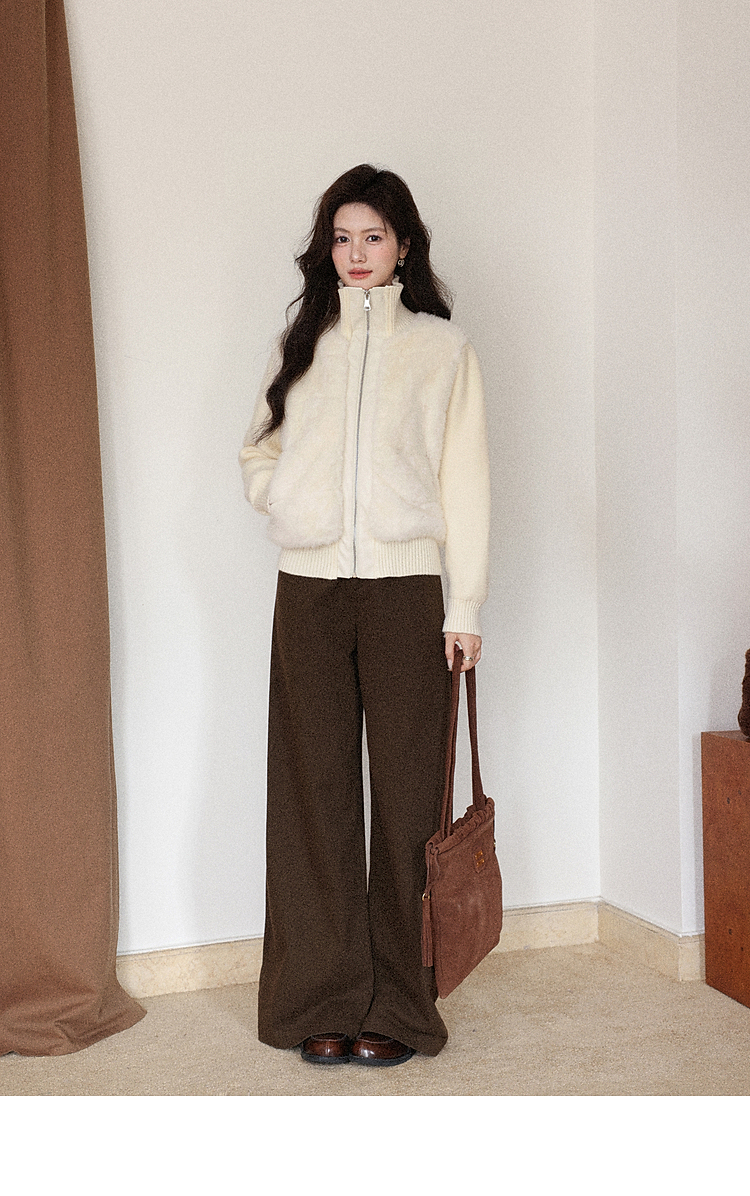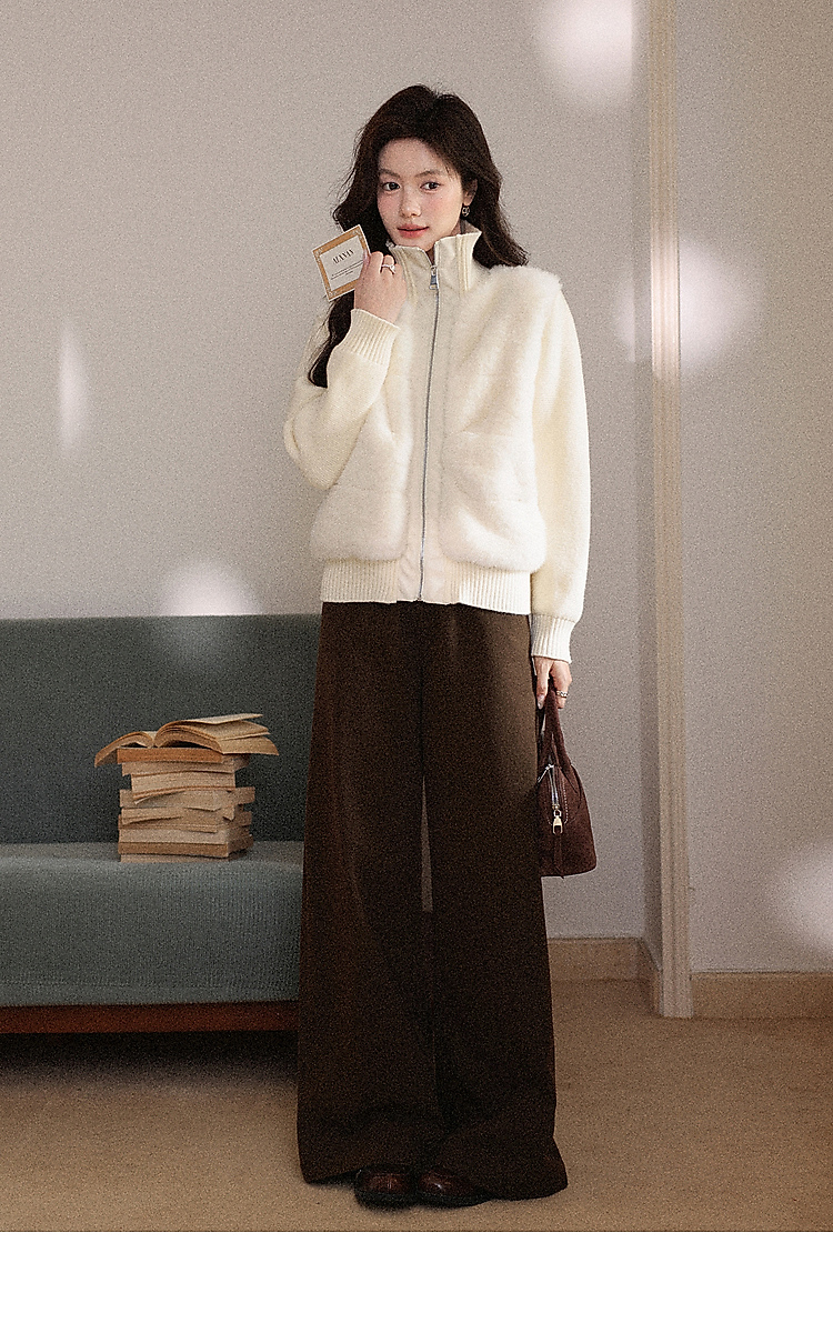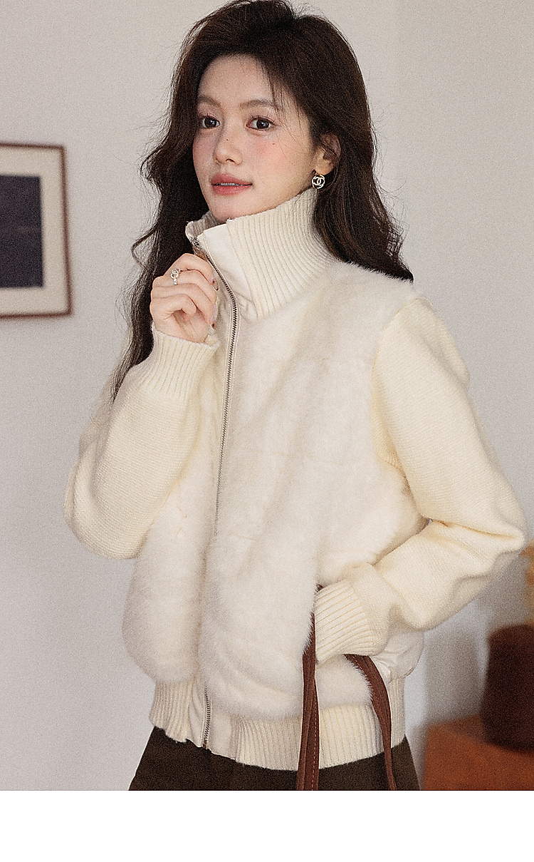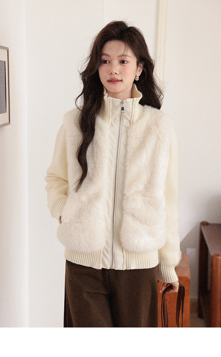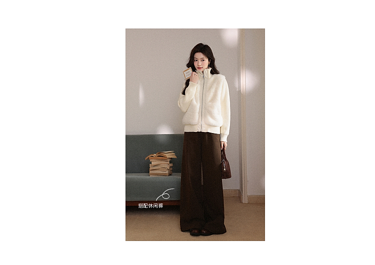 鹿向南「简绒卓然」设计感杏色短毛毛外套女秋冬气质高级立领上衣