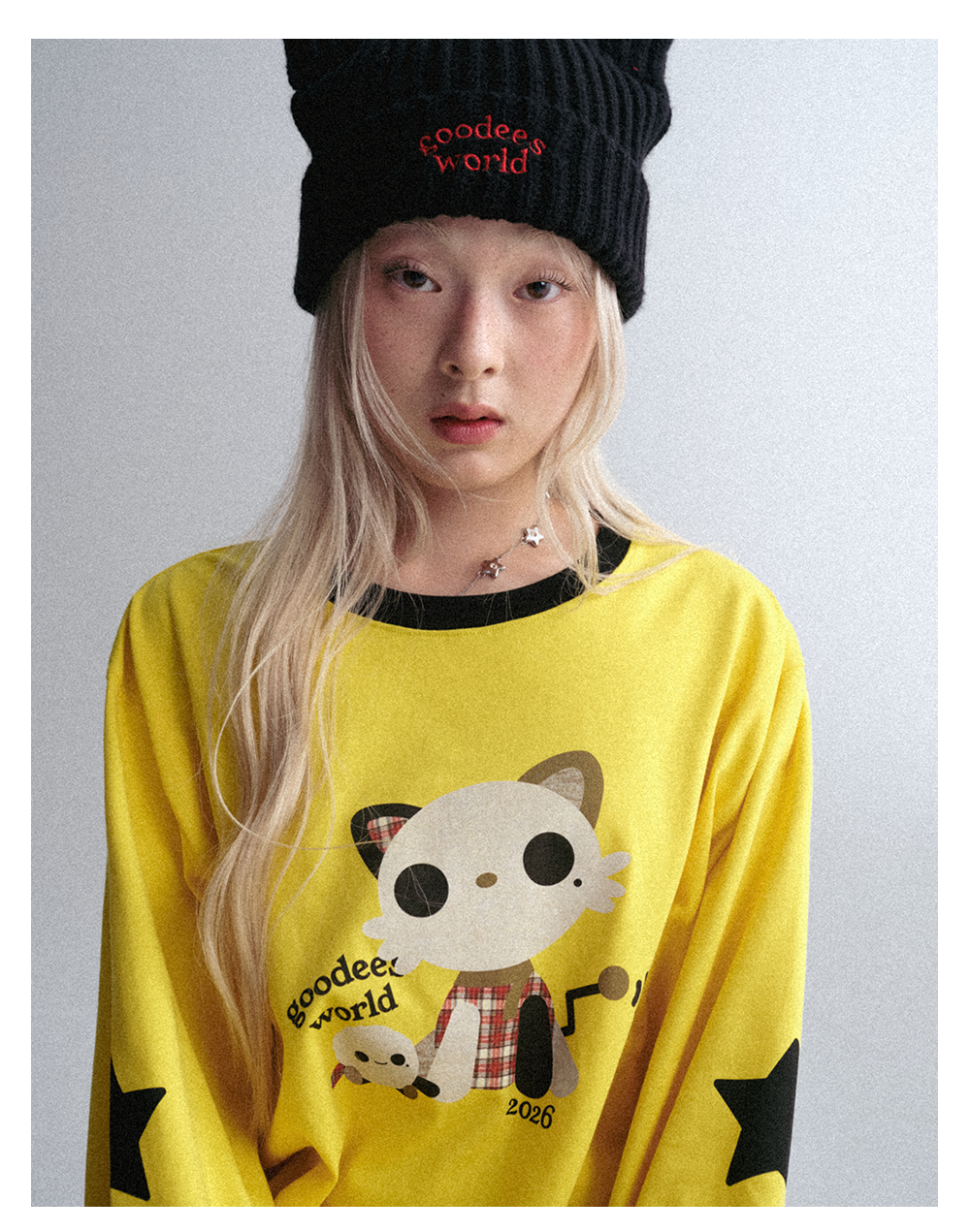 GOODBAI GOODEES 新款五角星机器小猫长袖T恤
