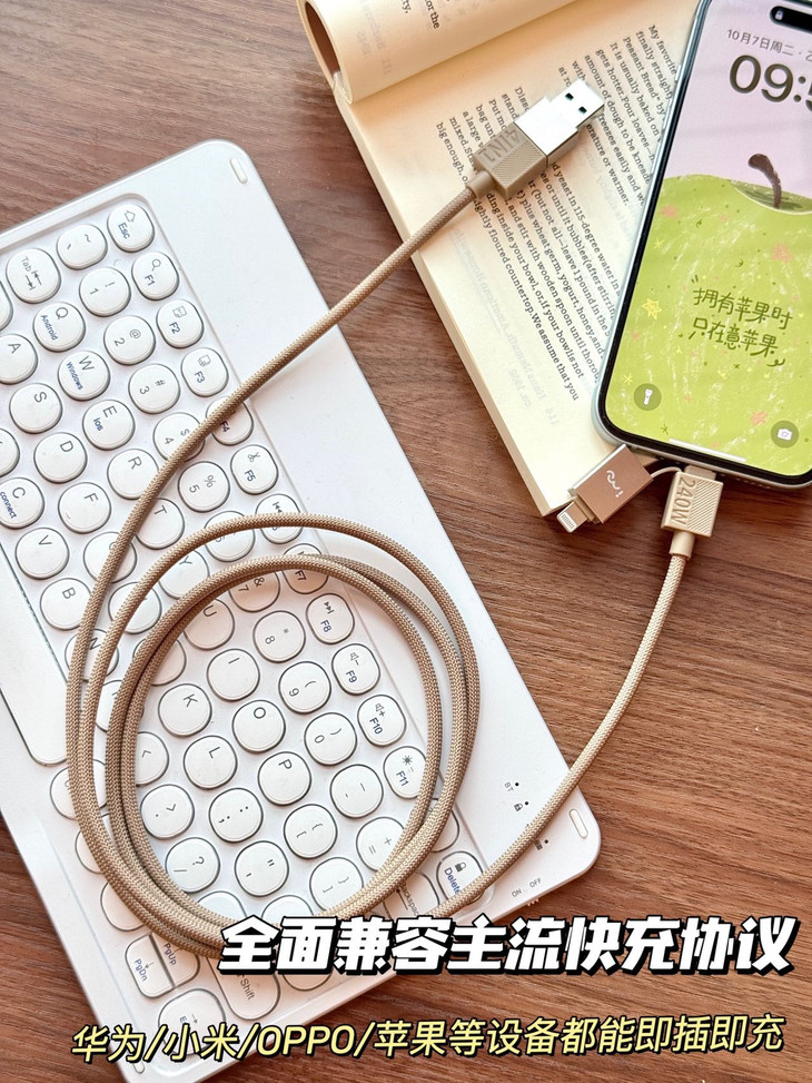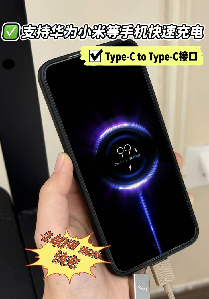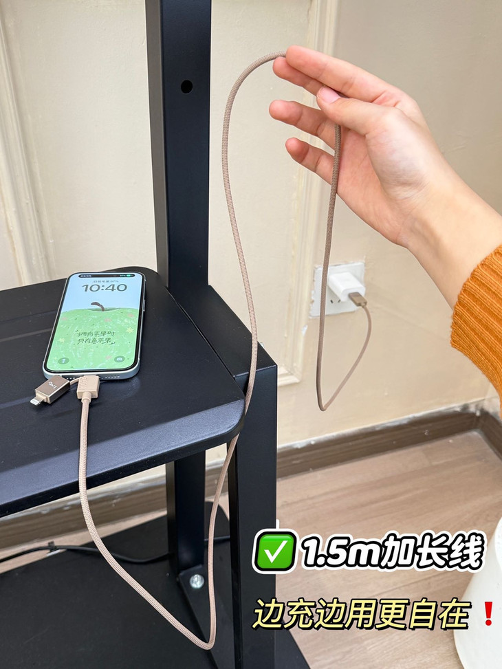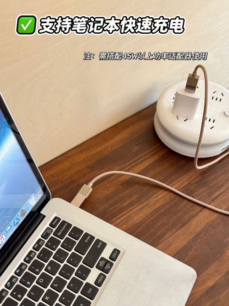 ✅多场景不挑活❗️一根搞定所有,充电不用备多线 这根线远不止充手机这么简单,不管是日常用、出门带还是户外用,它都能hold住,彻底告别“备一堆线”的麻烦: 🔸居家场景:手机、平板、耳机能一起充,智能手表、蓝牙音箱等小数码也能适配,不用抢插座,桌面再也不会线缠线 🔸办公场景:笔记本插线就能补电(240W功率够用),还能边充边传文件,导资料不用额外找数据线,办公更顺畅 🔸出差出行:带一根就够,充设备、传数据两不误,背包不用塞多根线,轻便又省心 🔸车载场景:插车载充电器,能给手机、行车记录仪充电,开车导航、记录行程都不缺电 🔸户外场景:露营时给手电筒、露营灯、蓝牙音箱补电,小设备续航有保障,户外用着更安心