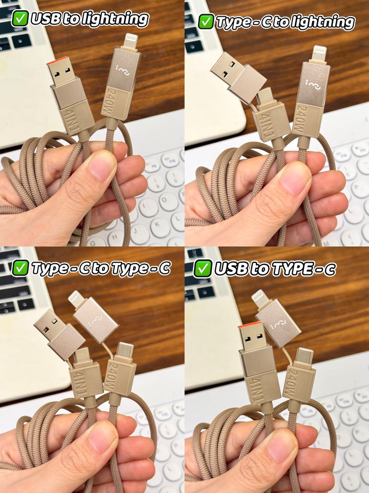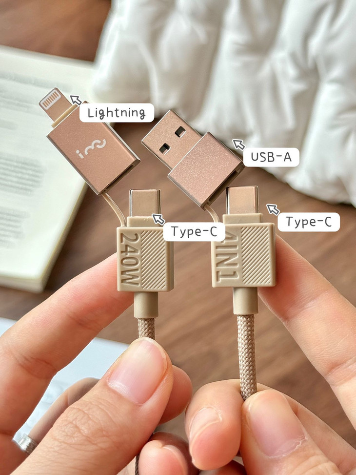🏆品牌独家承诺:一年内质量问题免费换新❗️ ✅四接口通吃:Lightning/Type-c/USB,苹果全系列(8-17系列)以及所有安卓品牌机型、平板、笔记本电脑以及周边设备统统适用❗️ ✅Type-C接口支持240W快充,最快30分钟充满,同时兼容华为/小米/OPPO/VIVO/荣耀等品牌120W/100W/66W/40W/22.5W快充/闪充,充电/传输数据两不误❗️ ✅1.5米加长设计,沙发床头桌面随意放,不受插座限制 ✅10000+次弯折测试,加固耐用,接头抗弯折,耐拉扯更安心,品质保障,加粗铜芯,抗拉耐磨❗️