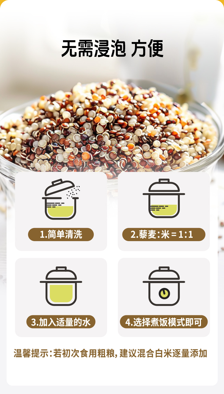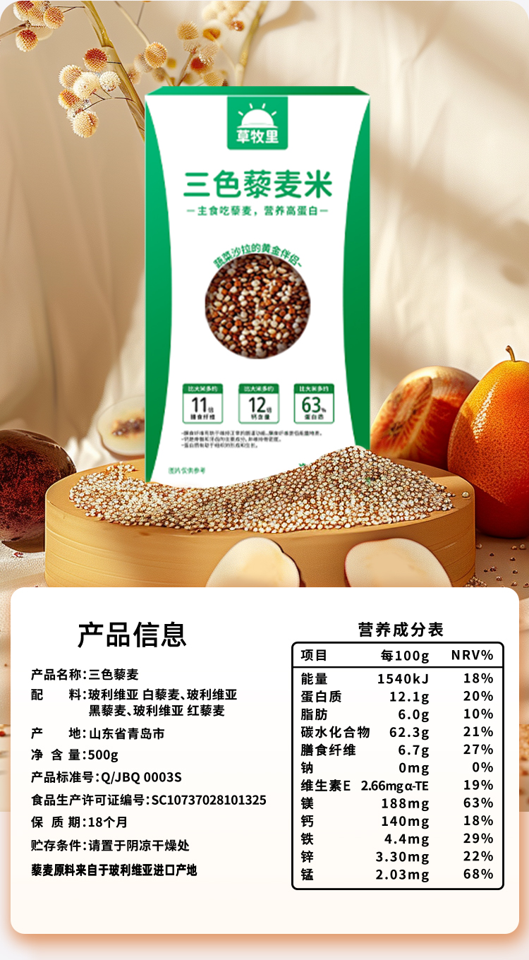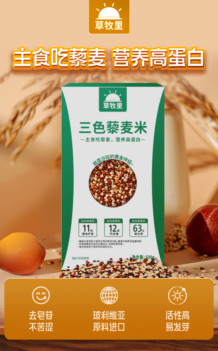 【去皂苷不苦涩】草牧里 三色藜麦 500g*2盒 芽白嫩长粒粒饱满
