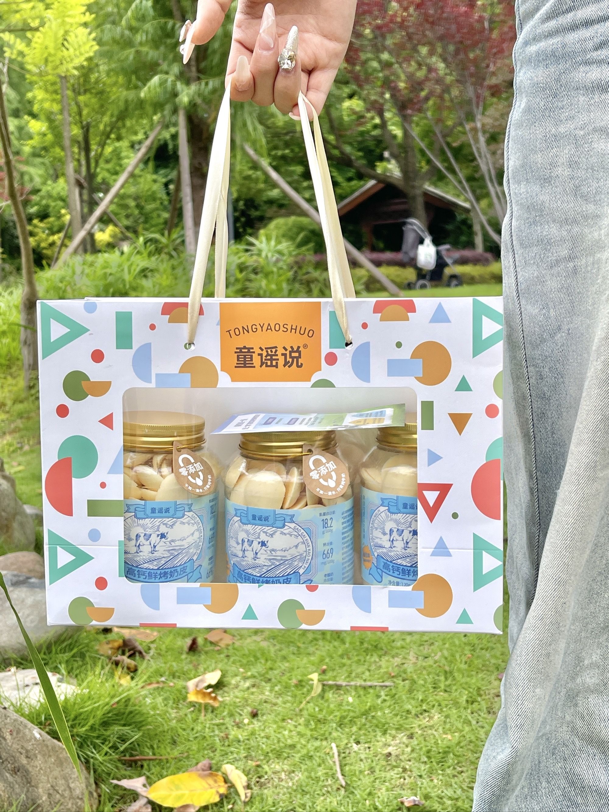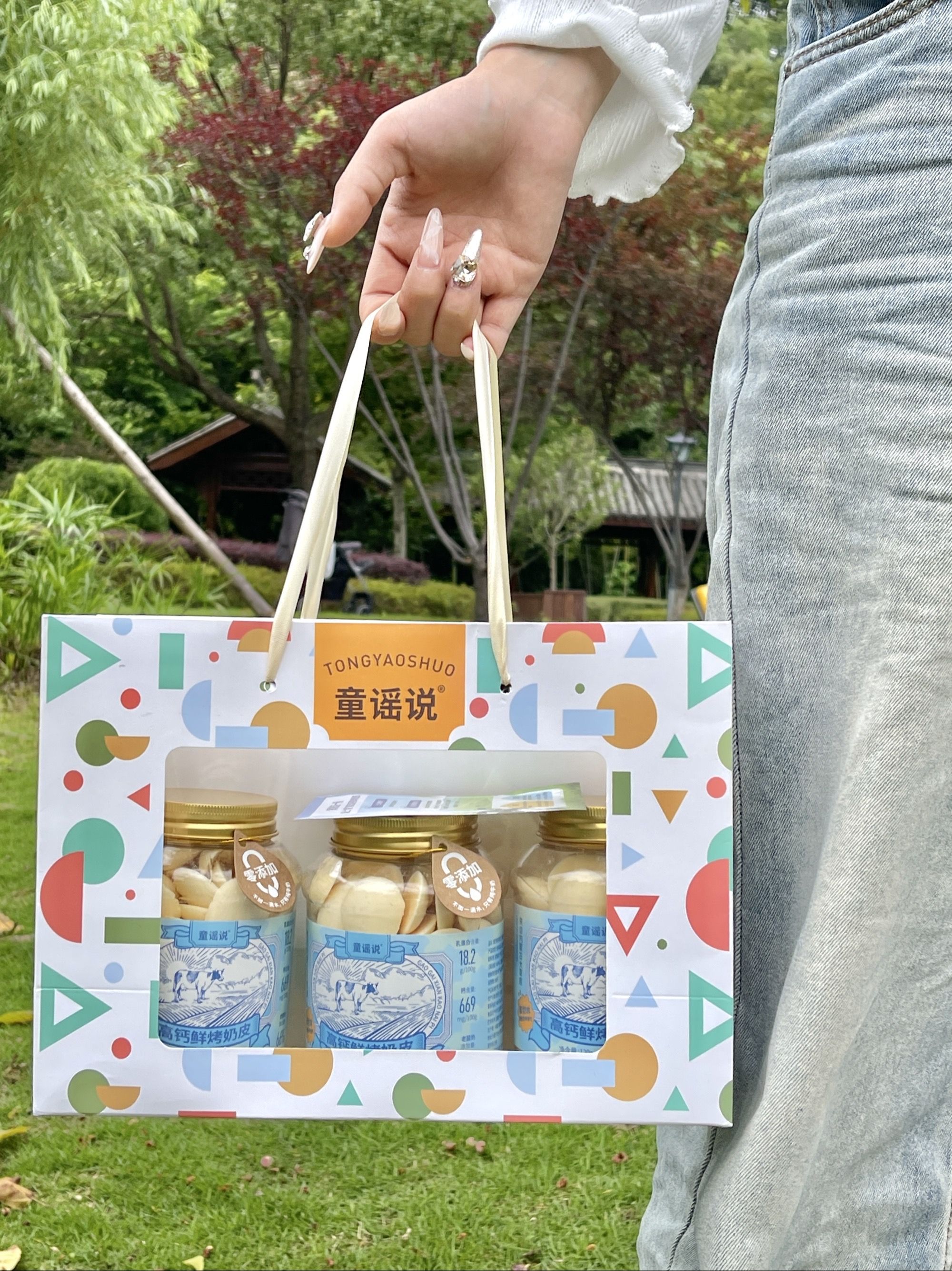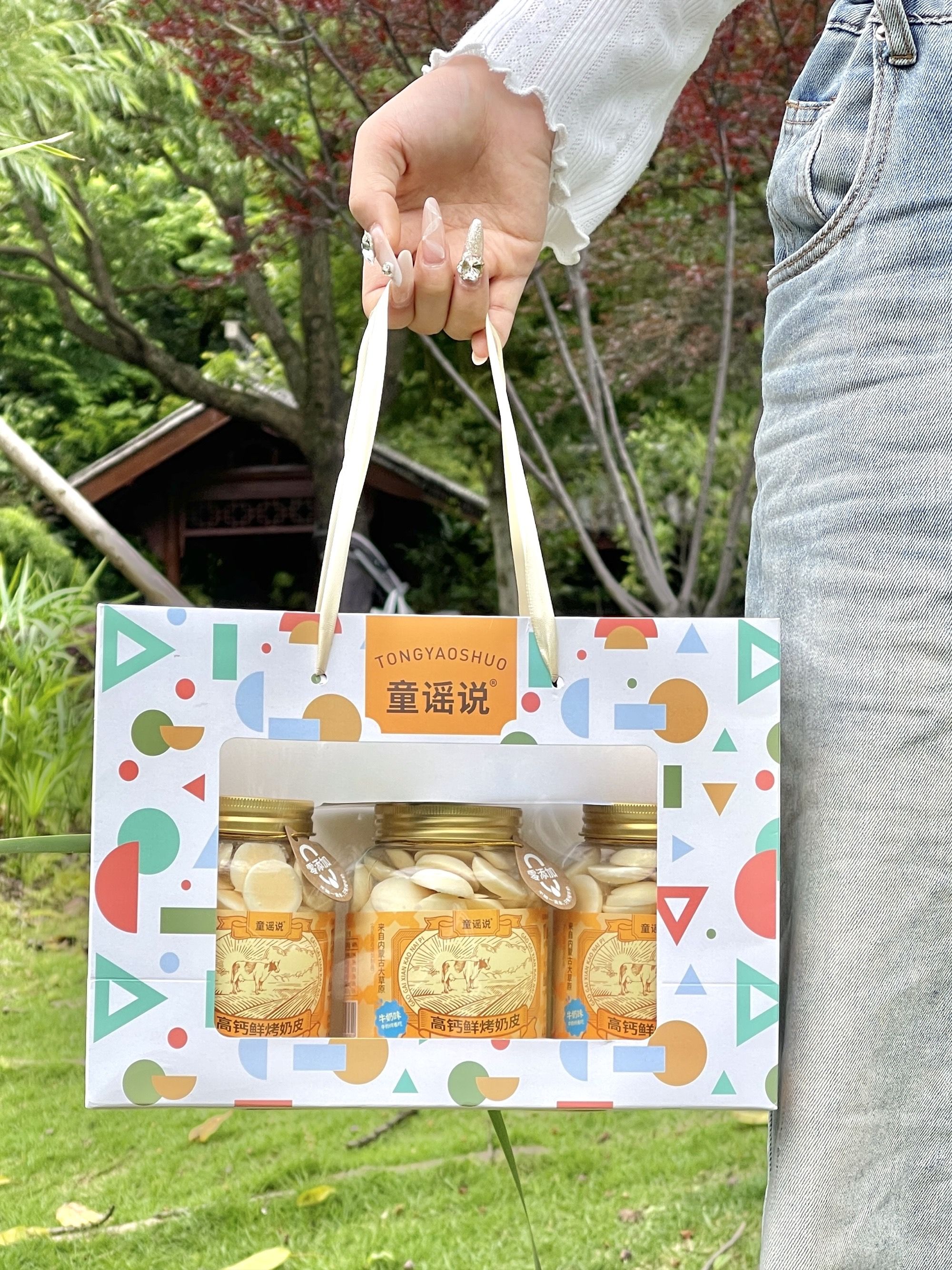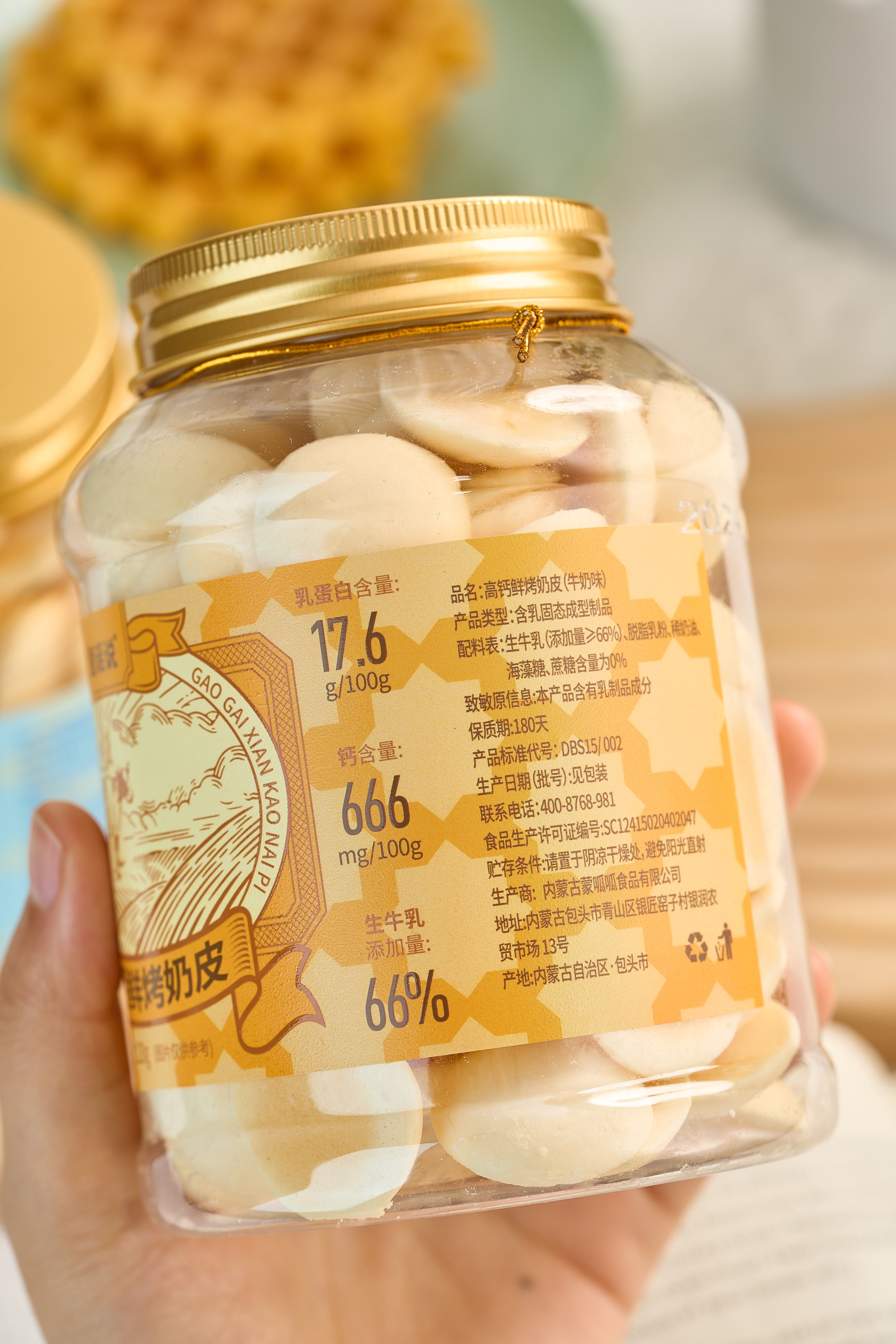 【品牌名】童谣说 【产品名称】高钙鲜烤奶皮(酸奶味) 高钙鲜烤奶皮(牛奶味) 【规格(口味明细写清楚)】 酸奶味120g*2罐 牛奶味120g*2罐 酸奶味120g*1罐+牛奶味120g*1罐 酸奶味120g*2+牛奶味120g*1罐+礼袋 酸奶味120g*1+牛奶味120g*2罐+礼袋 酸奶味120g*3罐+礼袋 牛奶味120g*3罐+礼袋 【是否有赠品】/ 【市场零售价】59.9-79.9 【团购价】49.9-69.9 【生产日期】2024.5 【保质期】180天 【储存方式】请置于阴凉干燥处,避免阳光直射 【食用方法】开罐即食 【产地】内蒙古 【发货地】浙江温州 【发货快递】申通、极兔随机 【发货时效】72小时 【加运费地区】新疆西藏+15元/组 【不发货地区】/ 【售后标准】无理由拒签或拦截快递需扣除相关费用【普通地区扣4元,新疆西藏扣15元】;(已产生的寄出运费不退还) 因口感不喜欢,品相不好,储存不当不售后不赔付 外箱轻微压损,不售后处理,严重破损或漏发请及时拍外箱面单图以及内件反馈至客服处,根据实际情况判定是否补偿,补发或退款。 【售后须知】 1.不支持七天无理由的商品,无质量问题不售后。 2.支持七天无理由的商品,如需退货,请在签收后7天内提供退回物流单号,进入售后流程,否则将不予以受理退货! 3.商品到货请第一时间开箱检查,如有质量问题请在签收24小时内产品+快递面单合照联系客服处理(无图不售后),超过24小时不予以处理哦! 4.关于退单:货物发出后拦截会产生拦截费用,快递发出,拦截拒收所产生的费用由客户自己承担,发出后不能拦截,拒收,撤单! 5.关于赔付:因买家地址不详,有误,或者改地址的,及电话联系不上等造成的送货延迟导致物品出问题,不予以赔偿哦! 6.关于拒收:以快递慢不新鲜不想要等理由单方面拒收,卖家不承担责任,因个人原因保存不当放置时间过长不在赔付范围! 哦!!! ★下单即为承认以上条款,请仔细阅读谨慎下单,感谢!