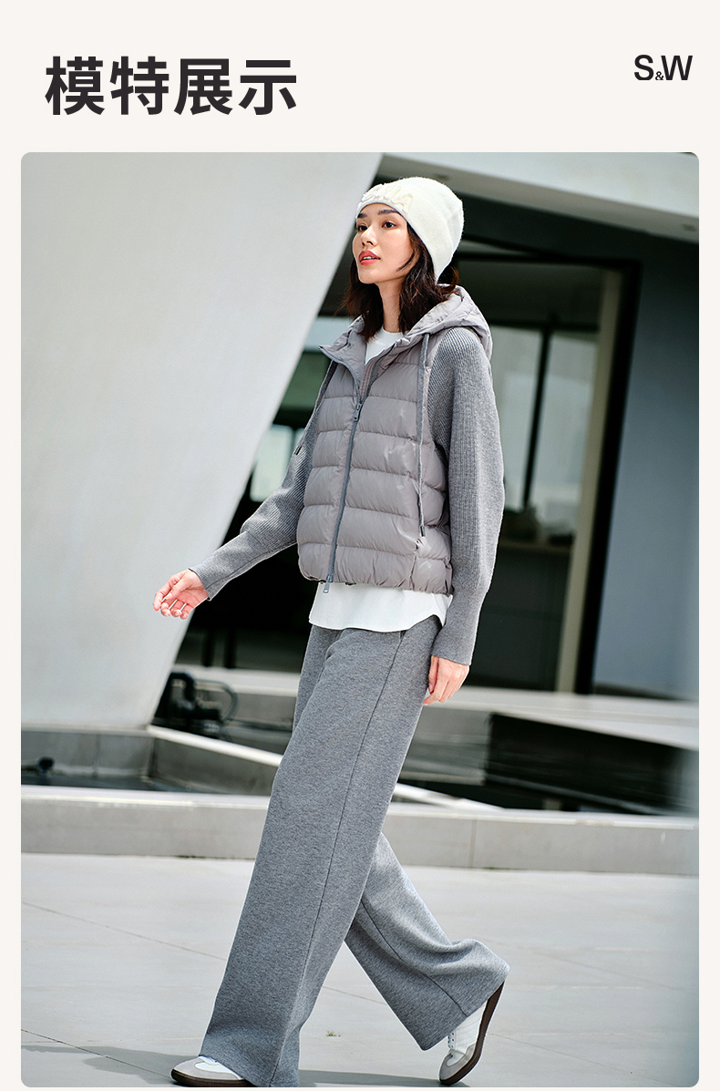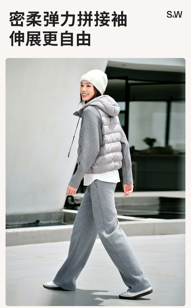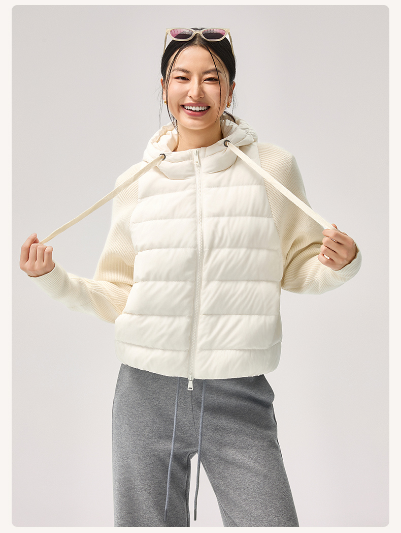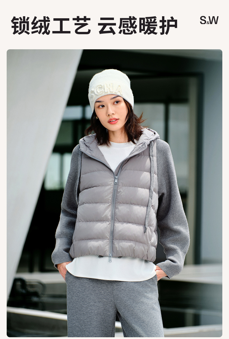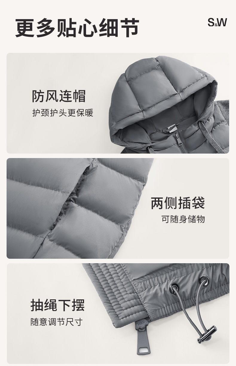 【sw速惟】拉链女拼接正肩袖连帽薄款女装女士百搭宽松羽绒服防泼水1320