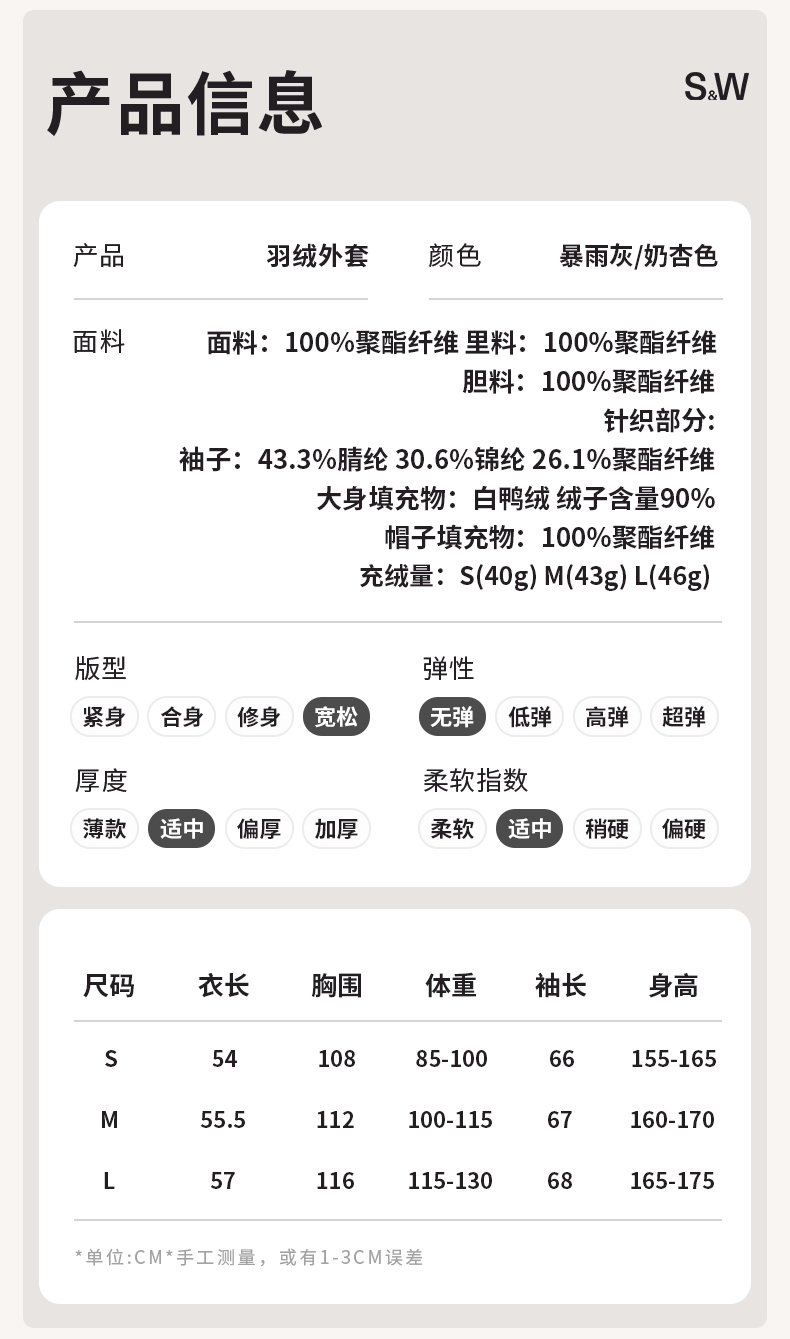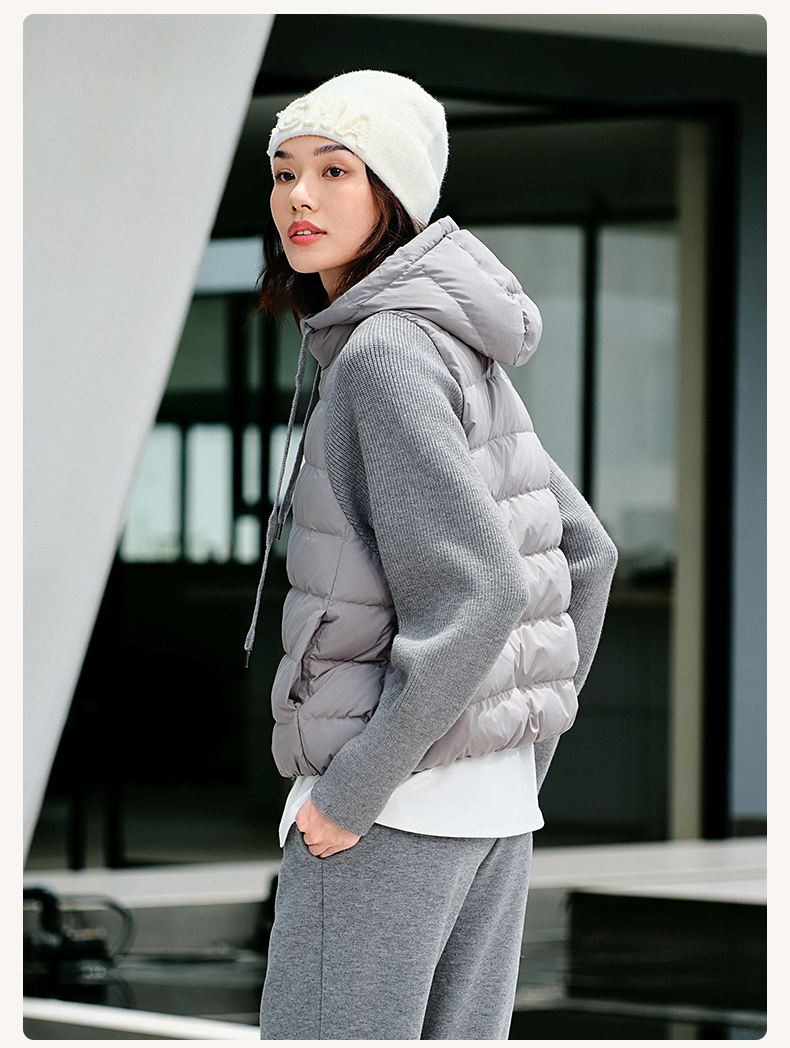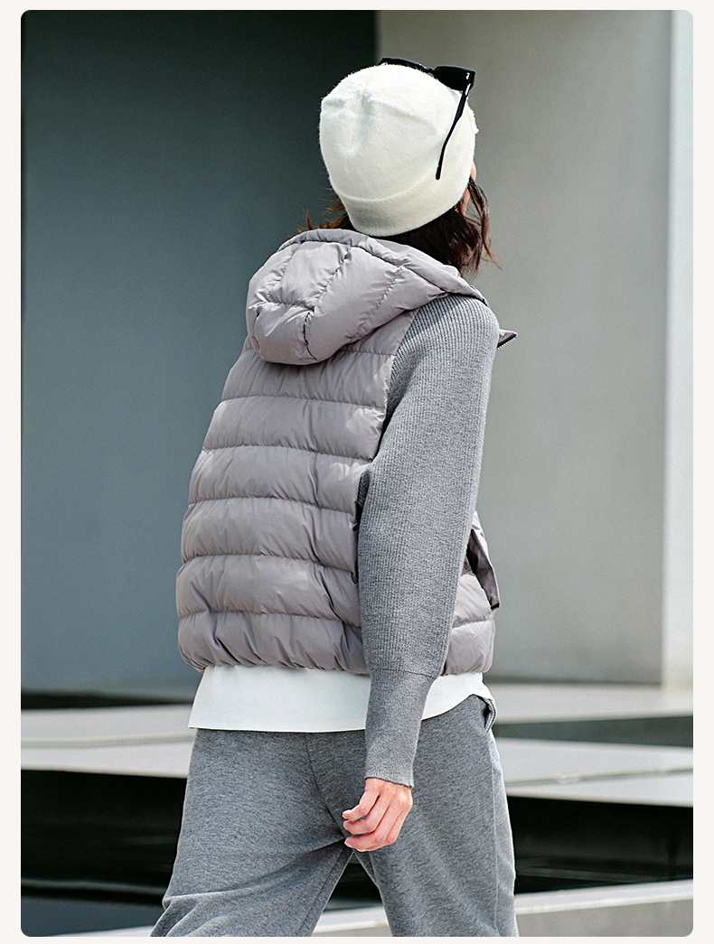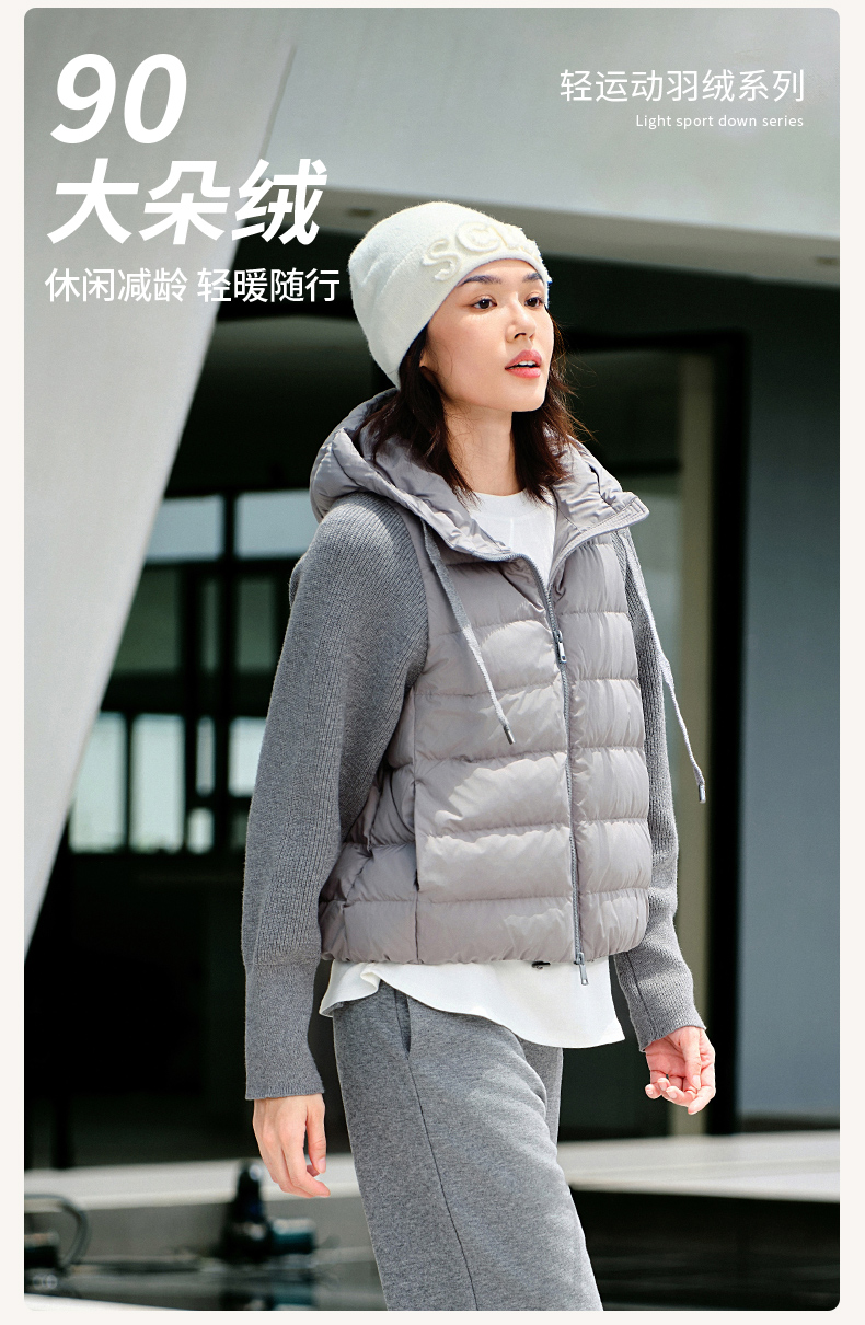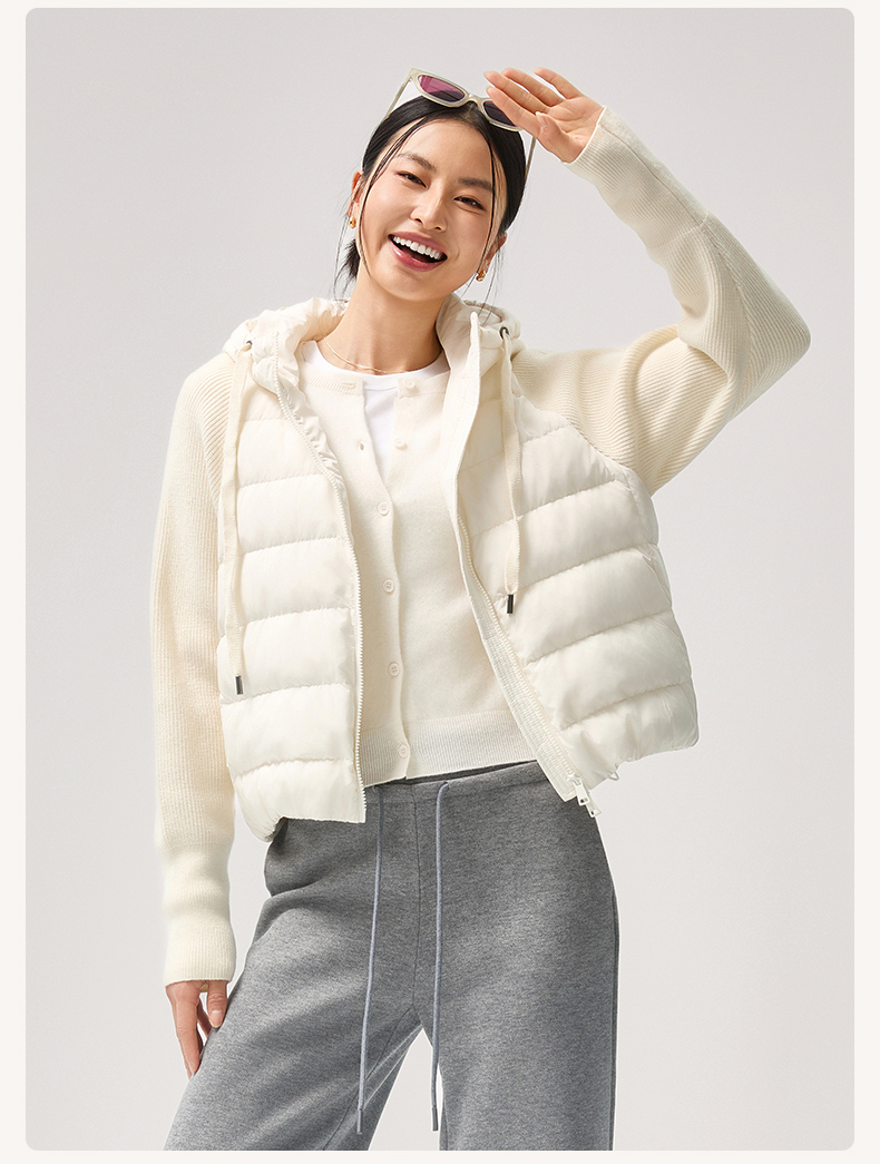 【sw速惟】拉链女拼接正肩袖连帽薄款女装女士百搭宽松羽绒服防泼水1320