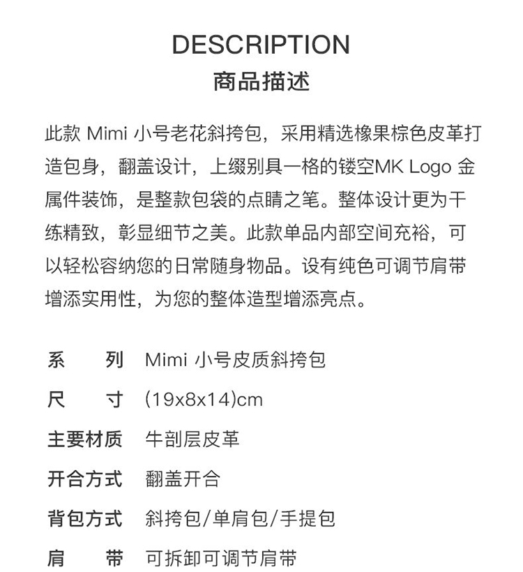 【品牌】MK Mimi 小号 Logo 金属精致单肩包斜挎女包珊瑚红
