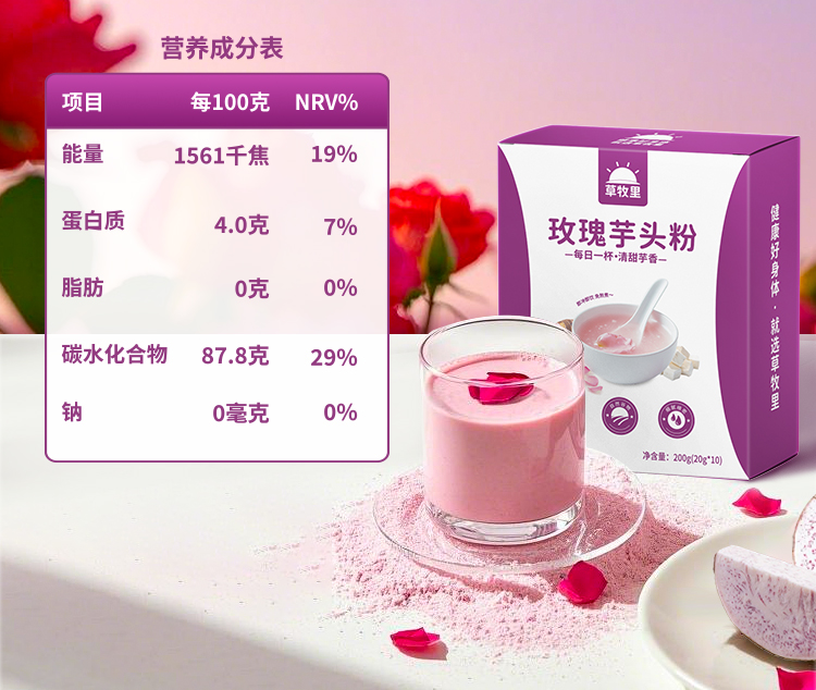 【口感香浓】草牧里 芋香花韵组合 (三花茶*1盒+玫瑰芋头粉*3盒)食之本味自然清香