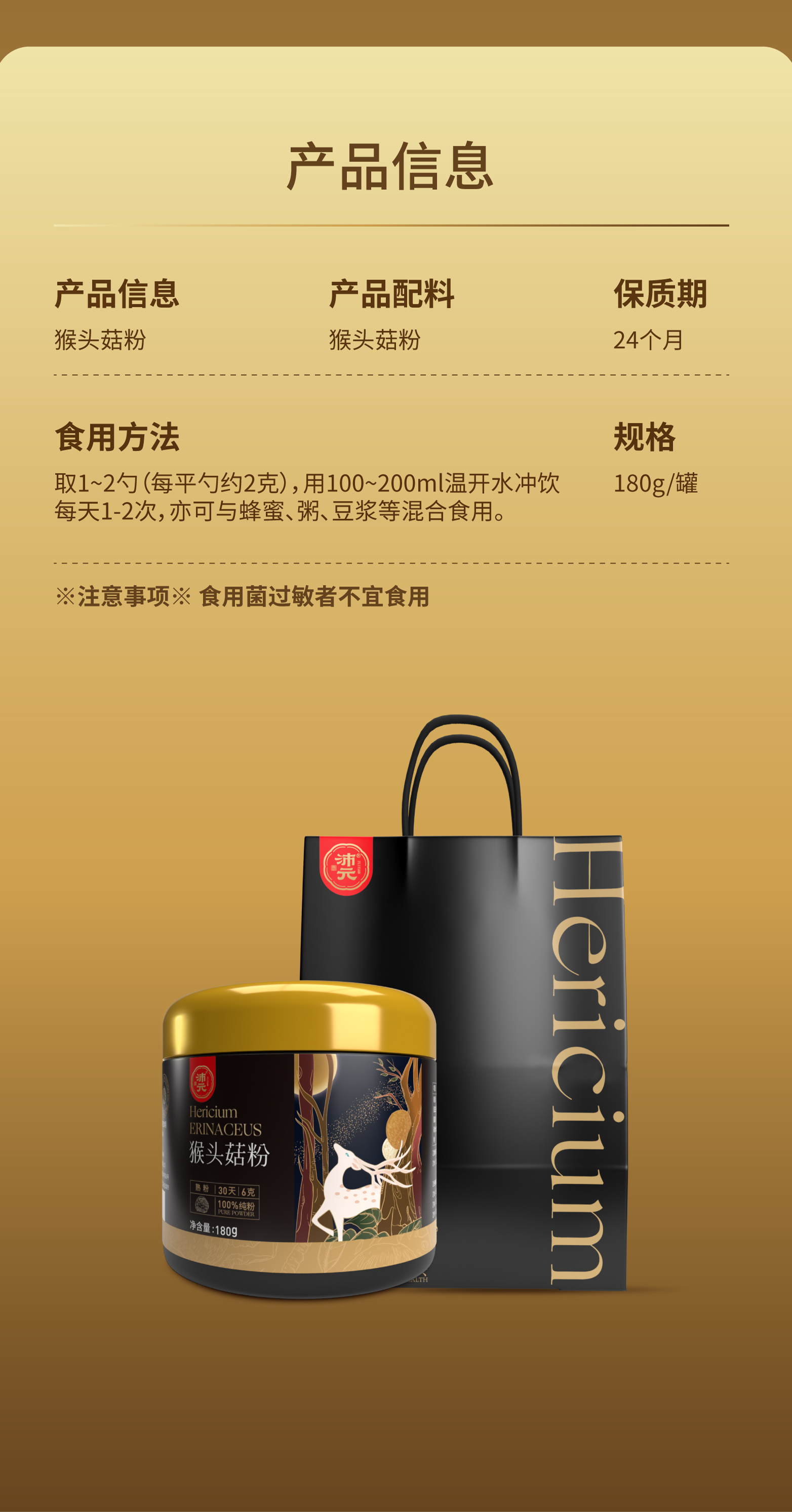 【粉质细腻】沛元 猴头菇粉 180g/罐 自然淡黄