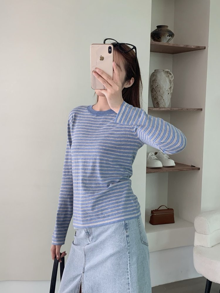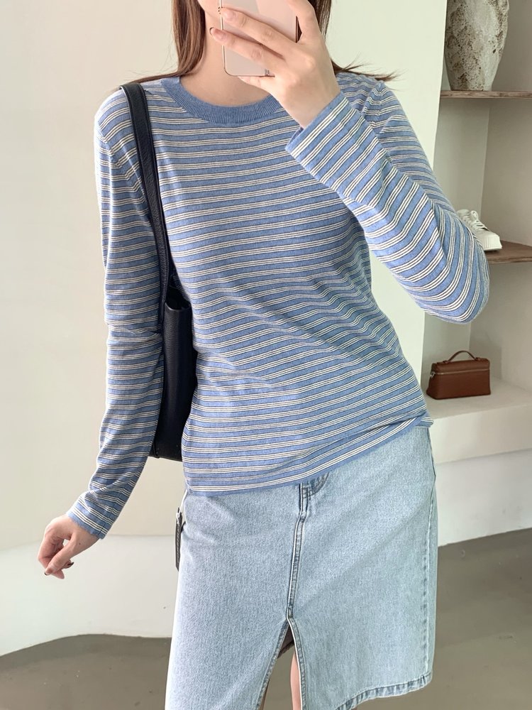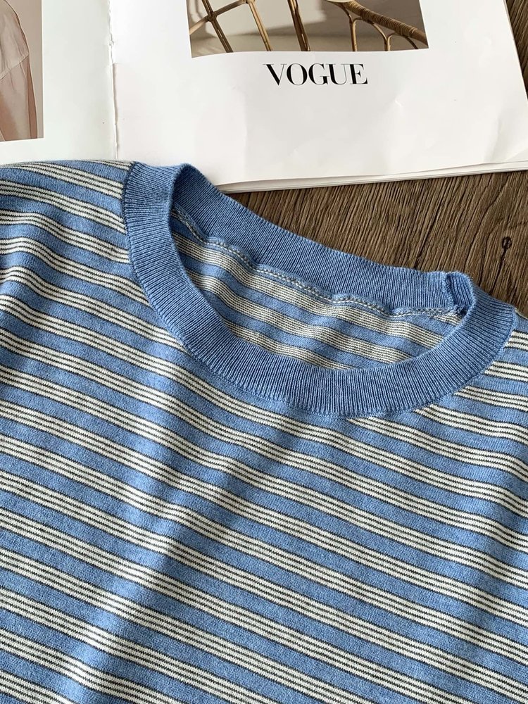 这件打底T,面料控必收!上身就不想脱下,条纹永远经典!蓬松又细腻的棉羊绒混纺纱,上身巨巨巨舒服!!是没有进行过任何水洗的自然绵密感,70%的棉和30%羊绒,棉的吸汗加上羊绒的软糯蓬松,呈现出亲肤又非常有质感,而且采用的是康赛妮2股60支超细棉绒纱线,18针针种德国stoll电脑横机,22针缝盘工艺,这样做出来的产品:衣身密实细腻、质感拉满