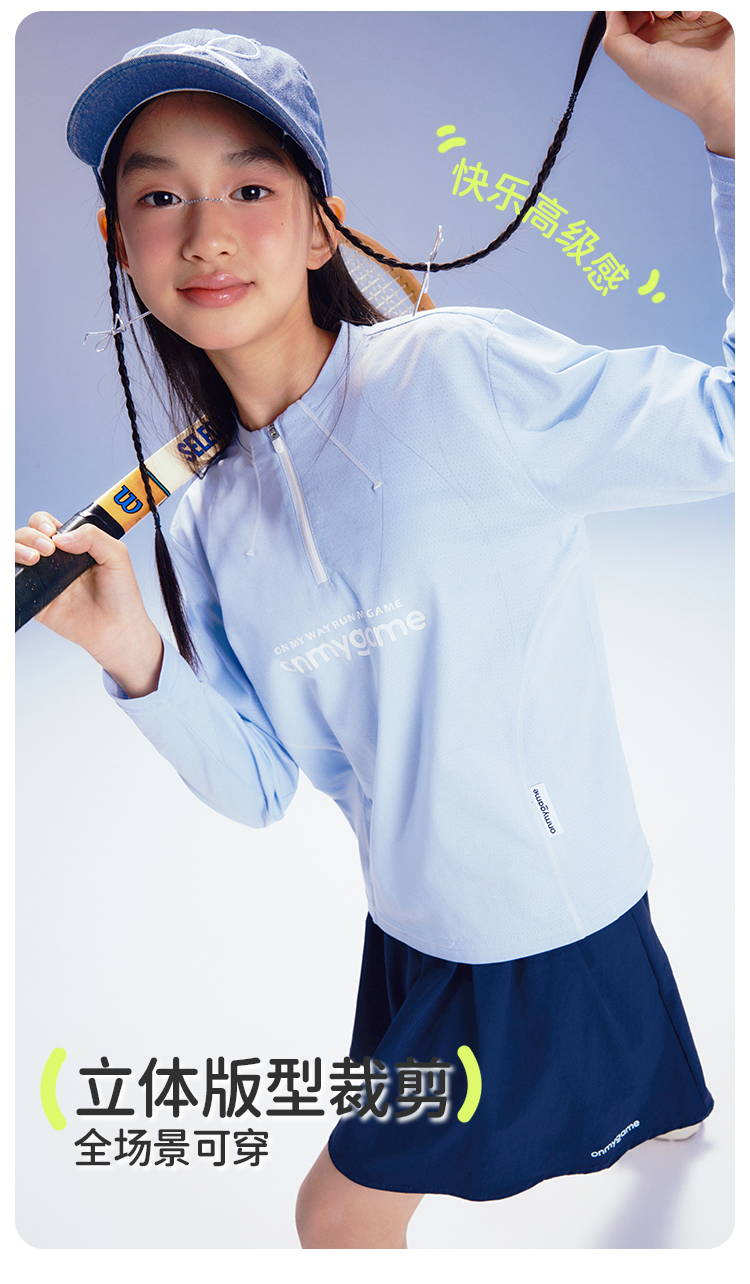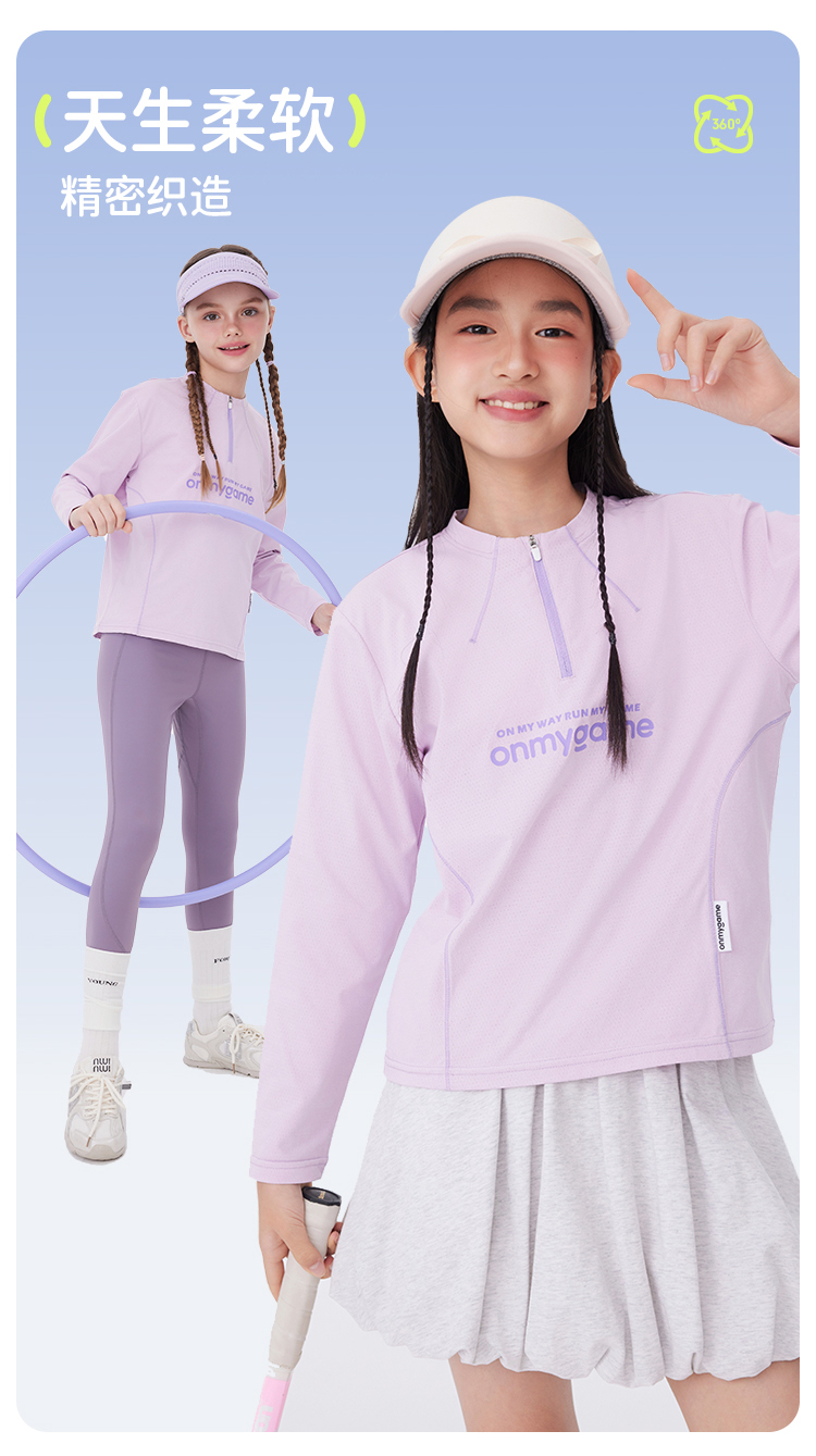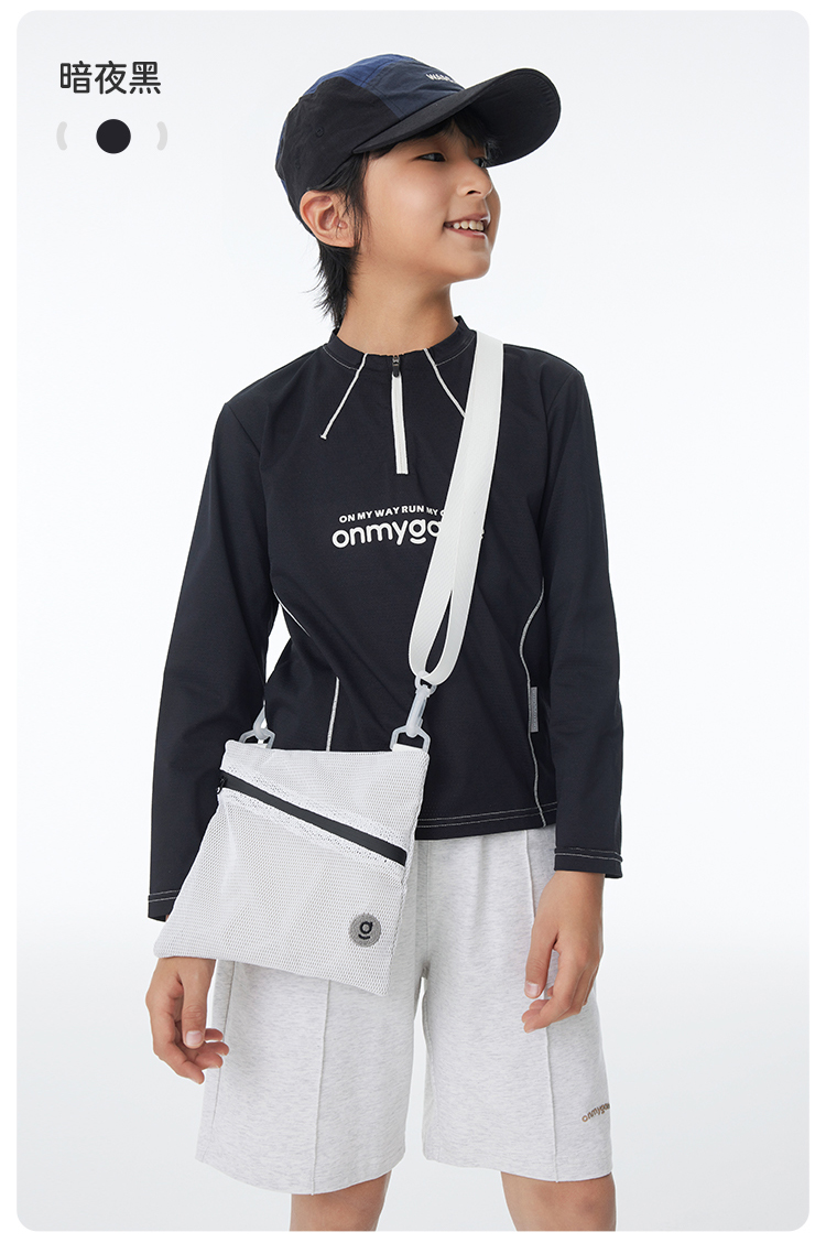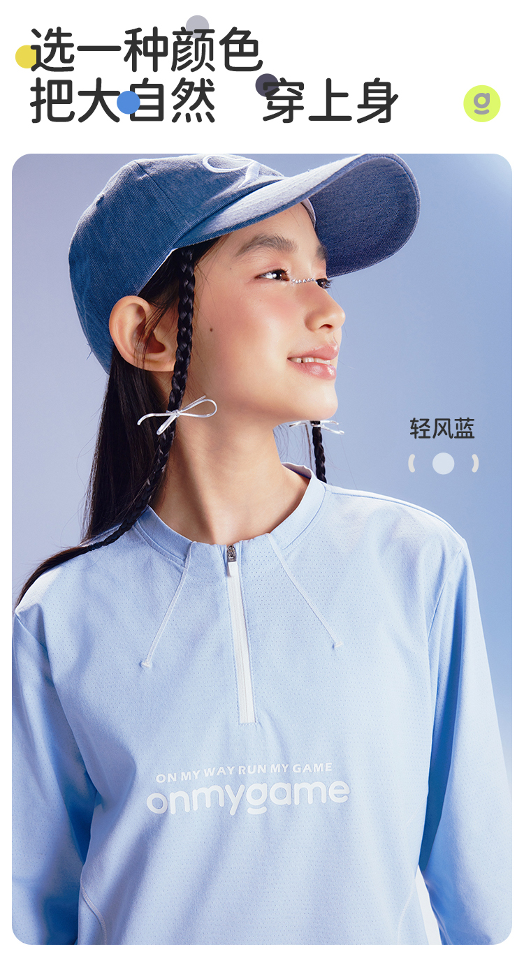 onmygame【透汽通风孔】男女童半拉链长袖T恤2025年春季新款KE20A210637