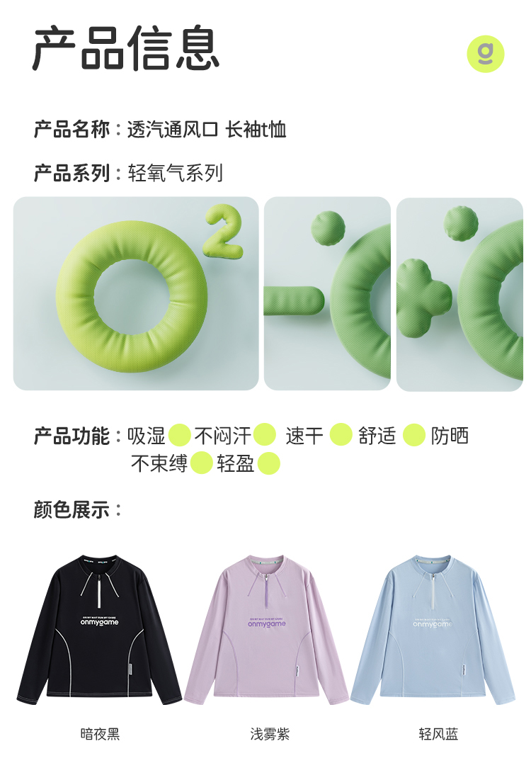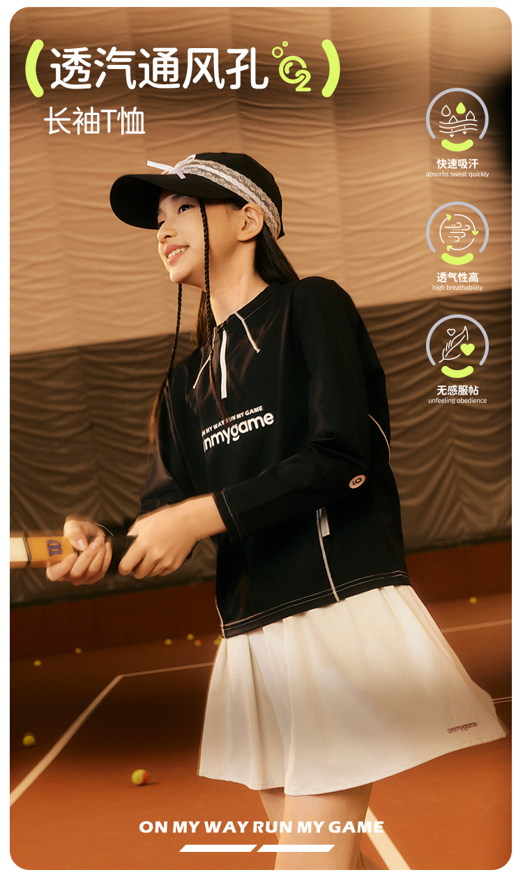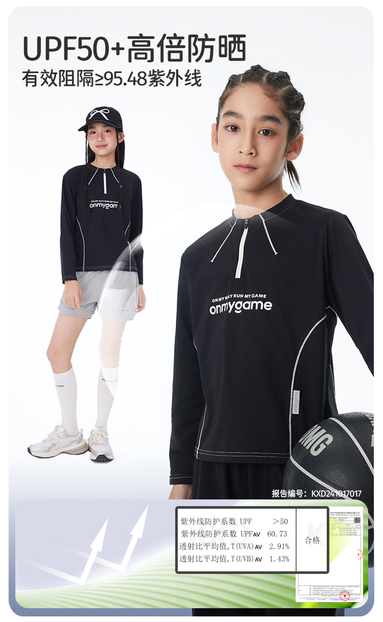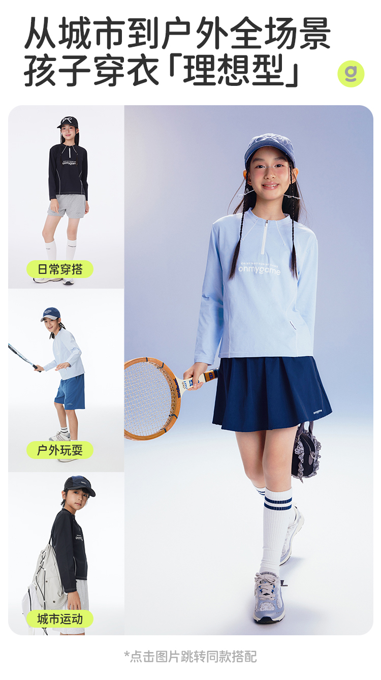 onmygame【透汽通风孔】男女童半拉链长袖T恤2025年春季新款KE20A210637
