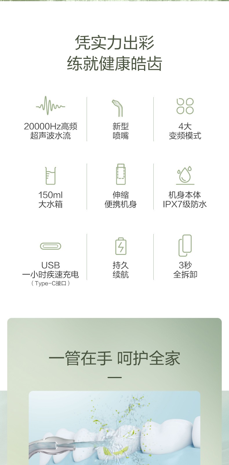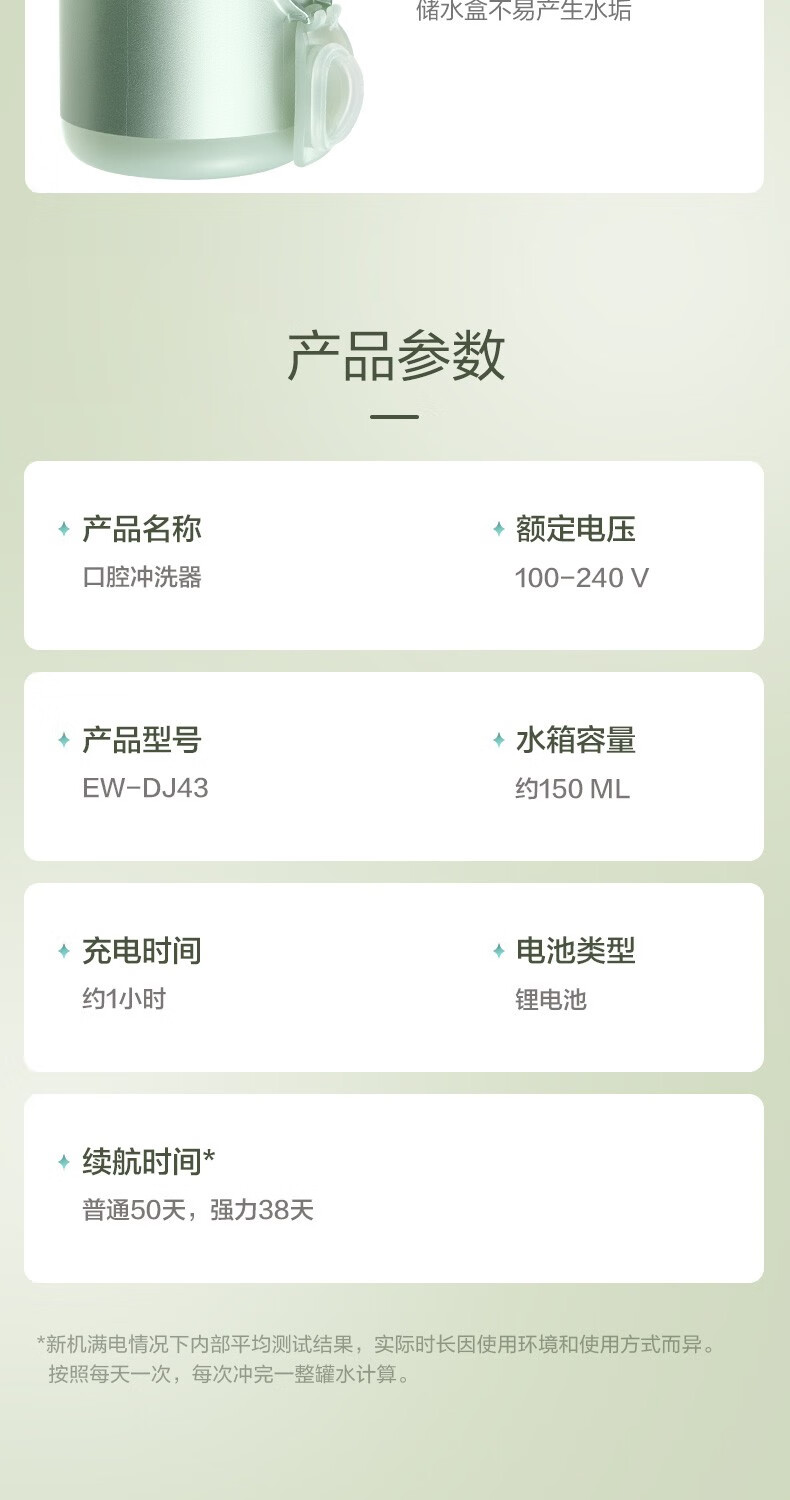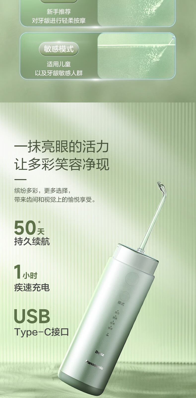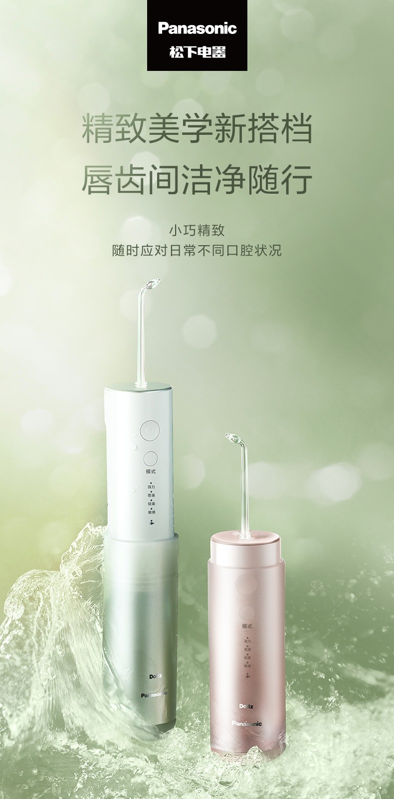 松下(Panasonic) 冲牙器家用洗牙器正畸水牙线超声波冲牙器便携式 生日礼物送女友送男友送老婆送老公 EW-DJ43