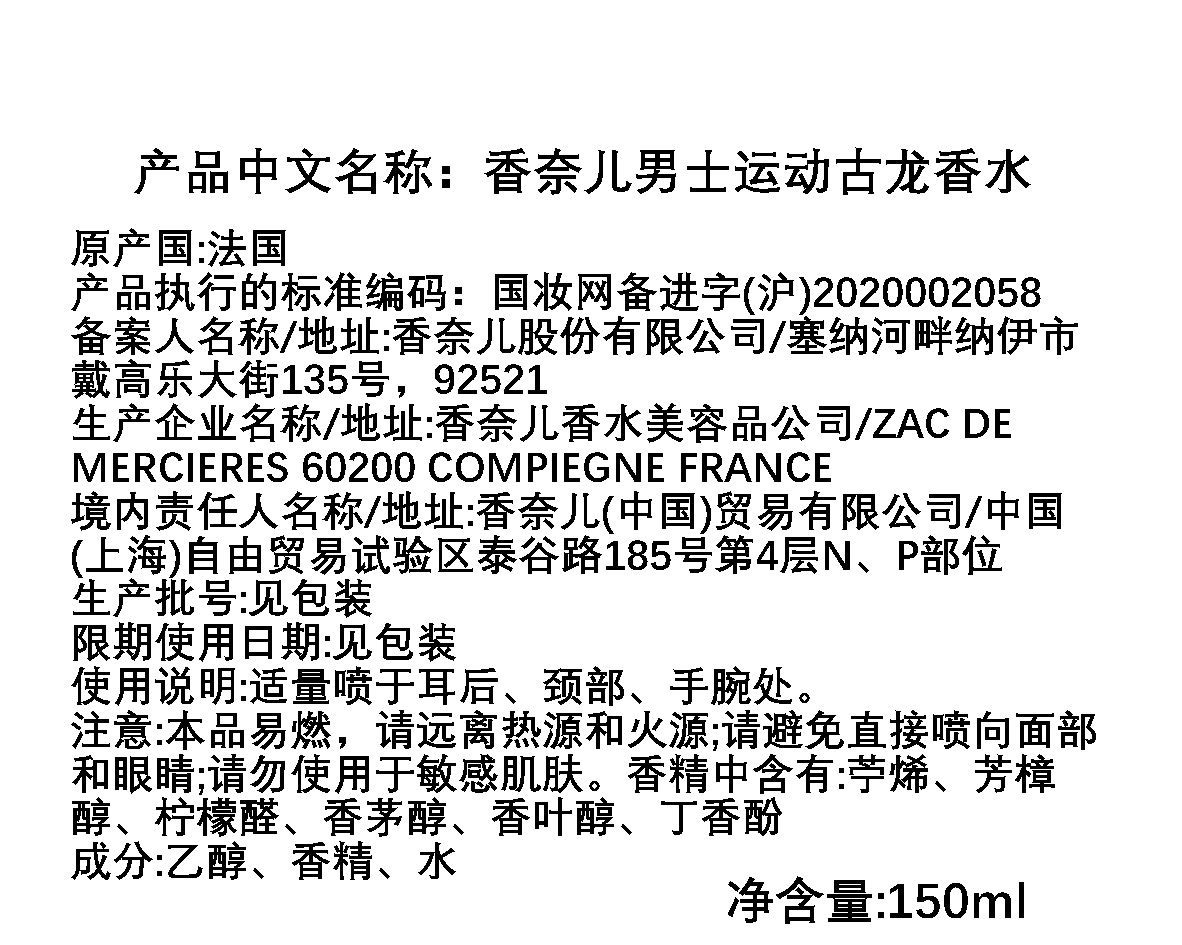 瑕疵香水-Chanel香奈儿 魅力男士运动香水 古龙版