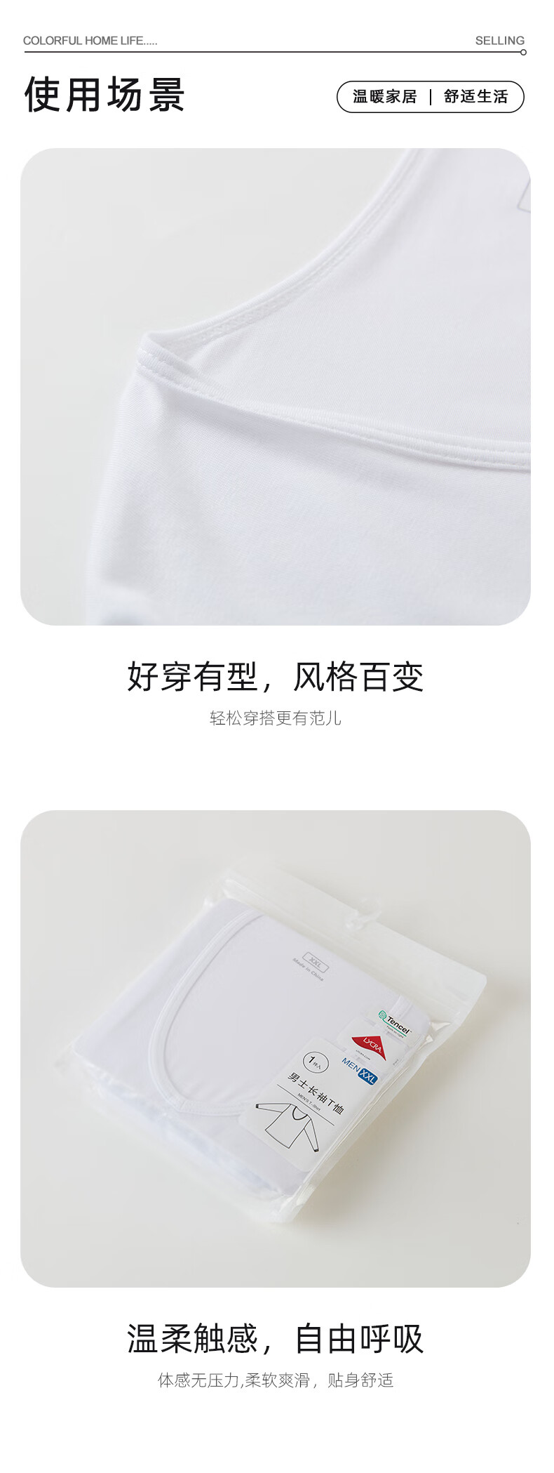 V领透气纯色上衣T恤宽松 男士长袖 莫代尔莱卡