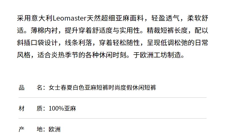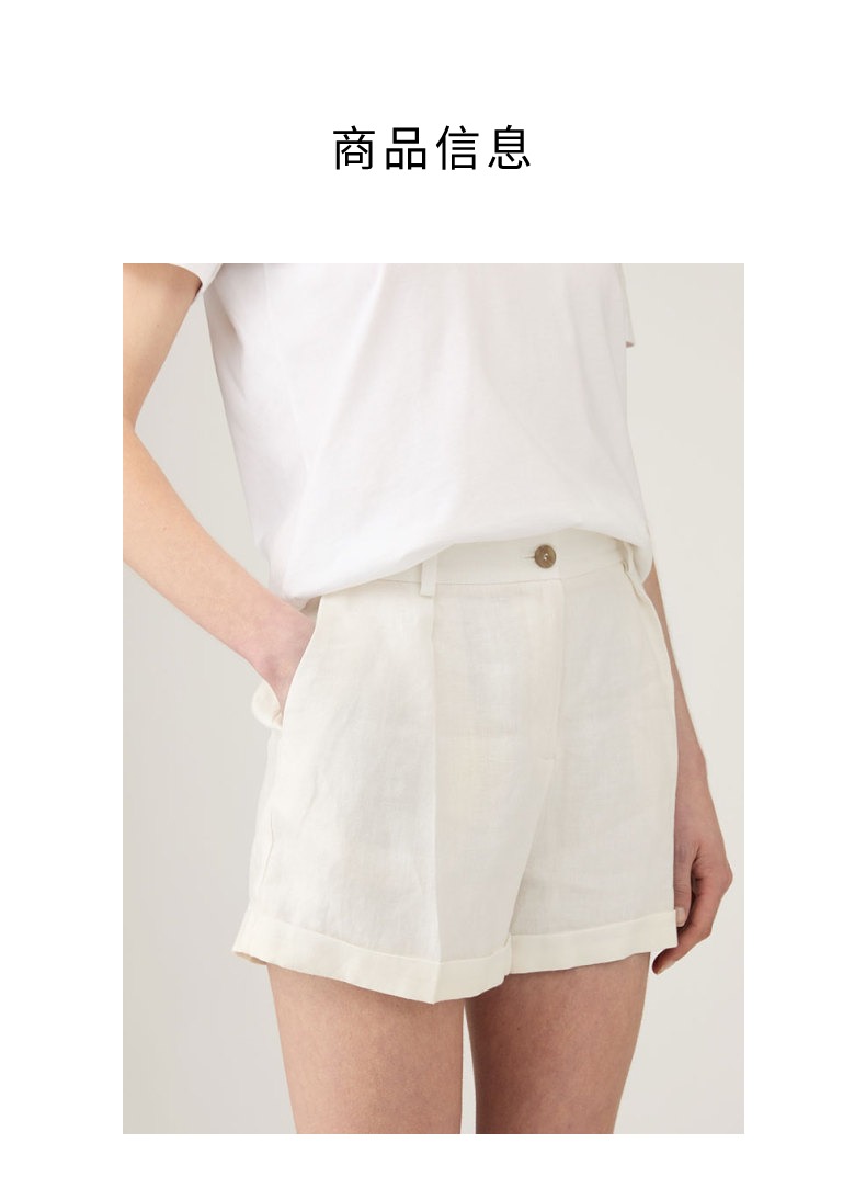 【亚麻系列】SUNSPEL 女士春夏白色亚麻短裤时尚度假休闲短裤