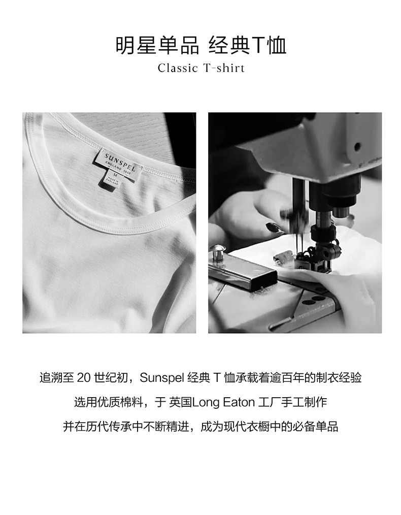 - Sunspel 成立于 1860 年,是具有现代气息的创新英国品牌,专注为客户提供耐穿不过时的基础款,同时满足摩登品味。服饰采用优质的、可追本溯源的原材料 —— 棉、亚麻和羊毛制作。