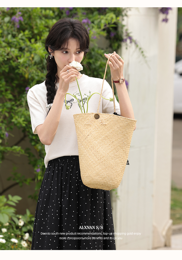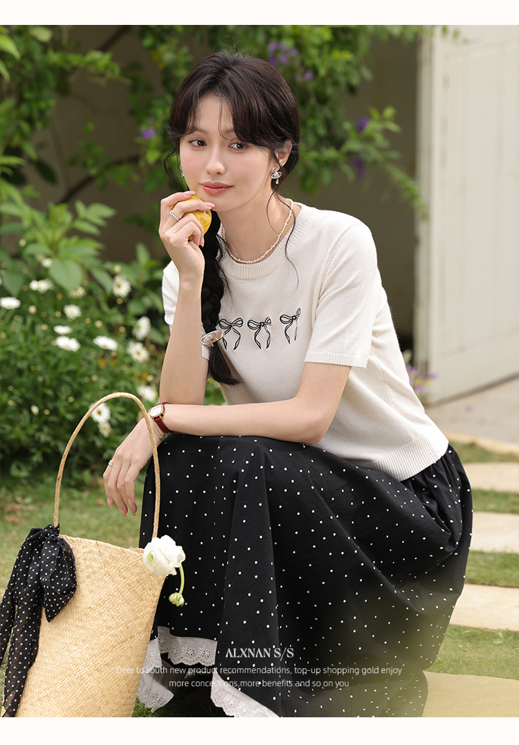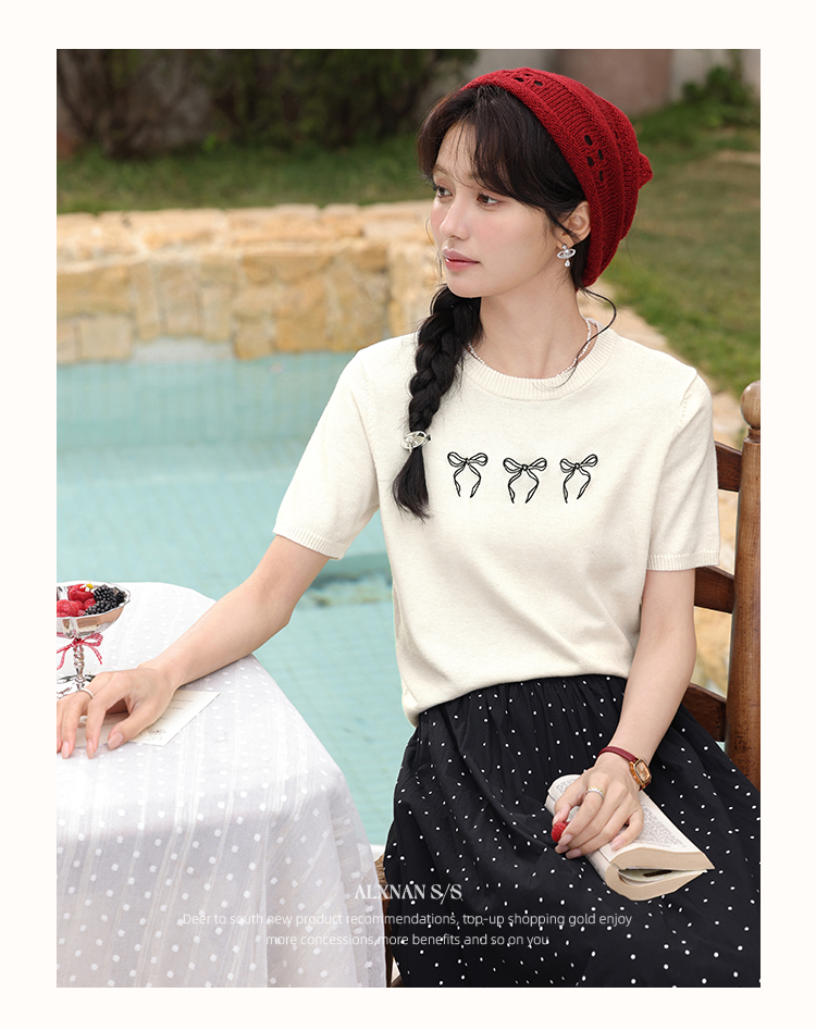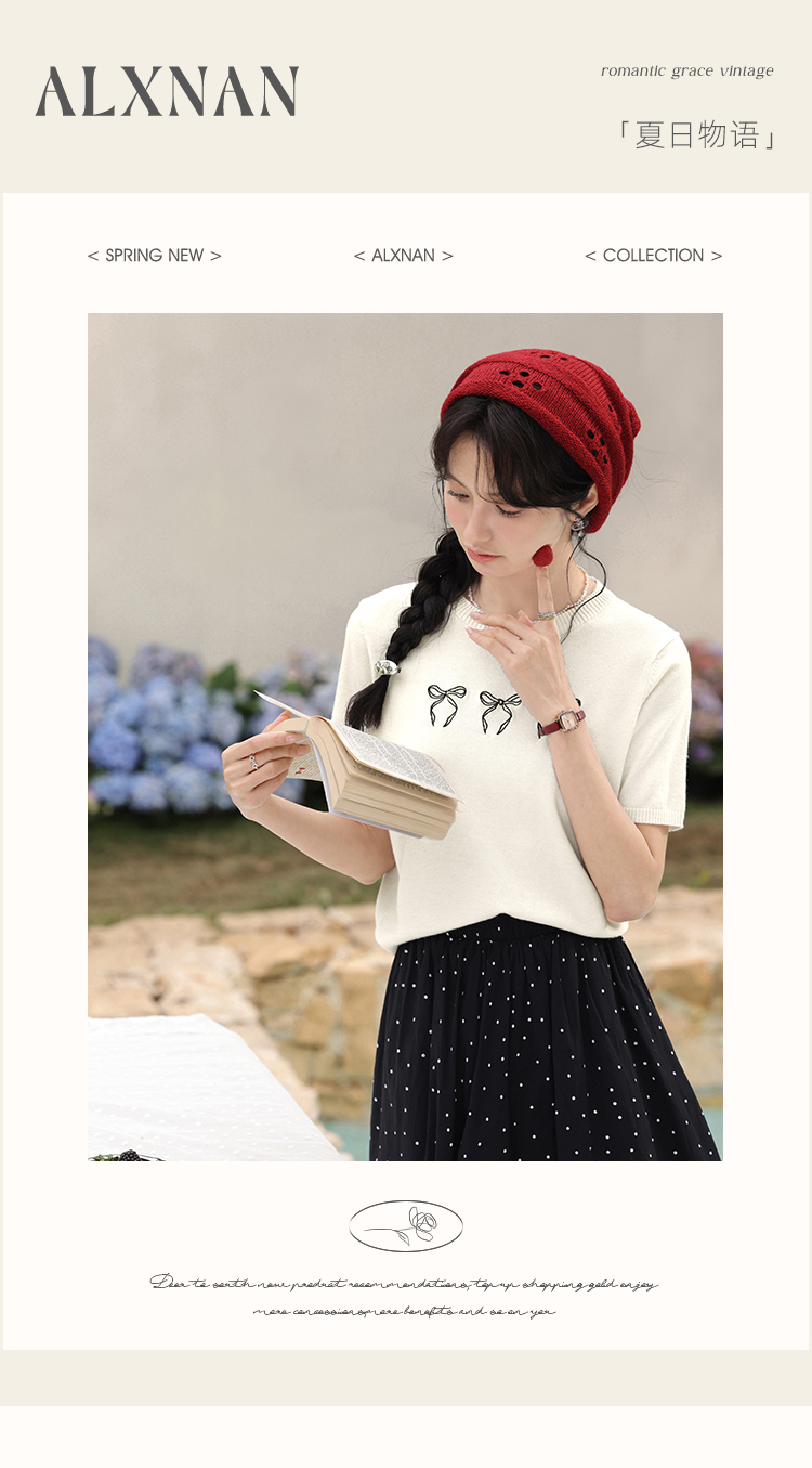 鹿向南「夏日物语」白色正肩针织衫短袖女夏季设计感小众修身上衣L55032