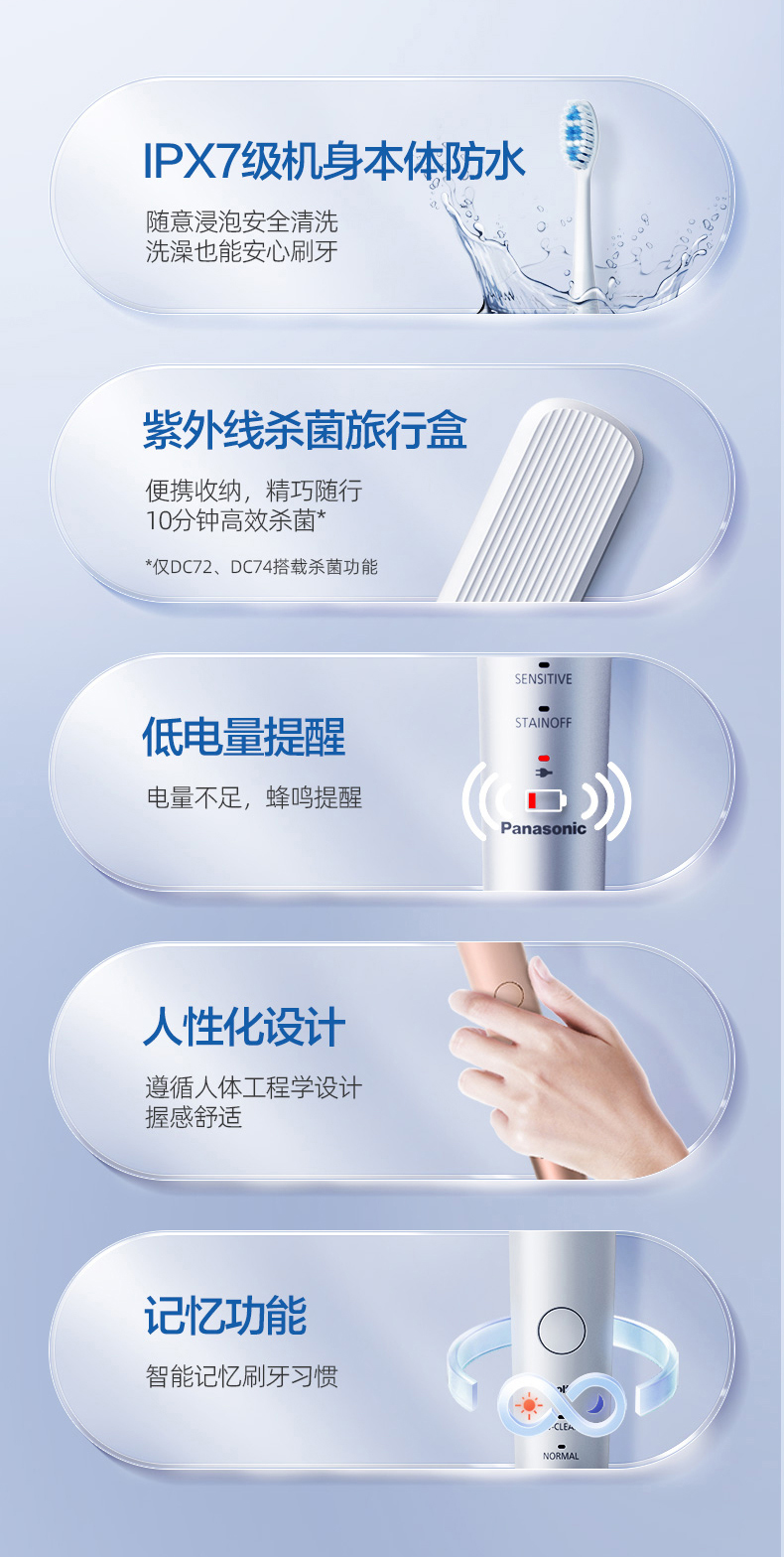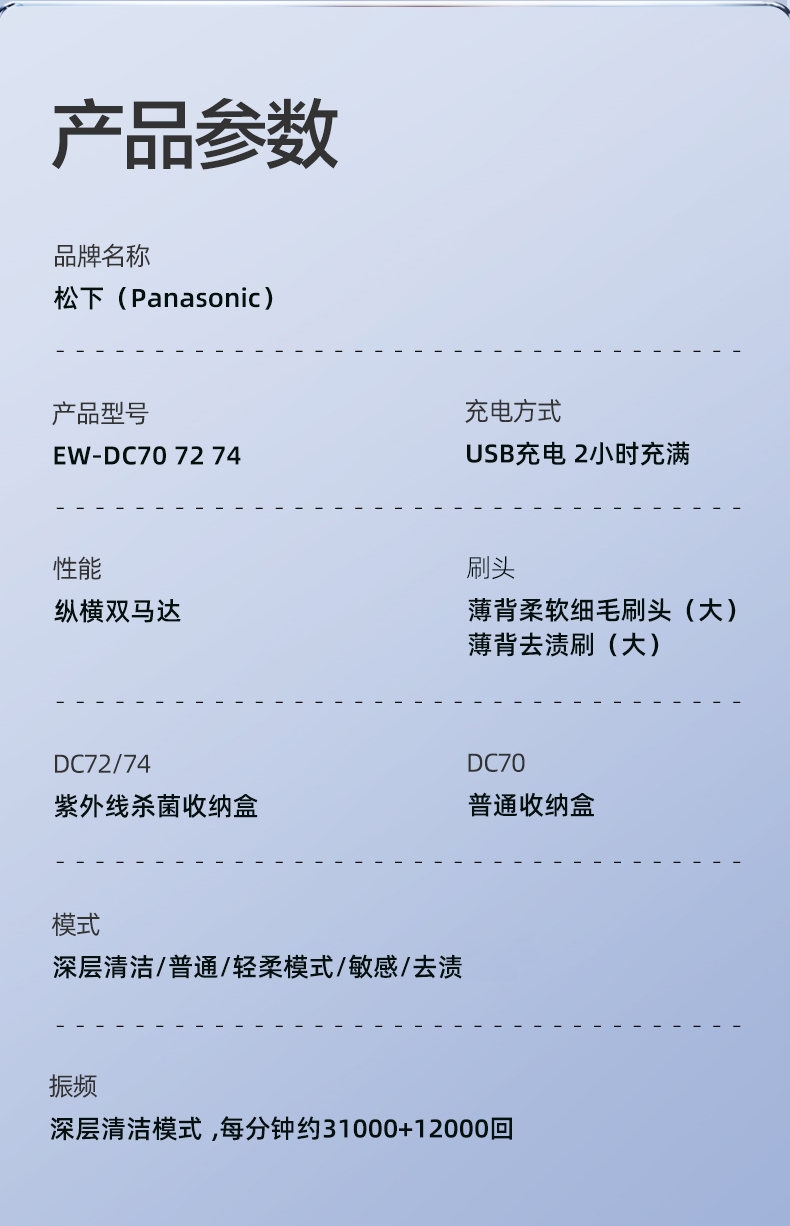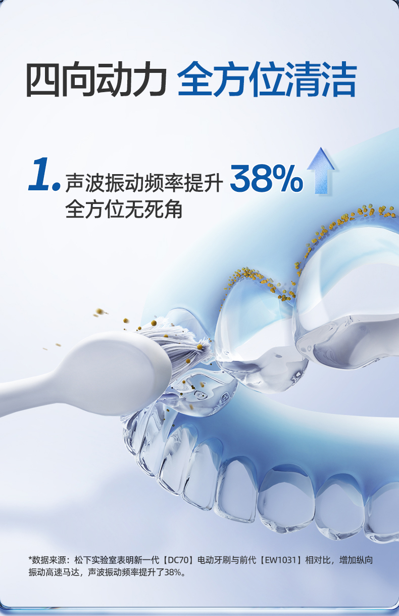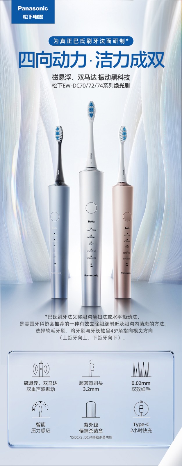 松下(Panasonic) 电动牙刷 成人充电式 双马达声波振动 智能压力应 清洁口腔礼盒物 生日礼物送男女友 EW-DC70系列