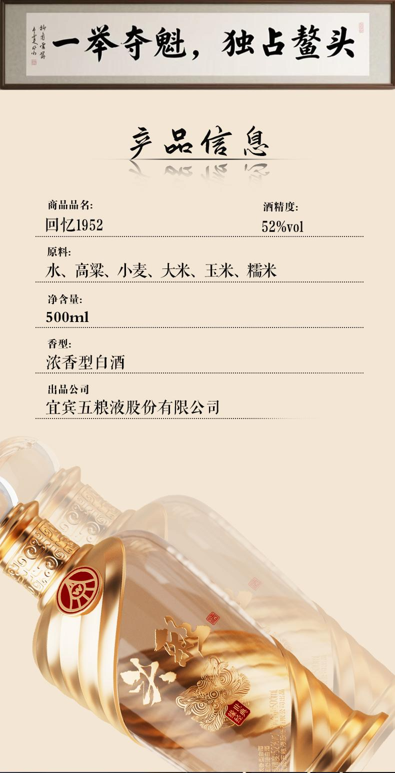 【抖音爆款】五粮股份有限公司 头彩回忆1952 浓香型白酒 52度 500ml*6瓶整箱